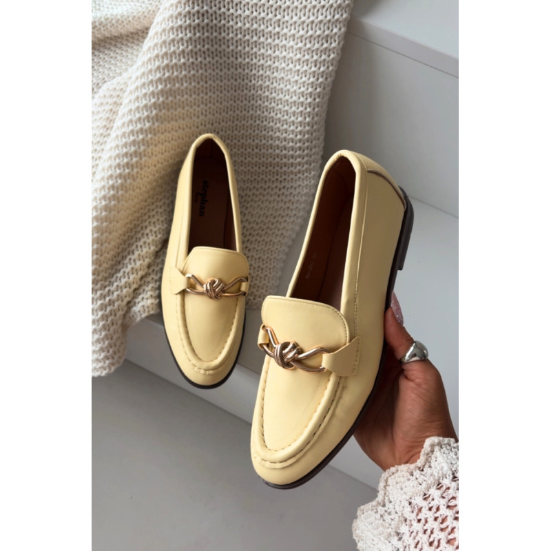 Klasikiniai moteriški loaferiai iš ekologiškos odos yra universalus pasirinkimas kasdieniams ir elegantiškiems įvaizdžiams. Paprastas, laikui nepavaldus siluetas papildytas auksiniu detaliu priekyje, kuris suteikia avalynei elegancijos ir stilingo charakterio. Modelis užtikrina patogumą dėvint ir puikiai tinka darbui, susitikimams ar kasdieninėms išvykoms. Loaferiai lengvai derinami tiek su džinsais, tiek su medžiaginėmis kelnėmis ar sijonu, sukuriant tvarkingą ir madingą įvaizdį. Renkantis dydį, vadovaukitės dydžių lentele.
