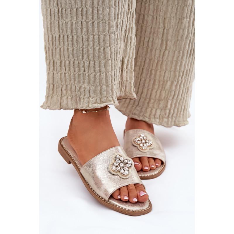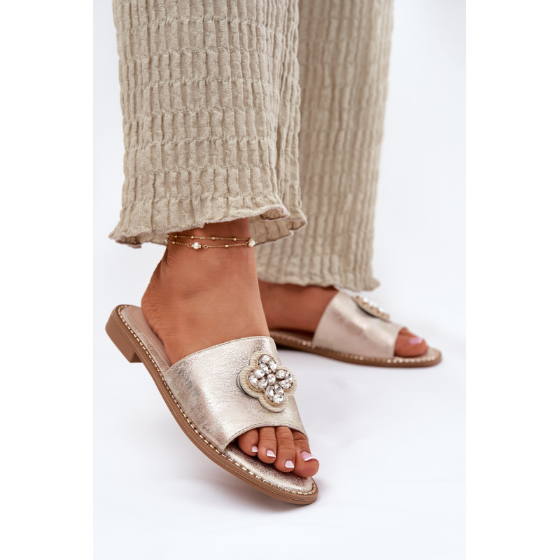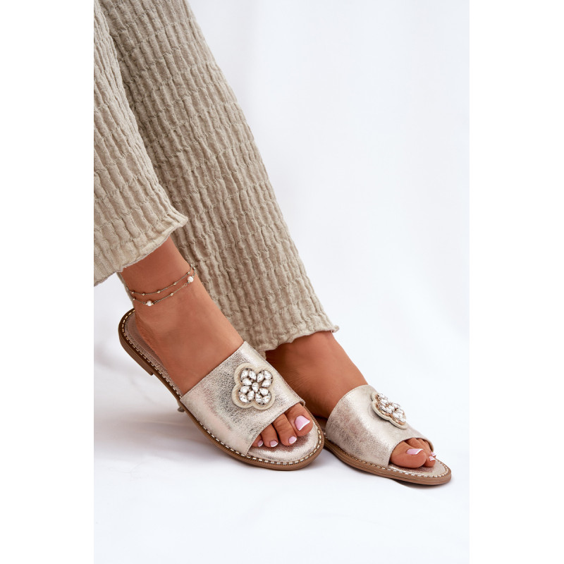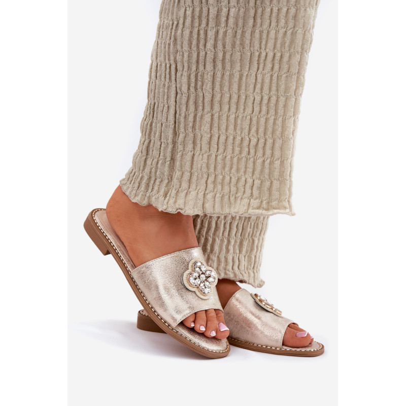 Eleganti moterų šlepetės, pagamintos iš aukštos kokybės eko odos, yra puikus pasirinkimas šiltoms dienoms. Dėl plokščio kulno jos siūlo komfortą ir stabilumą visą dieną. Oda vidpadis užtikrina komfortą ir tinkamą ventiliaciją, ko ypač įvertinsite karštomis dienomis. Subtilus papuošimas priekyje suteikia išskirtinį žavesį, sujungiant eleganciją su moderniu stiliumi. Šios šlepetės puikiai papildys tiek kasdienius, tiek formalesnius stilius, puikiai derinantis su vasaros apranga. Renkantis dydį, vadovaukitės dydžių lentele.