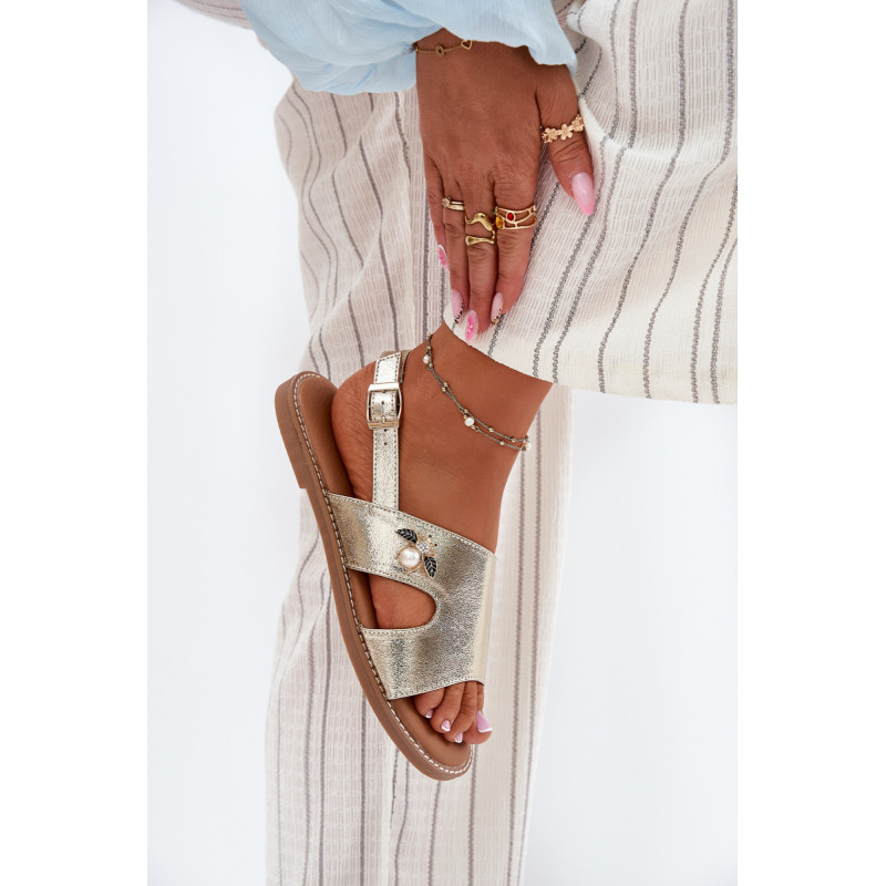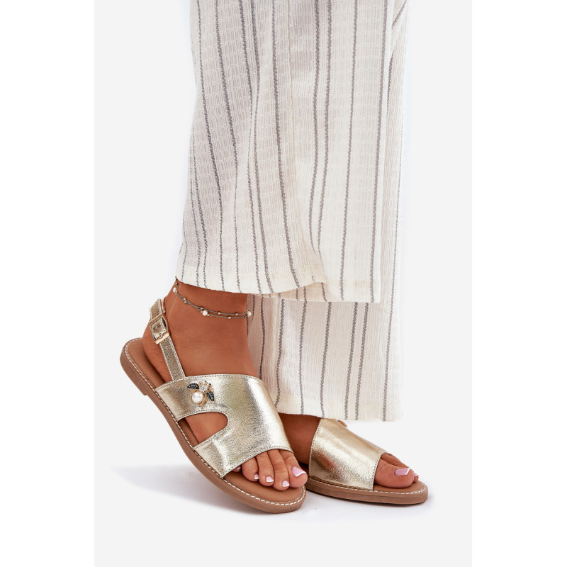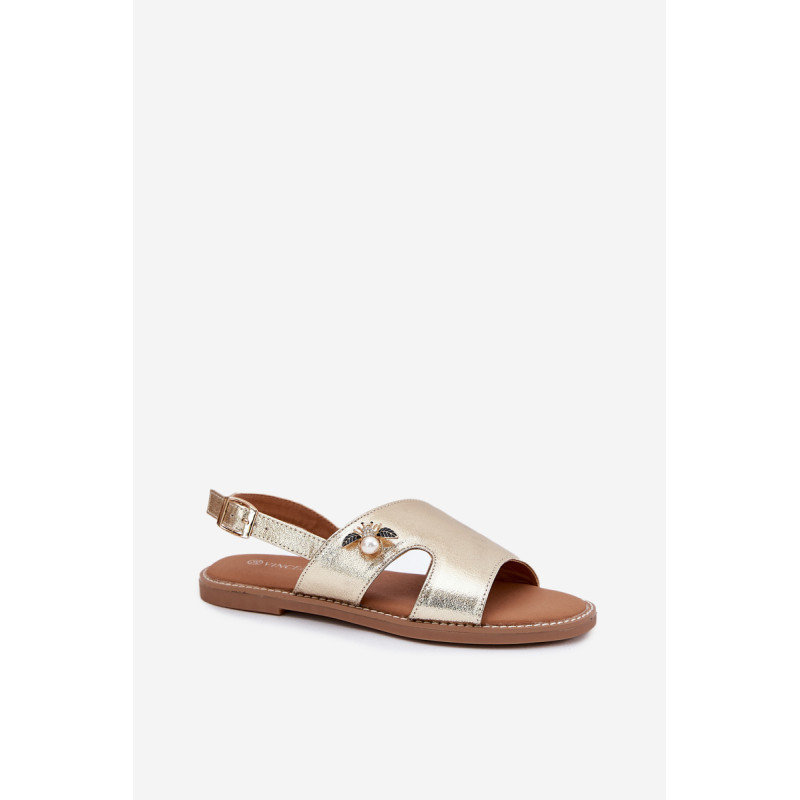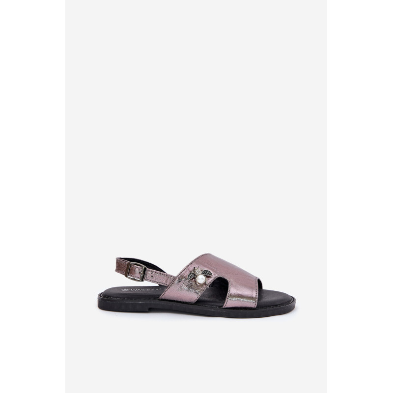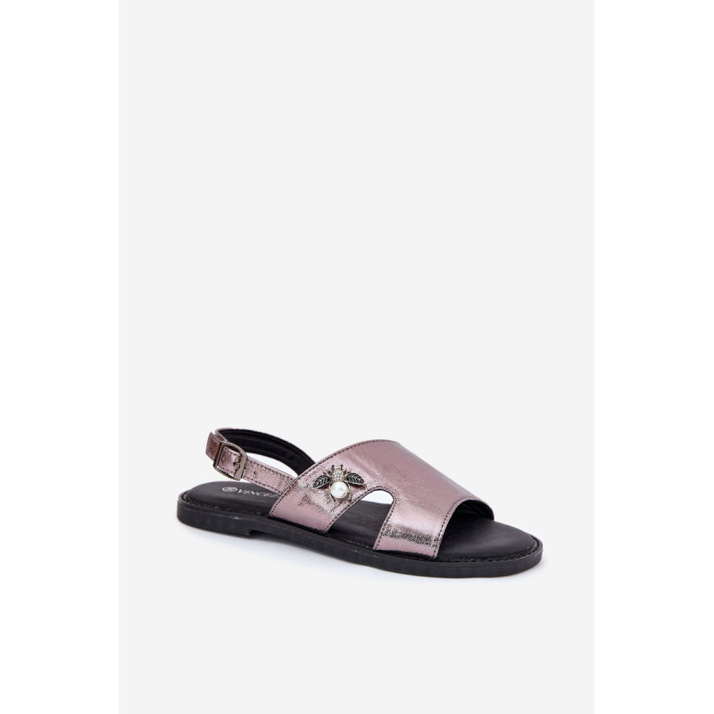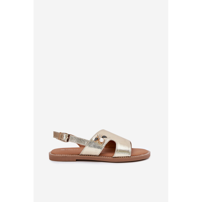Vinceza moterų sandalai yra stiliaus ir patogumo derinys. Pagaminti iš aukštos kokybės ekologiškos odos, jie yra ant plokščio kulno, todėl puikiai tinka kasdieniam dėvėjimui. Uždaryti sagtimi su reguliuojamu dirželiu, leidžia idealiai pritaikyti prie kojos. Priekyje yra dekoratyvinis elementas, suteikiantis visumai elegantišką charakterį. Minkšta odinė pėdos įdėklas užtikrina komfortą visą dieną. Idealiai tinka vasaros pasivaikščiojimams ir kasdieniams stiliams! Renkantis dydį, vadovaukitės dydžių lentele.