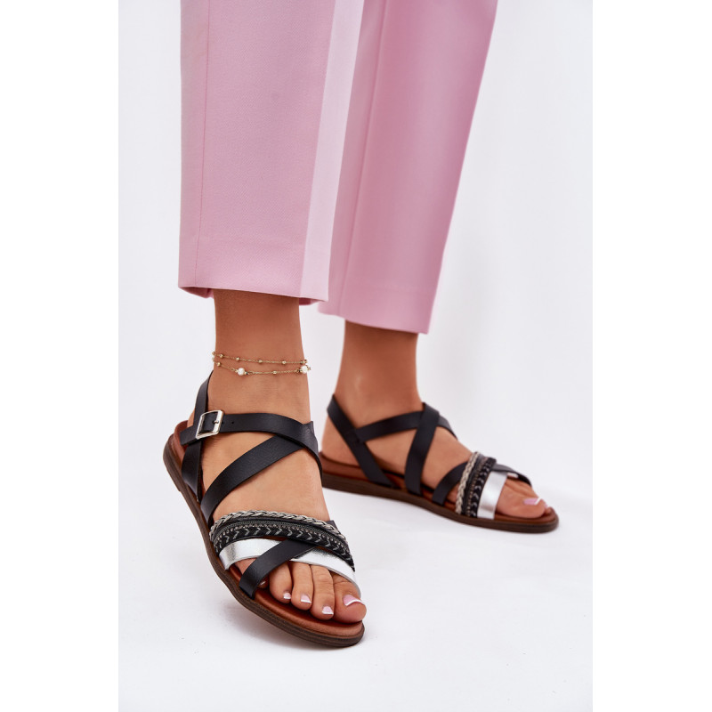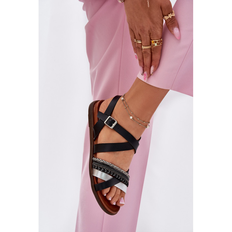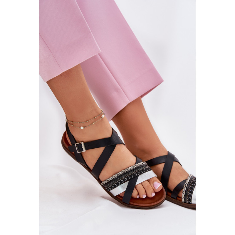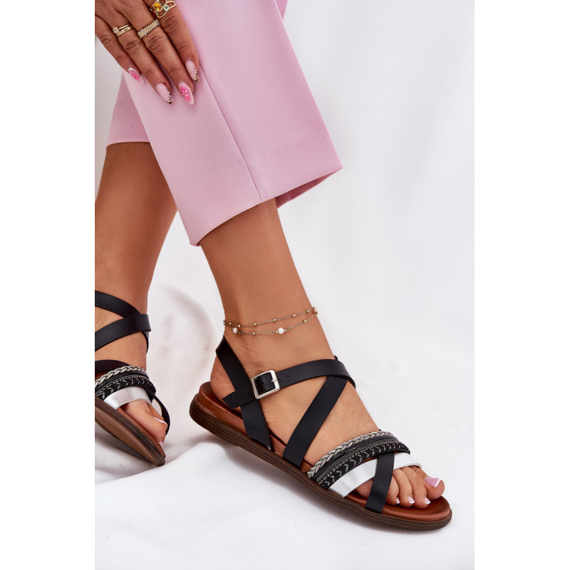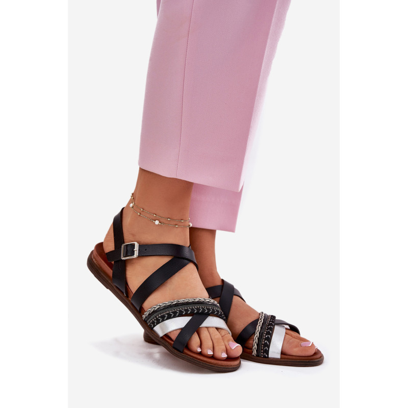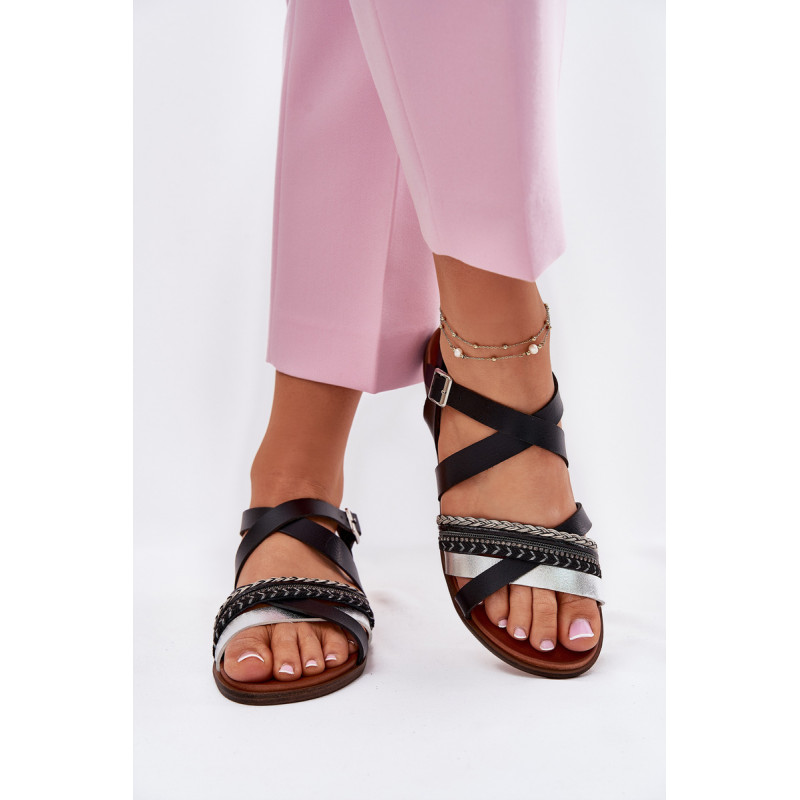 Moteriški sandalai iš ekologiškos odos su plokščiu kulnu yra puikus pasirinkimas vasaros dienoms. Modelis išsiskiria subtiliais, persipinantys dirželiais, kurie suteikia lengvumo ir elegancijos. Batai yra ant patogaus plokščio kulno, užtikrinančio komfortą kiekviename žingsnyje. Sandalai užsegami sagtimi su reguliuojamu dirželiu, leidžiančiu puikiai pritaikyti prie pėdos. Ši stiliaus ir funkcionalumo kombinacija puikiai papildo bet kokį vasaros stilių. Renkantis dydį, vadovaukitės dydžių lentele.