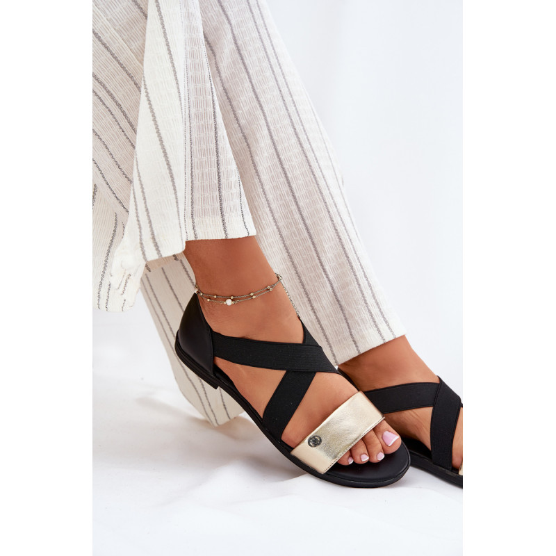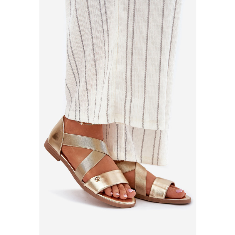 Moteriški sandalai, pagaminti iš ekologiškos odos, yra puikus pasirinkimas šiltoms dienoms. Įrengti ant plokščio kulno, jie suteikia stabilumą ir komfortą visą dieną. Šis modelis išsiskiria dviem persipinusiomis, elastingomis juostelėmis, kurios puikiai prisitaiko prie pėdos. Priekyje yra subtilus dekoratyvinis detalė. Puikiai dera su įvairiais vasaros drabužiais, derindami funkcionalumą su madingu įvaizdžiu. Renkantis dydį, vadovaukitės dydžių lentele.