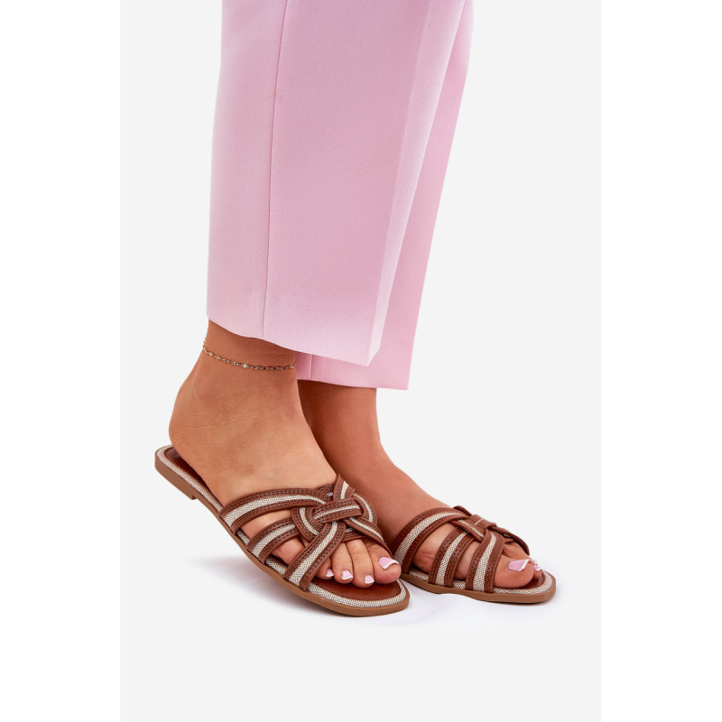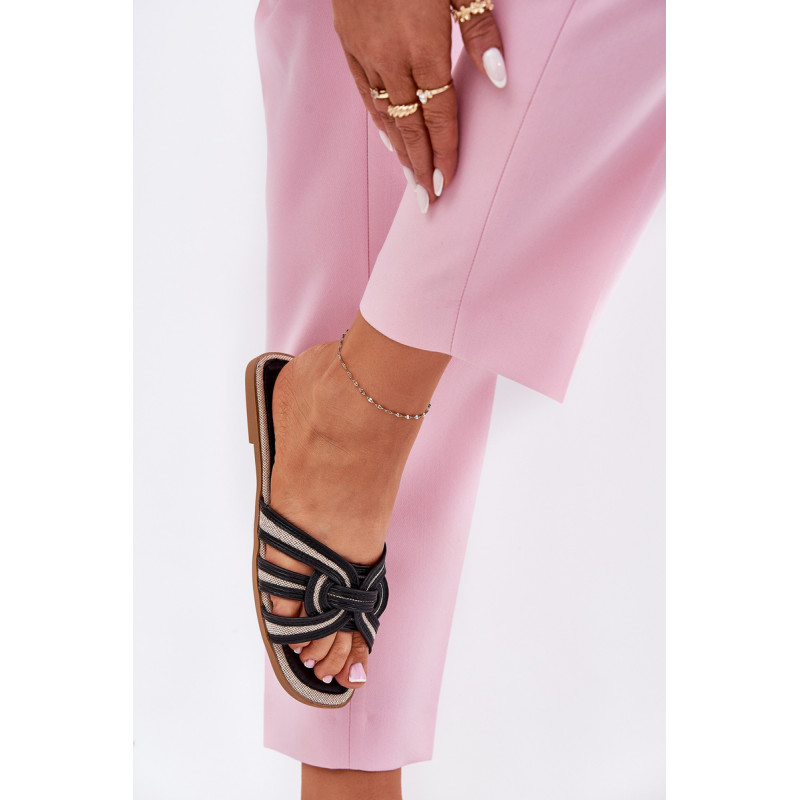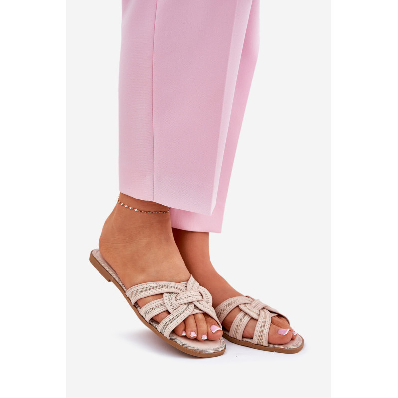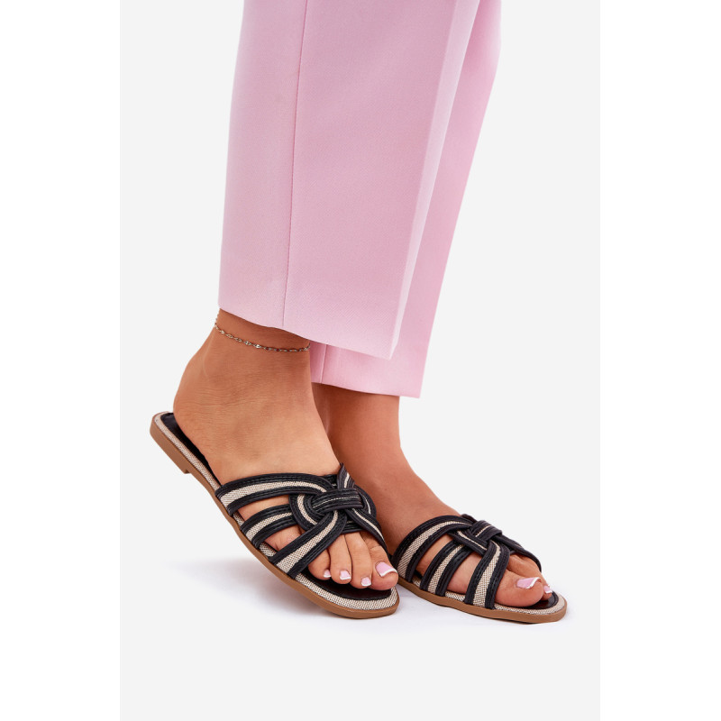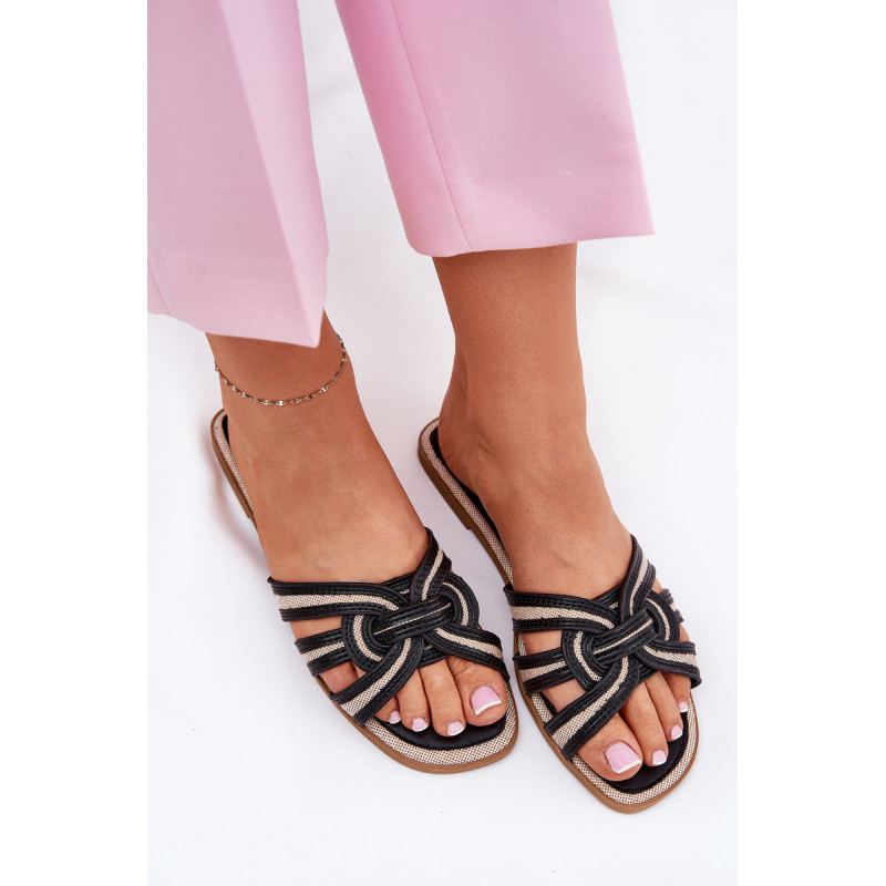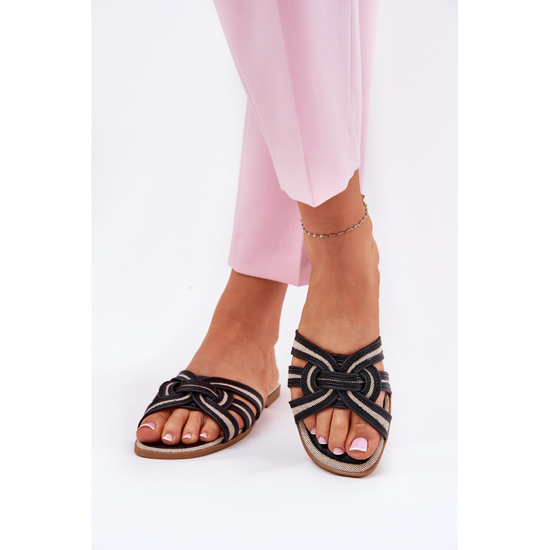 Klasikiniai plokšti moteriški šlepetės, pagaminti iš ekologiškos odos ir tekstilės, kurie sujungia komfortą su subtiliu stiliumi. Priekyje persipynę dirželiai suteikia joms lengvą, modernią charakteristiką. Idealiai tinka daugeliui vasaros stilių, šios šlepetės tinka tiek su suknelėmis, tiek su kelnėmis ar šortais. Renkantis dydį, vadovaukitės dydžių lentele.