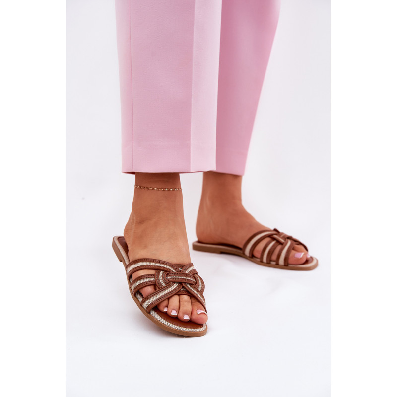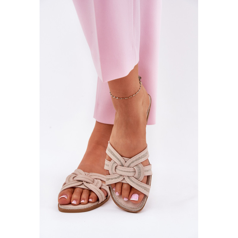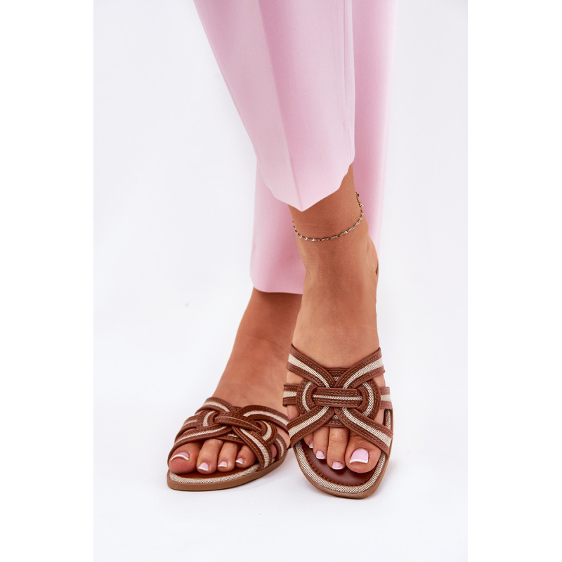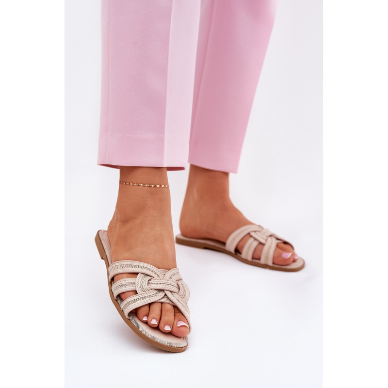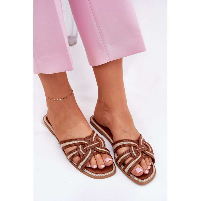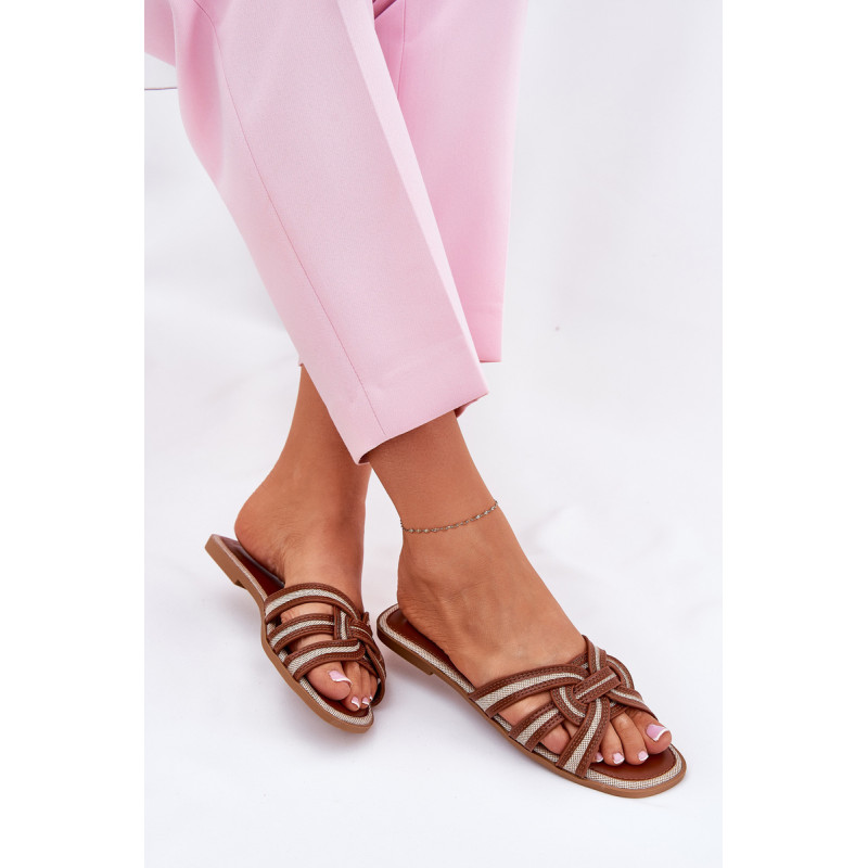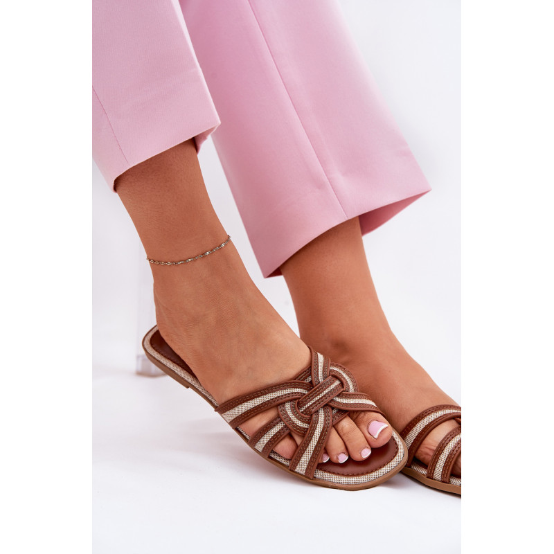 Klasikiniai plokšti moteriški šlepetės, pagaminti iš ekologiškos odos ir tekstilės, kurie sujungia komfortą su subtiliu stiliumi. Priekyje persipynę dirželiai suteikia joms lengvą, modernią charakteristiką. Idealiai tinka daugeliui vasaros stilių, šios šlepetės tinka tiek su suknelėmis, tiek su kelnėmis ar šortais. Renkantis dydį, vadovaukitės dydžių lentele.