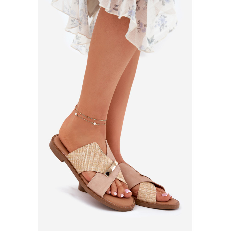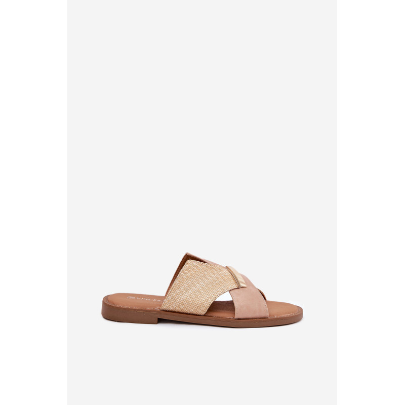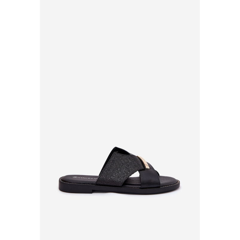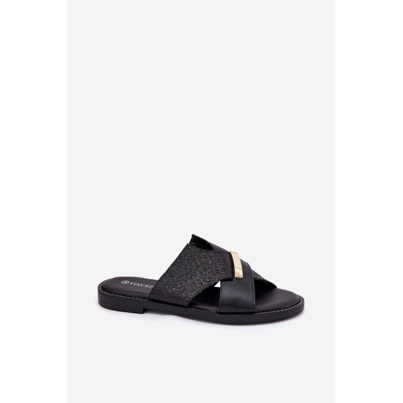Moteriški šlepetės iš Vinceza prekės ženklo. Pagaminti iš ekologiškos odos. Įrengti ant plokščio kulno, jie užtikrina komfortą ir stabilumą visą dieną. Priekyje yra dekoratyvinis auksinis detalė. Minkšta pado danga užtikrina patogumą nešant, todėl šios šlepetės yra puikus pasirinkimas vasaros stiliui, tiek kasdieniam, tiek elegantiškesniam. Renkantis dydį, vadovaukitės dydžių lentele.