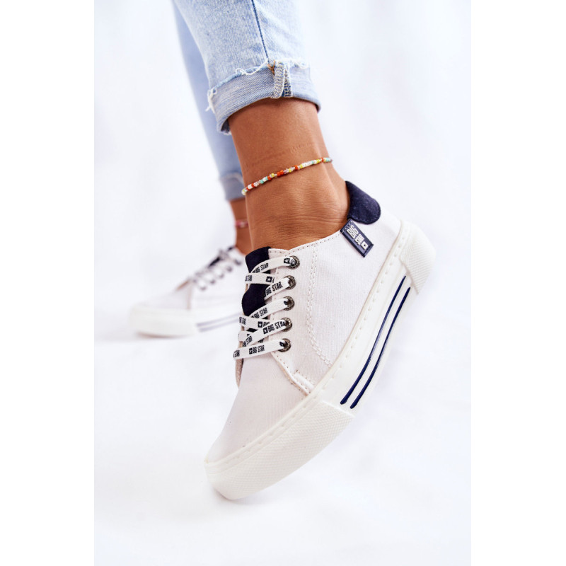 Klasikiniai moteriški sportbačiai yra pagaminti iš tekstilės. Suvarstomas modelis su Big Star logotipu. Batai buvo sumontuoti ant platformos. Memory Foam System vidpadis įsimena pėdos formą, kuri užtikrina tobulą prigludimą, sugeria smūgius ir yra atspari deformacijai. Putų struktūra leidžia išgaruoti drėgmei ir reguliuoti temperatūrą. Jūs tikrai turėtumėte juos turėti savo garderobe! Renkantis dydį, naudokite dydžių lentelę.