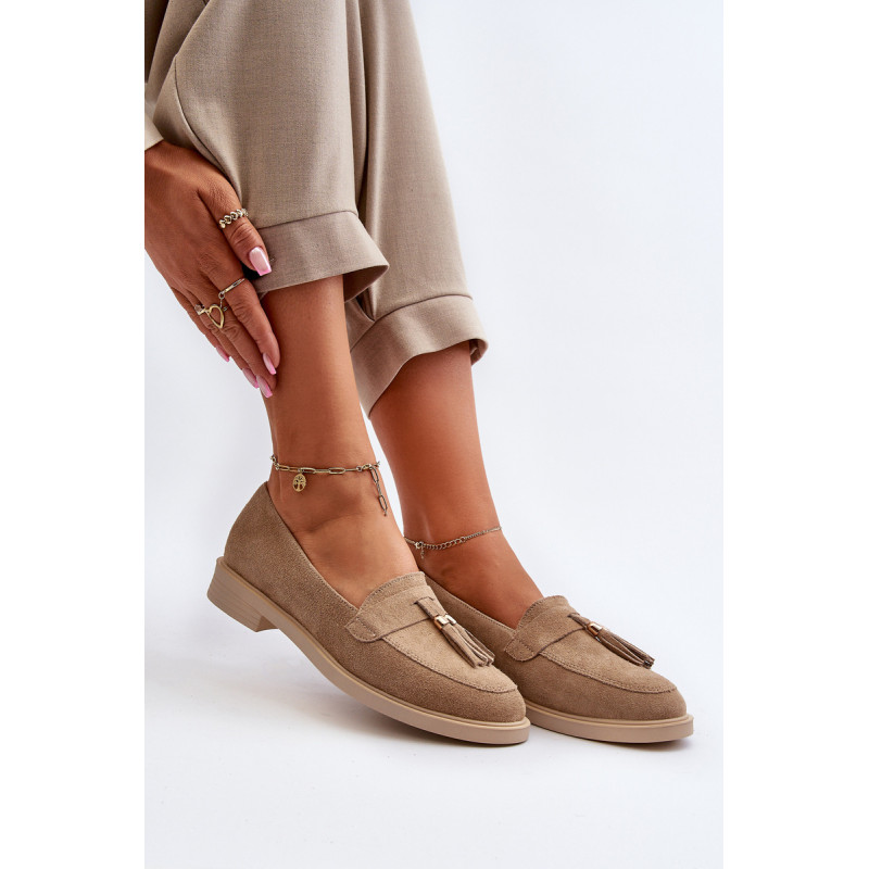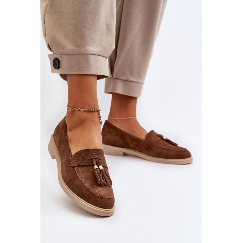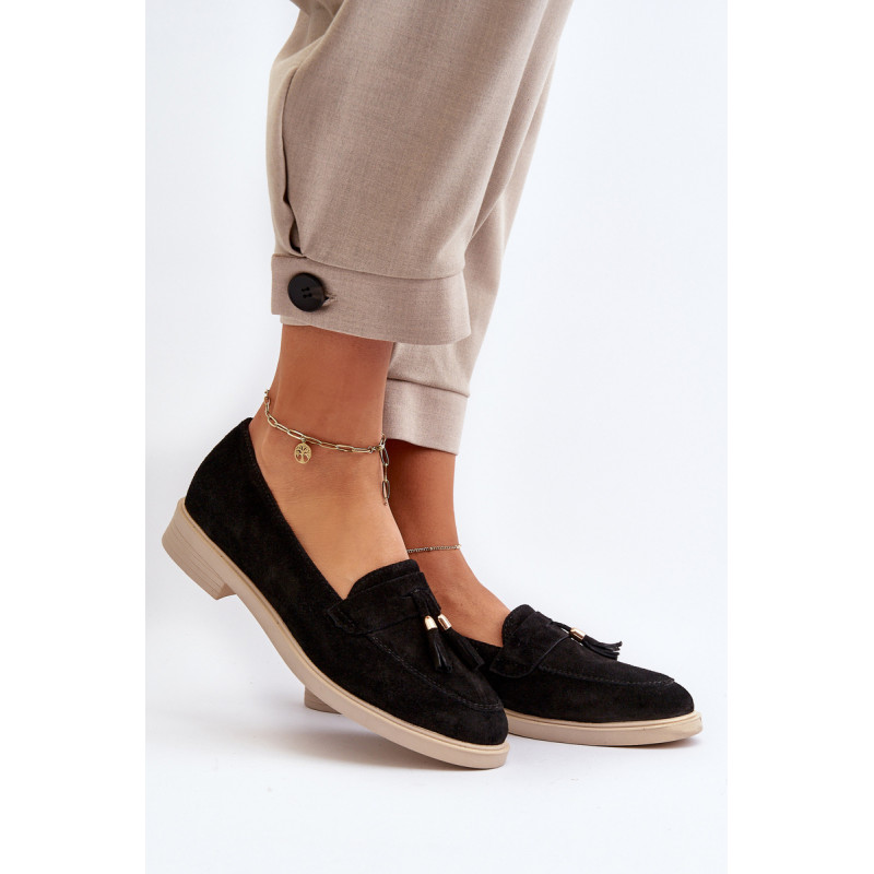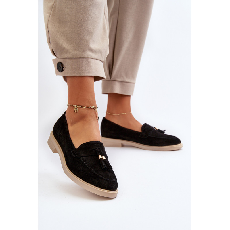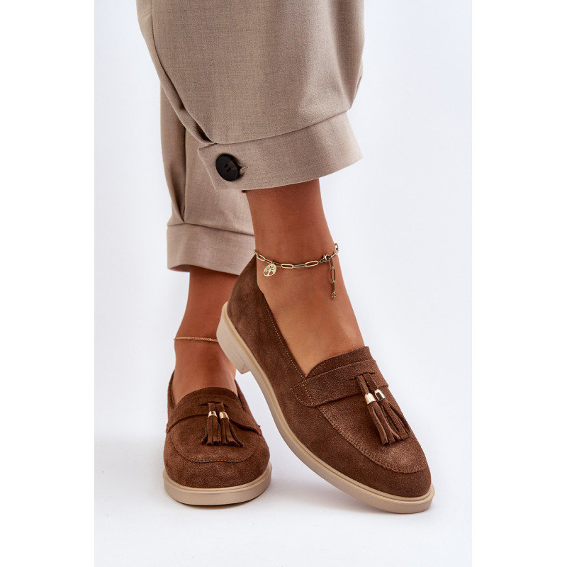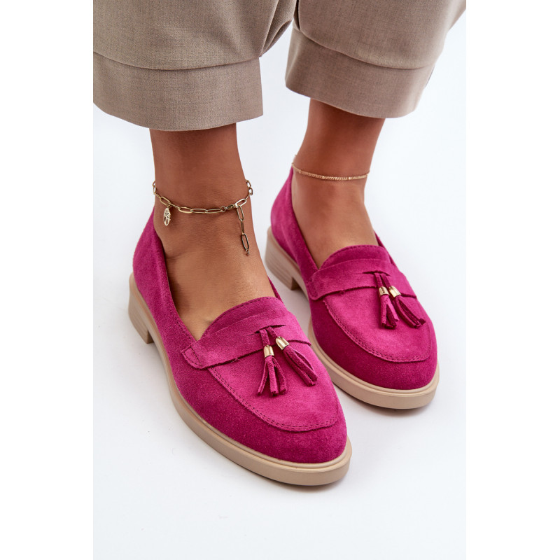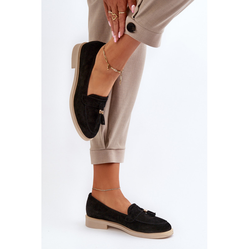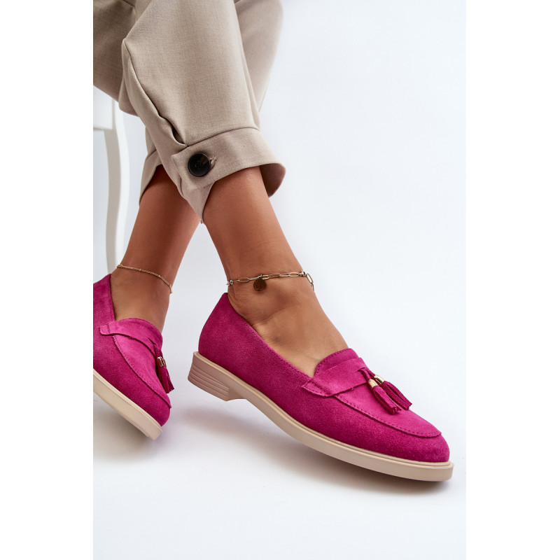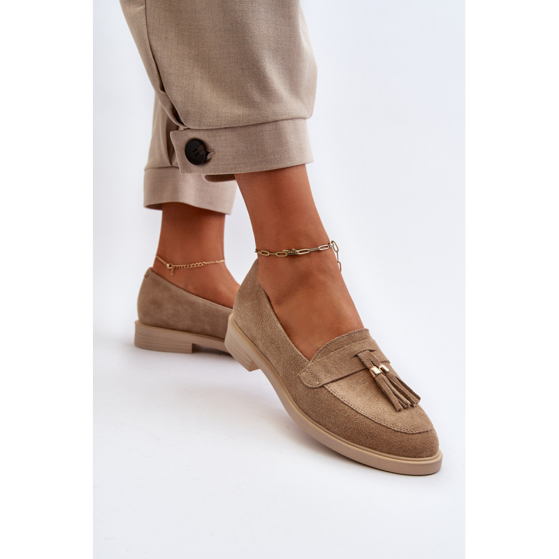Moteriški mokasinai iš natūralios zomšos, pasižymintys plokščiu kulnu, užtikrinančiu stabilumą einant. Priekinė dalis dekoruota subtiliais kutais, kurie suteikia subtilumo ir stiliaus. Profiliuotas vidpadis suteikia papildomo komforto ilgalaikio dėvėjimo metu. Tai puikus pasirinkimas tiems, kurie vertina tiek madingą išvaizdą, tiek patogumą. Rinkdamiesi dydį žiūrėkite dydžių lentelę.