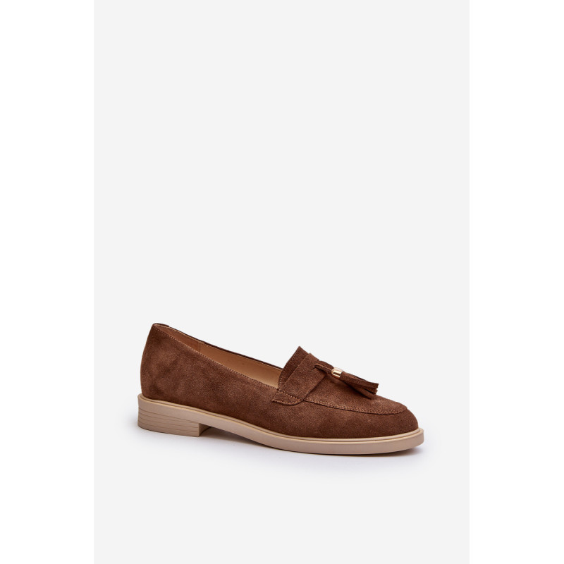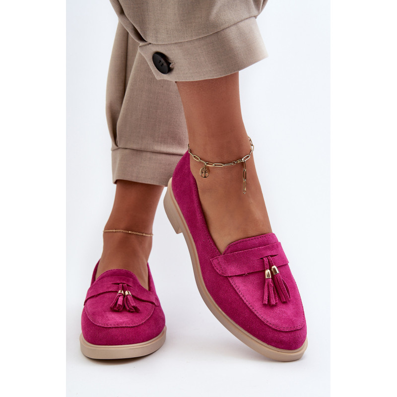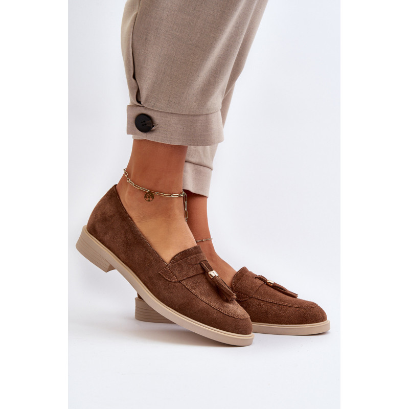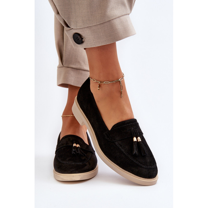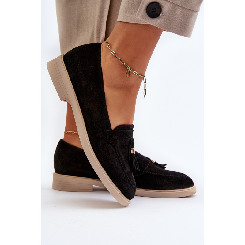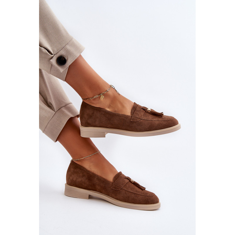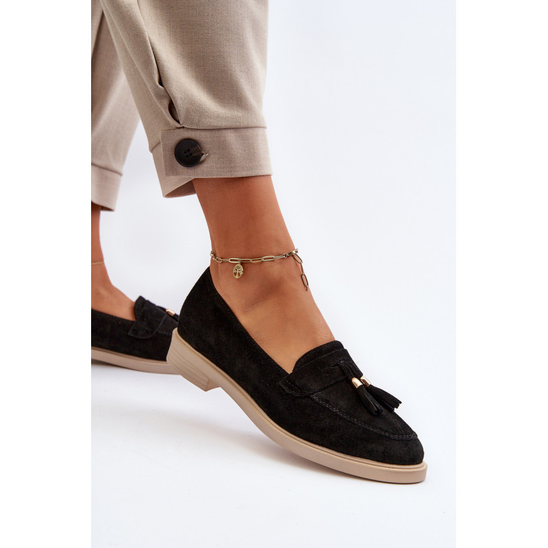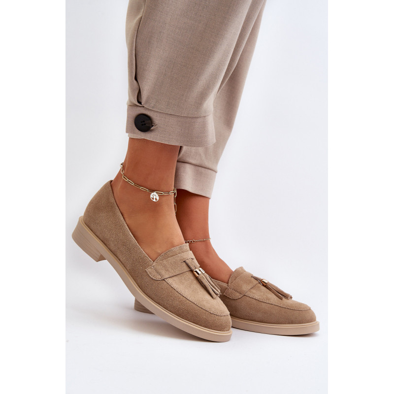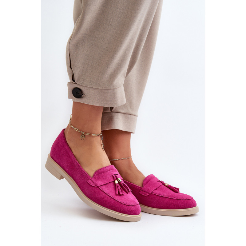 Moteriški mokasinai iš natūralios zomšos, pasižymintys plokščiu kulnu, užtikrinančiu stabilumą einant. Priekinė dalis dekoruota subtiliais kutais, kurie suteikia subtilumo ir stiliaus. Profiliuotas vidpadis suteikia papildomo komforto ilgalaikio dėvėjimo metu. Tai puikus pasirinkimas tiems, kurie vertina tiek madingą išvaizdą, tiek patogumą. Rinkdamiesi dydį žiūrėkite dydžių lentelę.