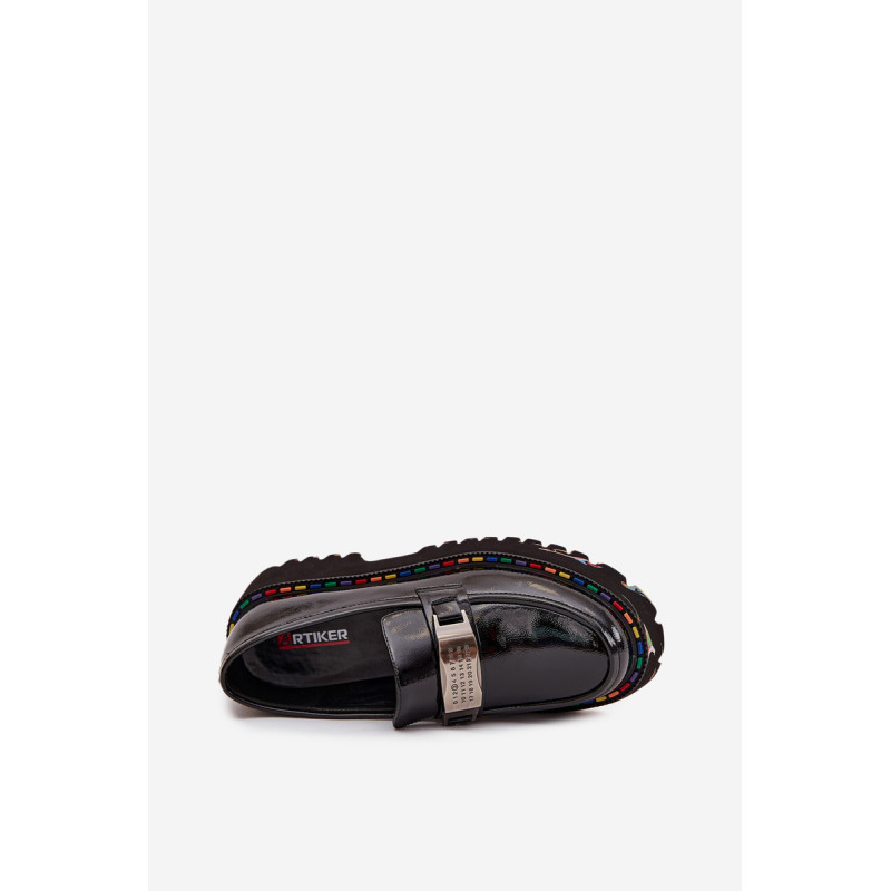 Moteriški mokasinai markės Artiker pagaminti iš lakuotos natūralios odos yra elegantiška kasdienė pasirinkimas. Atidumas detalėms ir kruopštumas paryškina jų išskirtinį charakterį, o priekyje ant juostos esanti dekoratyvinė metalinė plokštelė su numeriais prideda originalumo akcentą. Tai klasikiniai batai, kurie puikiai papildo tiek kasdienius, tiek ir daugiau elegantiškus stilius. Pasirinkdami dydį, vadovaukitės dydžių lentele. Renkantis dydį, vadovaukitės dydžių lentele.