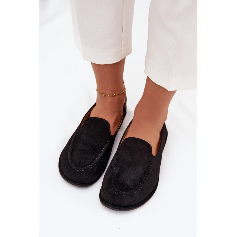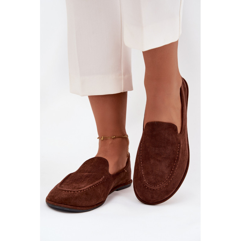 Moteriški mokasinai iš ekologiško zomšiaus yra klasikinis ir patogus pasirinkimas kasdienai. Jie yra ant plokščios padėklo, užtikrinančios patogumą dėvint, ir su apvaliais priekiais, suteikiančiais jiems laikui nepavaldų charakterį. Šie universalūs batai yra puikus pasirinkimas kasdienėms išvykoms ir tinka tiek kasdieniams, tiek šiek tiek elegantiškesniems stiliams. Renkantis dydį, prašome vadovautis dydžių lentele. Renkantis dydį, vadovaukitės dydžių lentele.