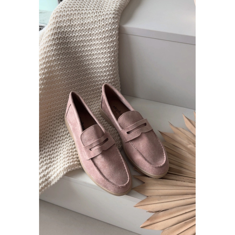 Stilingi moteriški mokasinai iš minkštos ekologiškos zomšos yra laikui nepavaldus pasirinkimas kasdieniams ir elegantiškesniems įvaizdžiams. Klasikinė forma daro modelį universaliu ir lengvai suderinamu tiek su džinsais, tiek su audinio kelnėmis ar sijonu. Priekyje yra būdinga juosta su subtiliu iškirpimu, kuris suteikia visumai elegantišką ir lengvą charakterį. Mokasinai užtikrina patogumą ir puikiai tinka kasdieniam nešiojimui – darbe, pasivaikščiojimams ar susitikimams. Ideali pasirinkimas moterims, vertinančioms paprastumą, komfortą ir laikui nepavaldų stilių. Pasirenkant dydį, prašome vadovautis dydžių lentele. Renkantis dydį, vadovaukitės dydžių lentele.