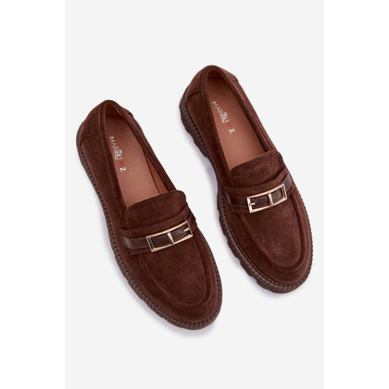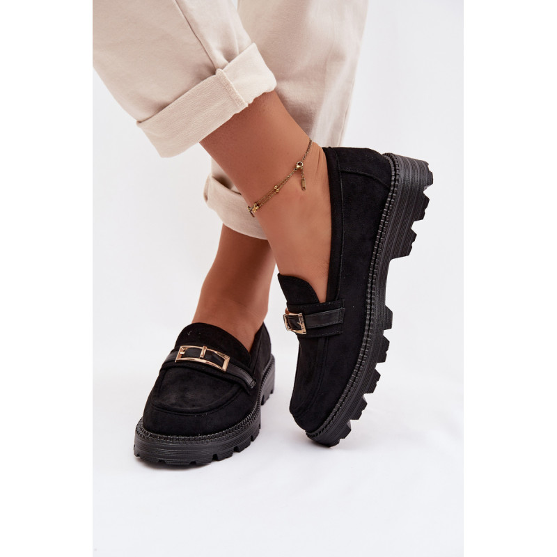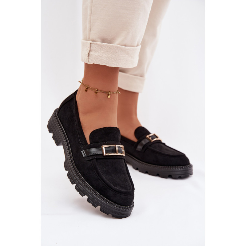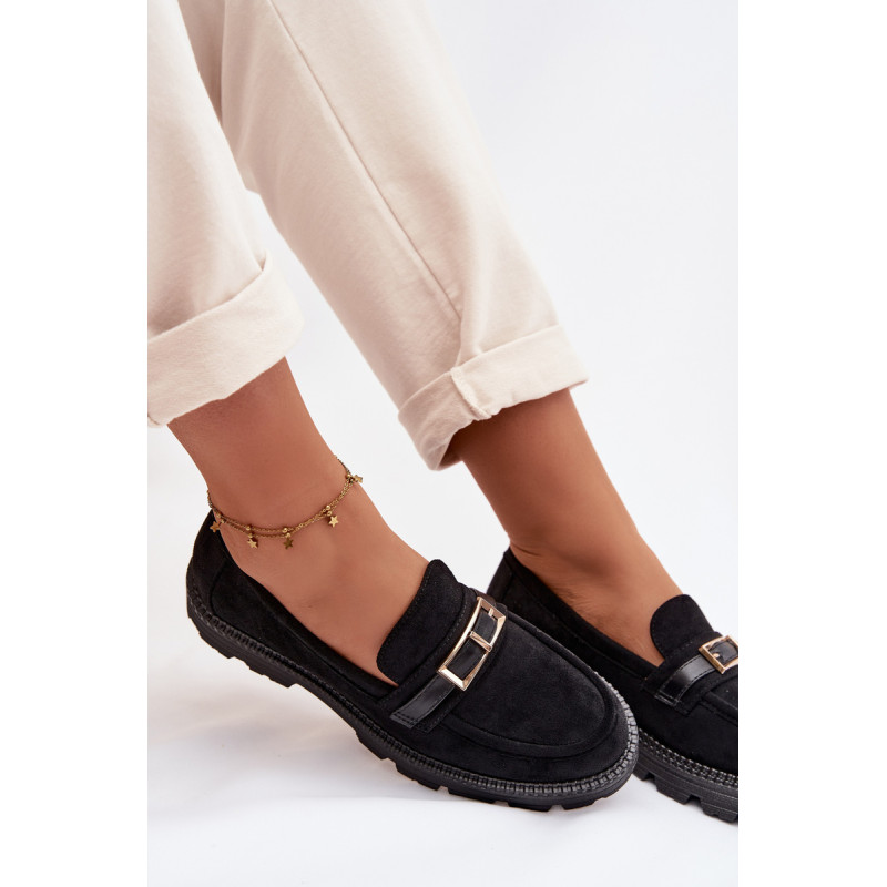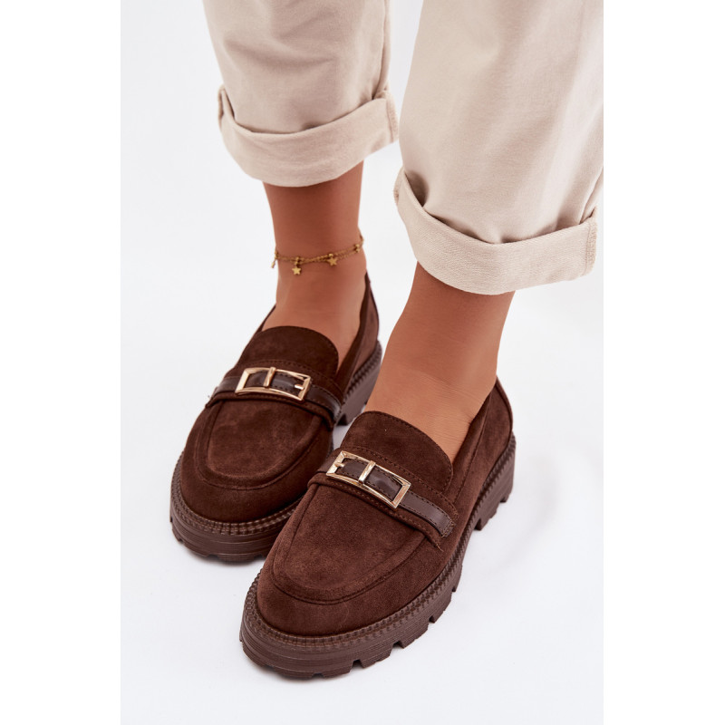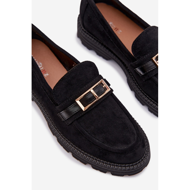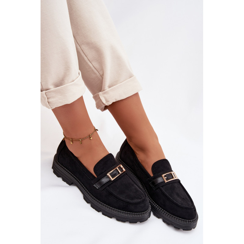 Eleganti moteriški mokasinai iš eko zomšos, derinantys klasikinį stilių ir patogumą. Priekinė dalis papuošta subtilia juosta su auksiniu segtuku, suteikiančia stilingą akcentą. Minkšta įdėklas iš eko odos užtikrina komfortą visą dieną. Šis modelis puikiai tinka tiek kasdieniam, tiek ir elegantiškesniam deriniui. Renkantis dydį, vadovaukitės dydžių lentele.