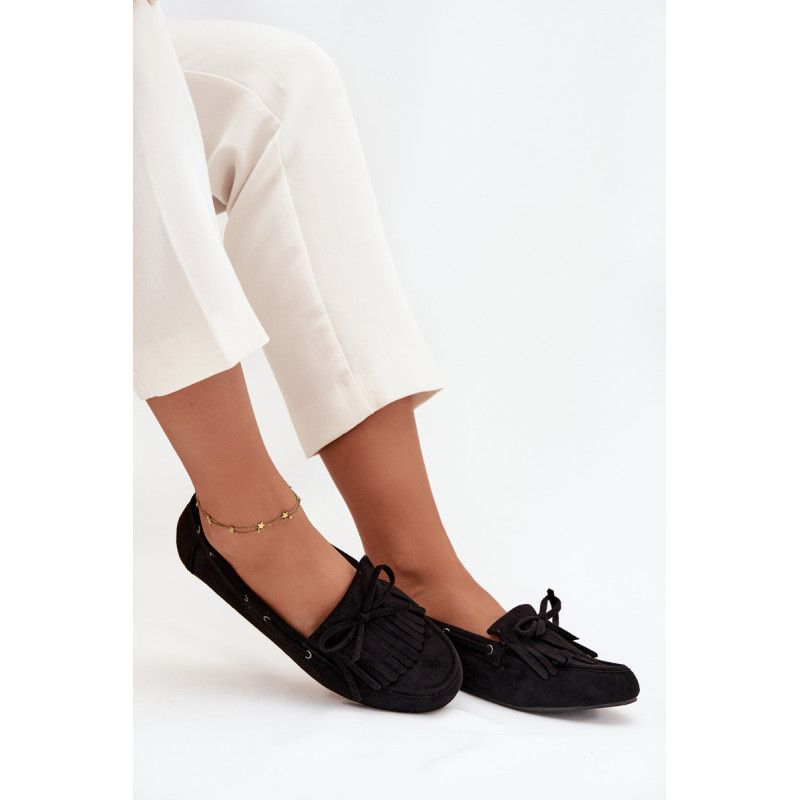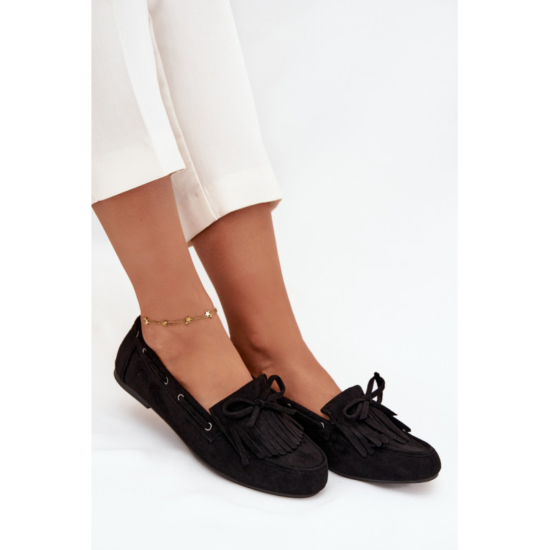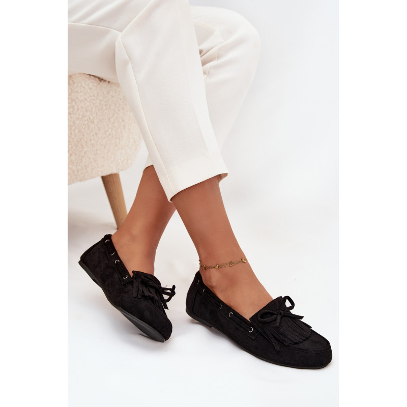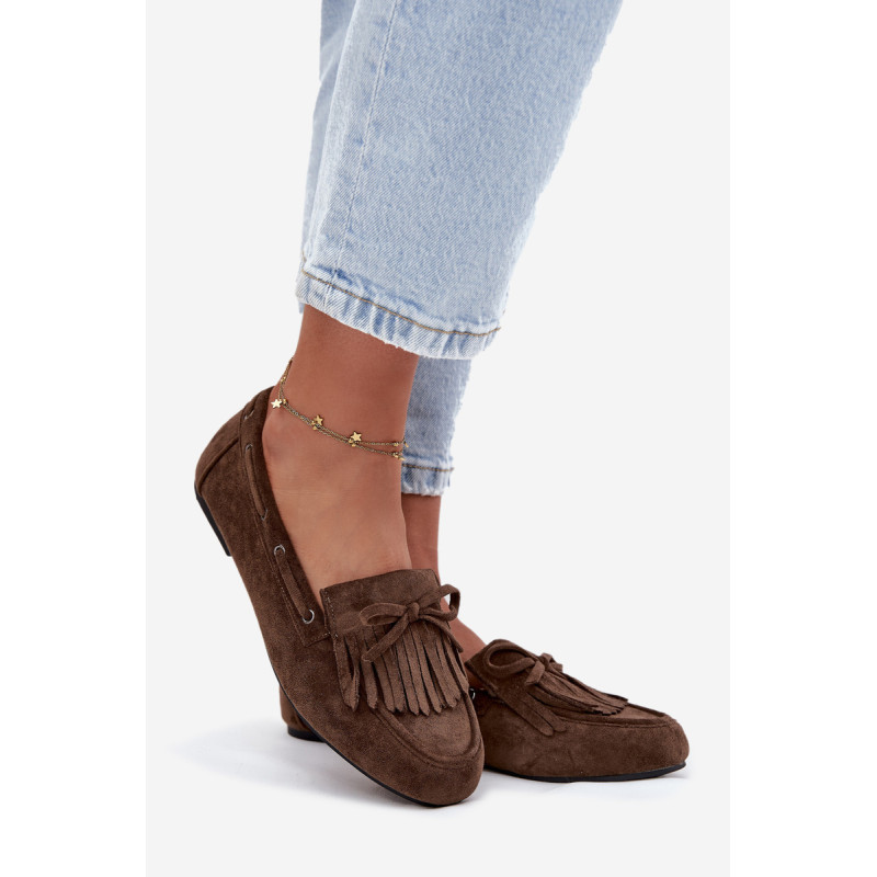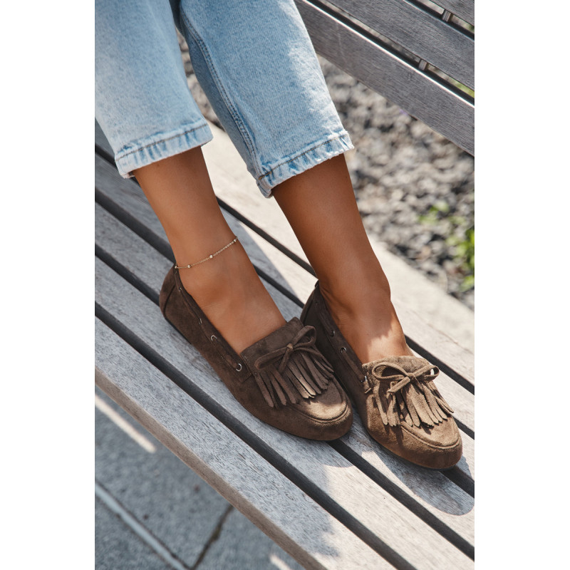 Moteriški mokasinai iš ekologinio zomšos audinio derina patogumą su madingu stiliumi. Modelis išsiskiria dekoratyviniais kutais su kaspinu, kurie prideda lengvumo ir charakterio, o apvalūs nosies užtikrina komfortą. Minkšta vidpadis iš ekologinio odos garantuoja patogumą net ir ilgiau vaikščiojant, todėl jie puikiai tinka kasdienėms, kasdieninėms stilizacijoms. Rinkdamiesi dydį, vadovaukitės dydžių lentele. Renkantis dydį, vadovaukitės dydžių lentele.