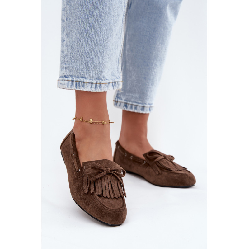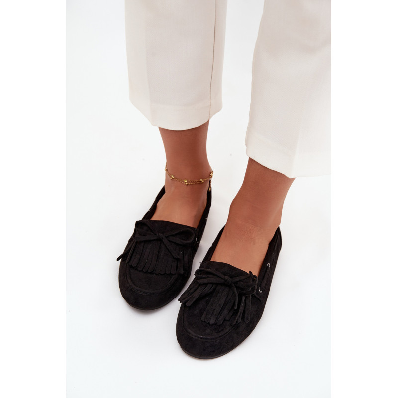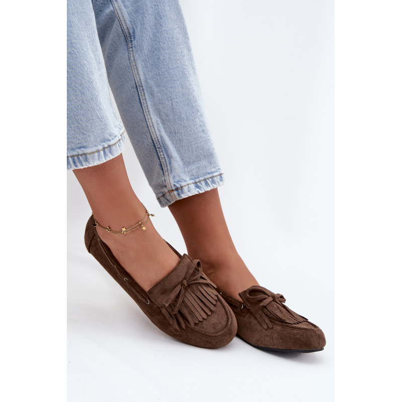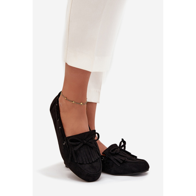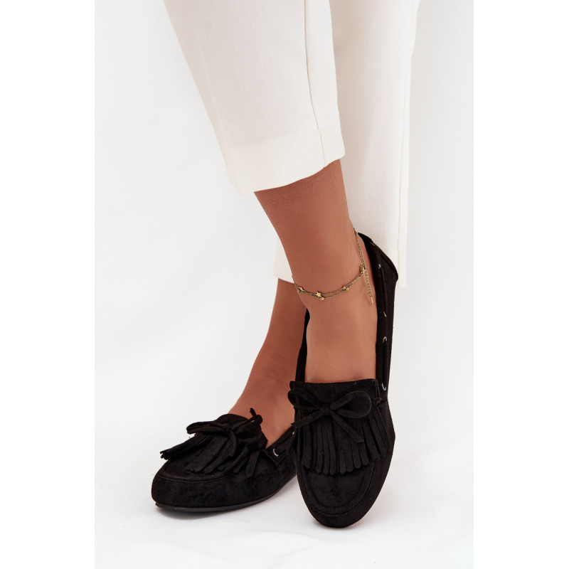 Moteriški mokasinai iš ekologinio zomšos audinio derina patogumą su madingu stiliumi. Modelis išsiskiria dekoratyviniais kutais su kaspinu, kurie prideda lengvumo ir charakterio, o apvalūs nosies užtikrina komfortą. Minkšta vidpadis iš ekologinio odos garantuoja patogumą net ir ilgiau vaikščiojant, todėl jie puikiai tinka kasdienėms, kasdieninėms stilizacijoms. Rinkdamiesi dydį, vadovaukitės dydžių lentele. Renkantis dydį, vadovaukitės dydžių lentele.