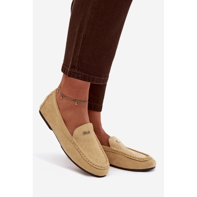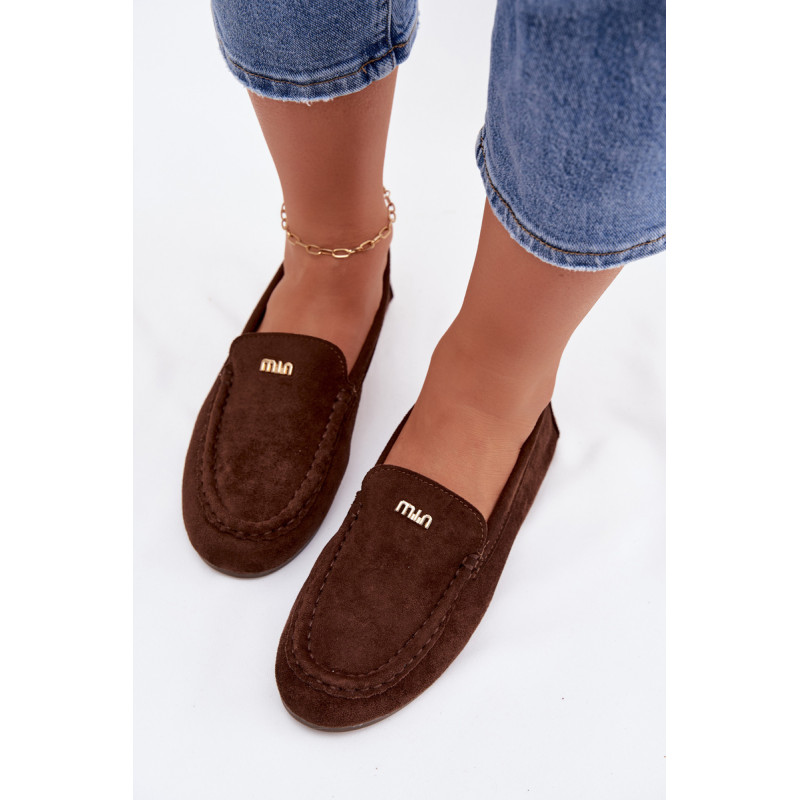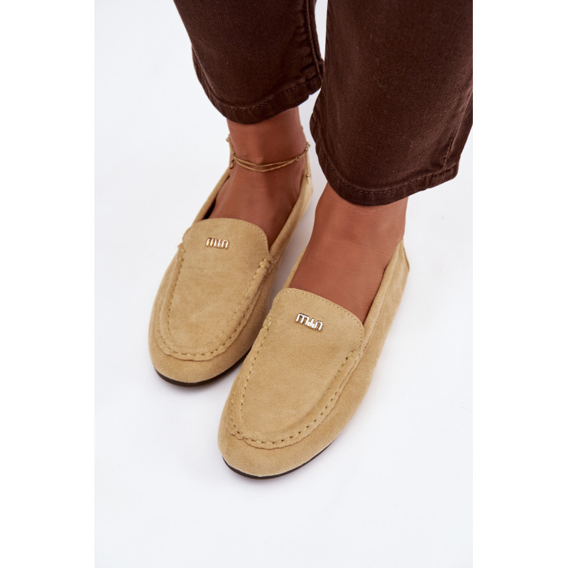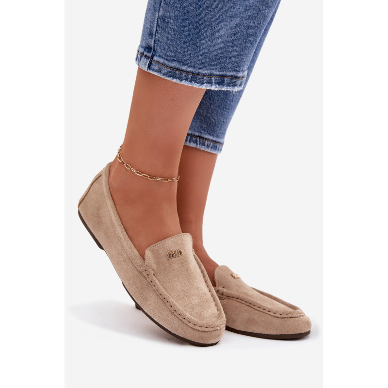 Moteriški mokasinai iš ekologiško zomšiaus yra patogus ir stilingas pasirinkimas kasdienai. Priekyje yra nedidelis auksinis detalė, kuris prideda elegancijos batams. Minkšta įdėklas iš ekologiškos odos užtikrina komfortą ir gerą pėdos pritaikymą. Modelis tiks tiek kasdieniams, tiek labiau klasikiniams stiliams. Renkantis dydį, prašome vadovautis dydžių lentele. Renkantis dydį, vadovaukitės dydžių lentele.
