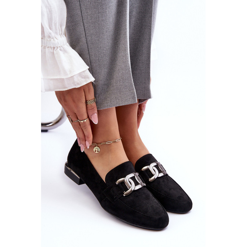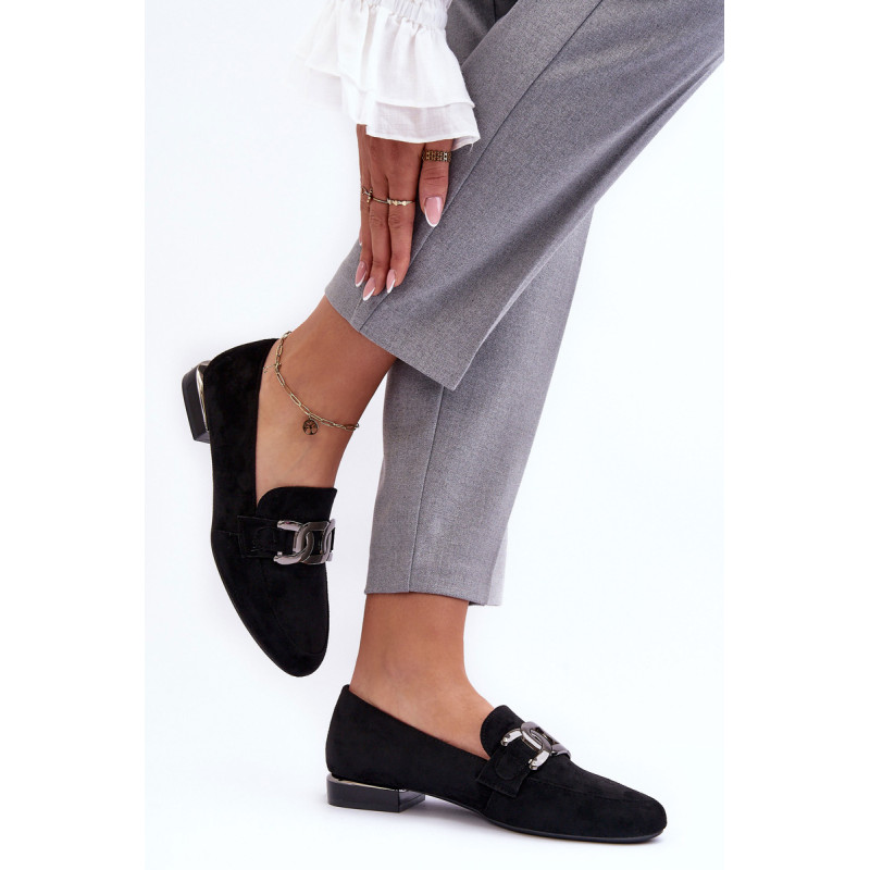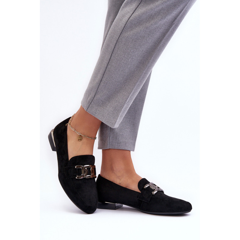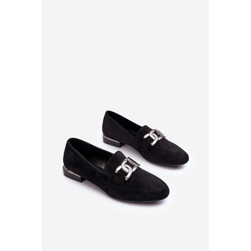 Moteriški mokasinai, pagaminti iš ekologiškos zomšos. Ant žemo kulno su veidrodiniu elementu. Apvalūs kojų pirštai. Natūralios odos vidpadis suteiks komforto naudojimo metu. Papuošimas priekyje iš sintetinės medžiagos. Pirštas yra standus. Rinkdamiesi dydį, vadovaukitės dydžių lentele.