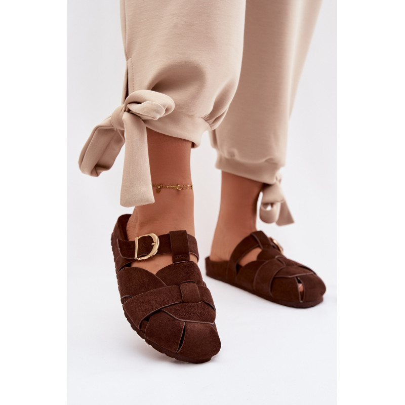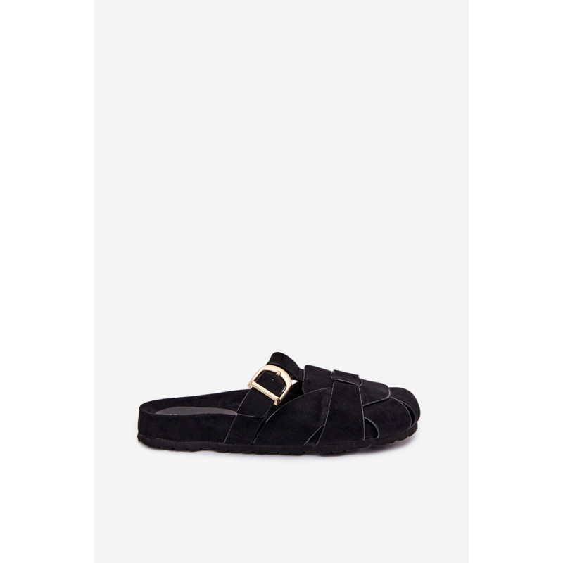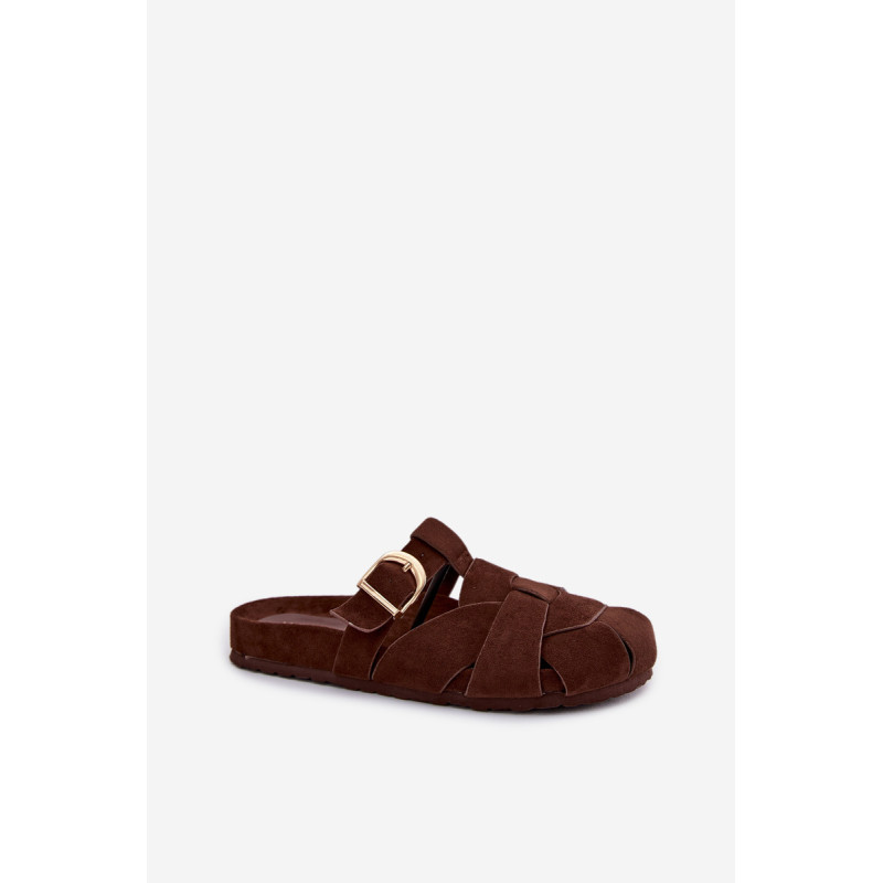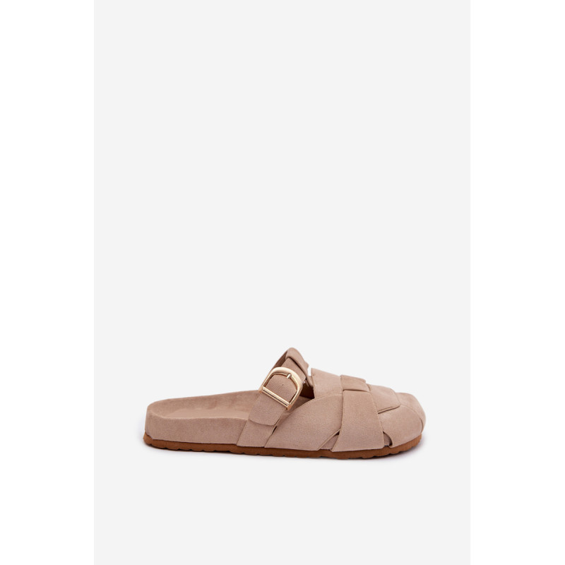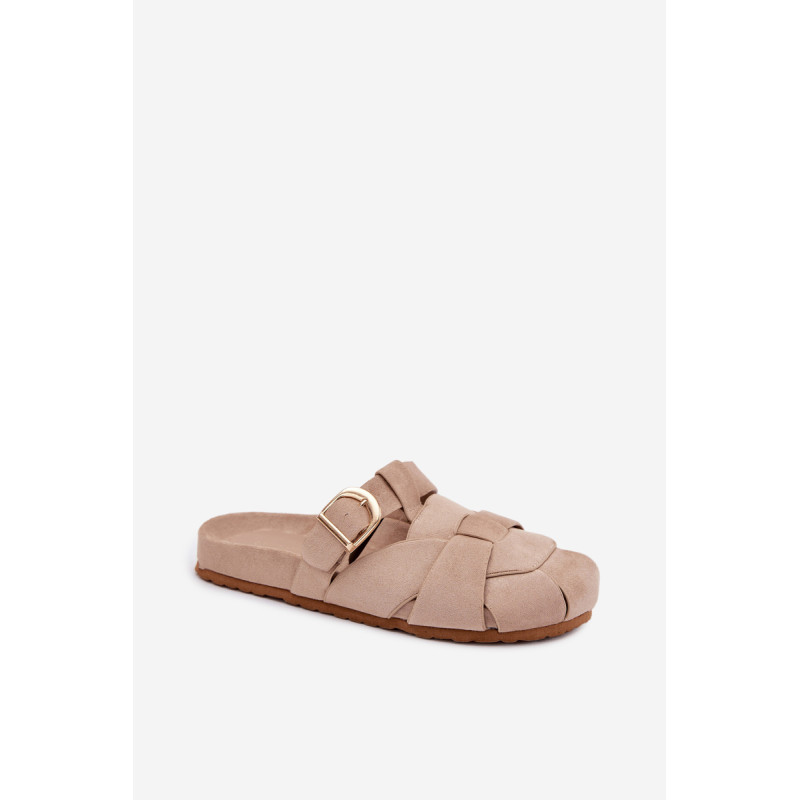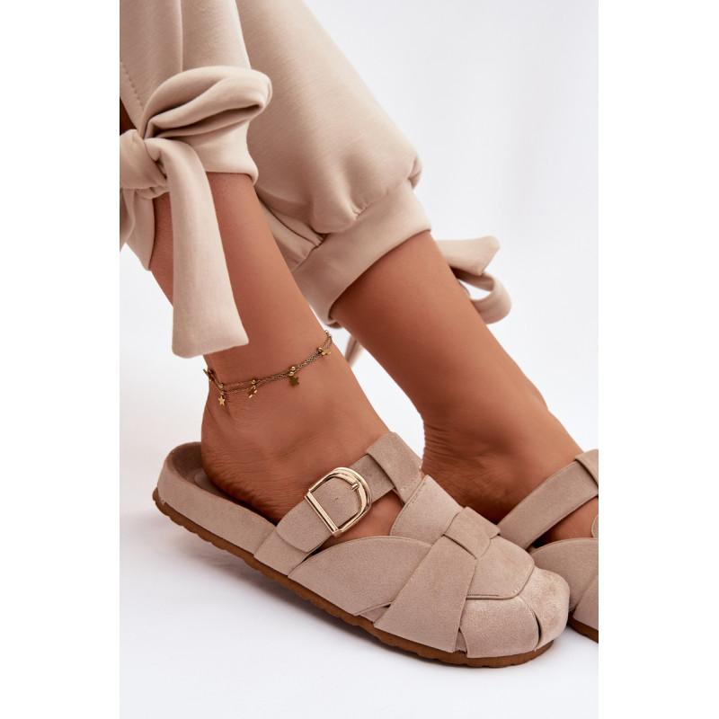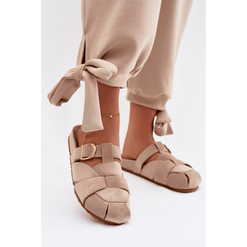 Moteriški ekologiški zomšos mule tipo šlepetės, kurios sujungia patogumą ir madingą išvaizdą. Aukso sagties susegimo juostos yra įspūdingas detalė, suteikianti visumui elegancijos ir modernumo. Profilinė įdėklas užtikrina patogumą ir geresnį prigludimą prie pėdos. Šis modelis puikiai tinka kasdienėms stilizacijoms. Renkantis dydį, vadovaukitės dydžių lentele.
