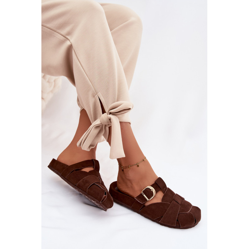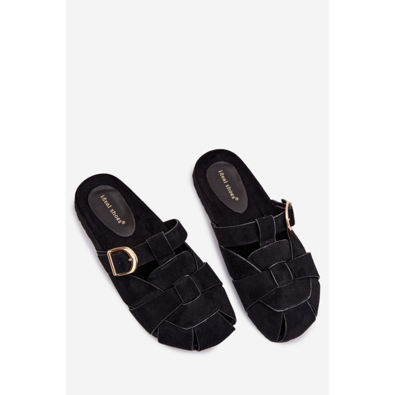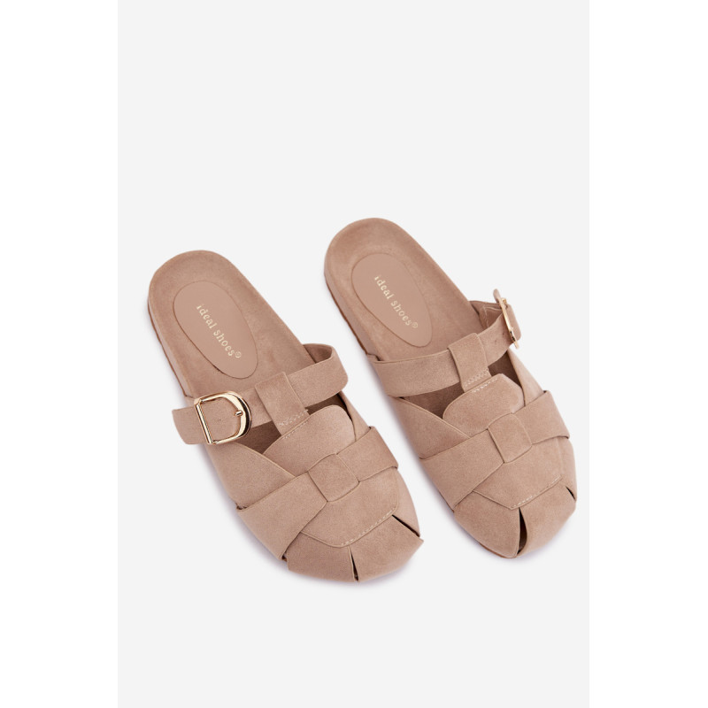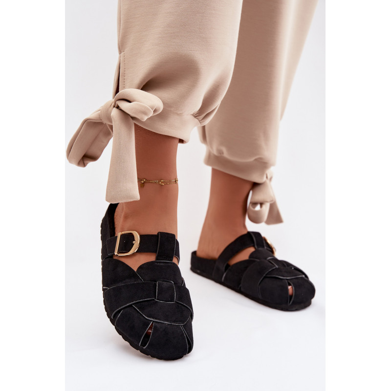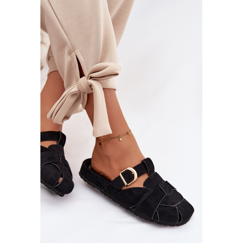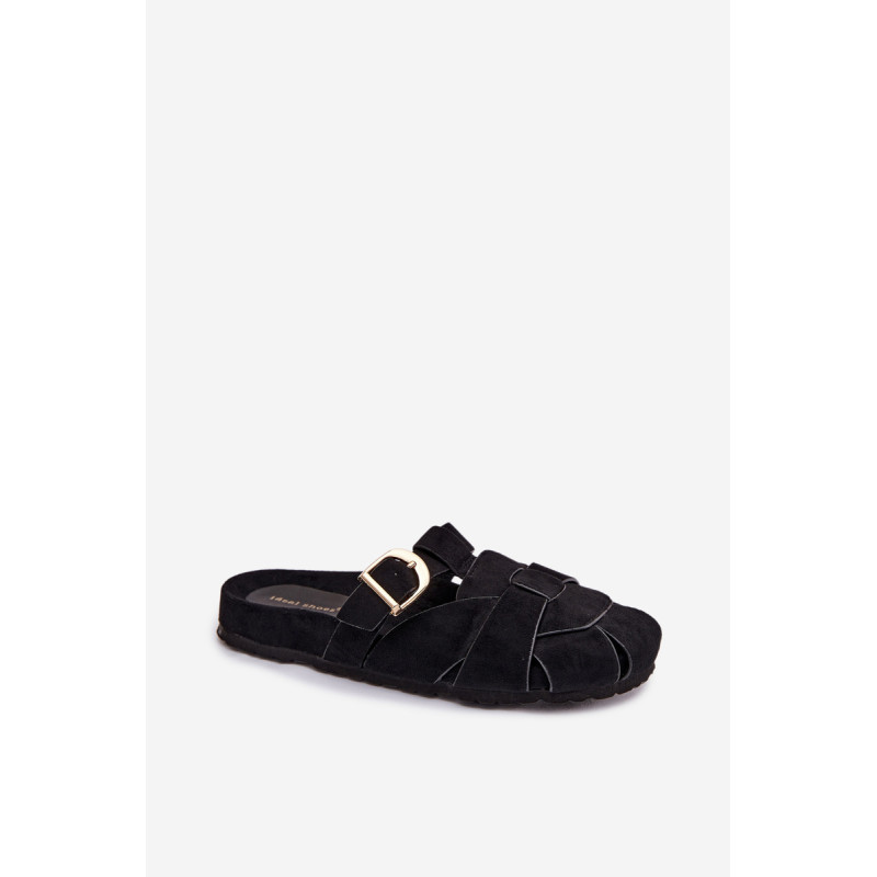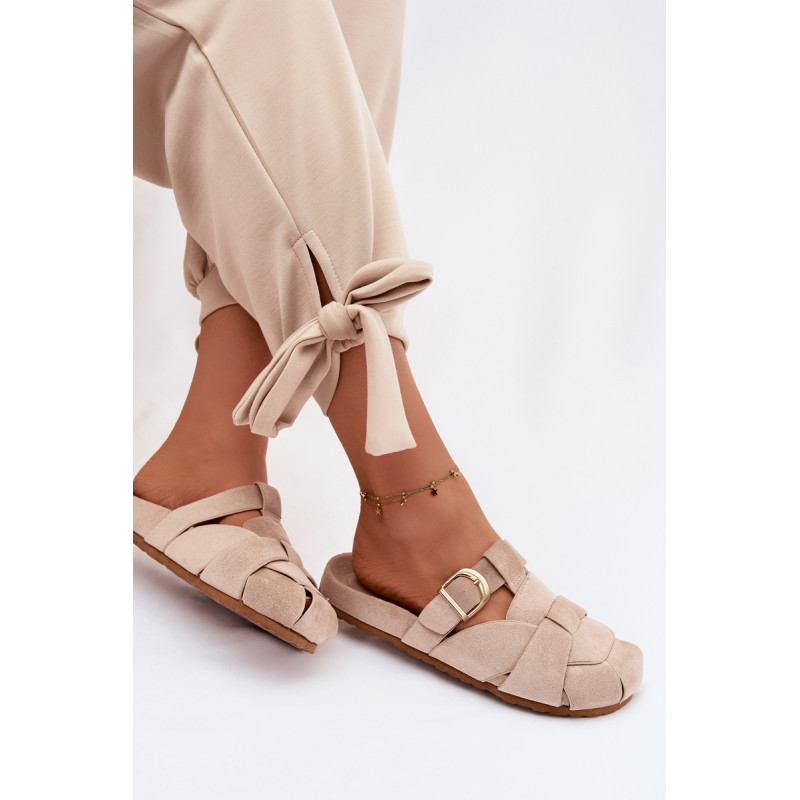 Moteriški ekologiški zomšos mule tipo šlepetės, kurios sujungia patogumą ir madingą išvaizdą. Aukso sagties susegimo juostos yra įspūdingas detalė, suteikianti visumui elegancijos ir modernumo. Profilinė įdėklas užtikrina patogumą ir geresnį prigludimą prie pėdos. Šis modelis puikiai tinka kasdienėms stilizacijoms. Renkantis dydį, vadovaukitės dydžių lentele.
