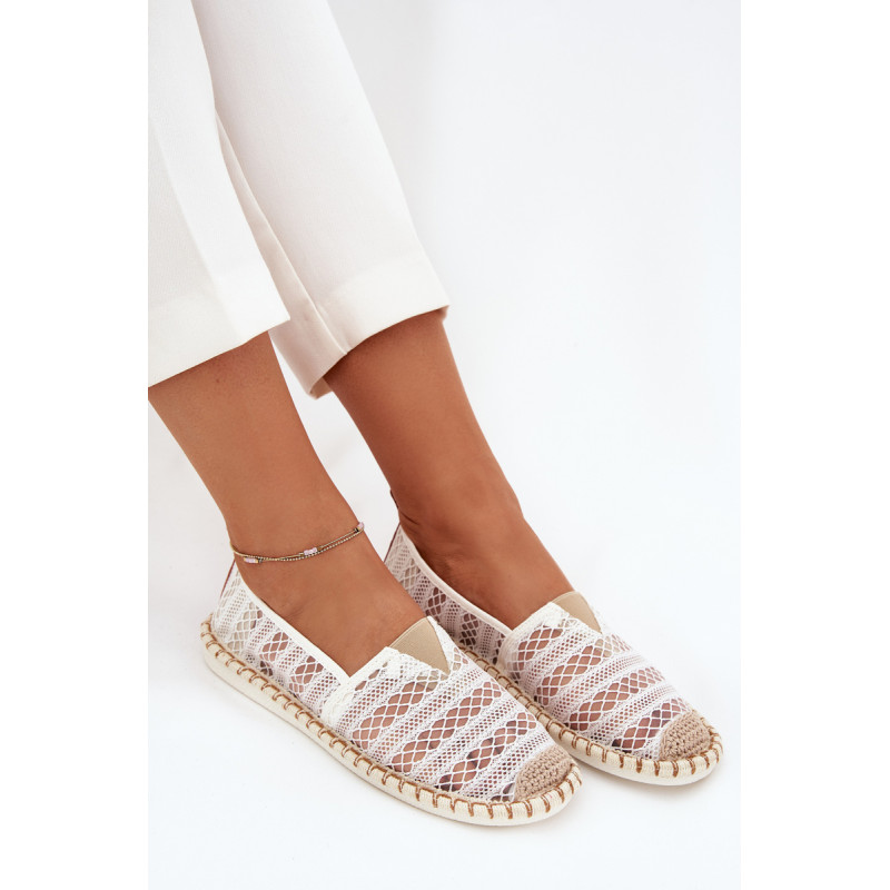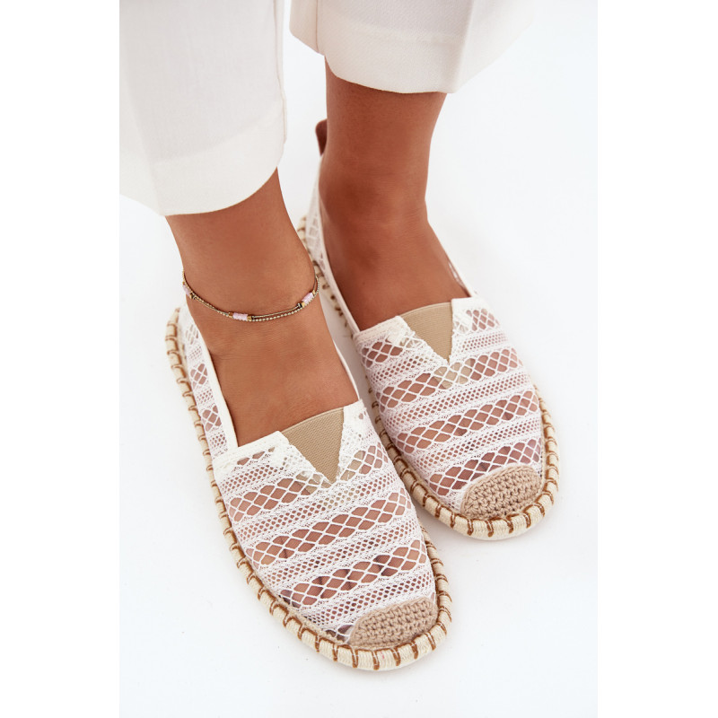 Moteriški espadrilės iš tinklo su nėriniais. Apvalūs pirštai suteikia joms subtilų, moterišką charakterį, o minkštas padas užtikrina komfortą visą dieną. Puikiai tinka vasaros dienoms, puikiai dera su suknelėmis, sijonais ar kelnių, suteikdamos kiekvienam įvaizdžiui subtilų, vasarišką akcentą. Renkantis dydį, vadovaukitės dydžių lentele.