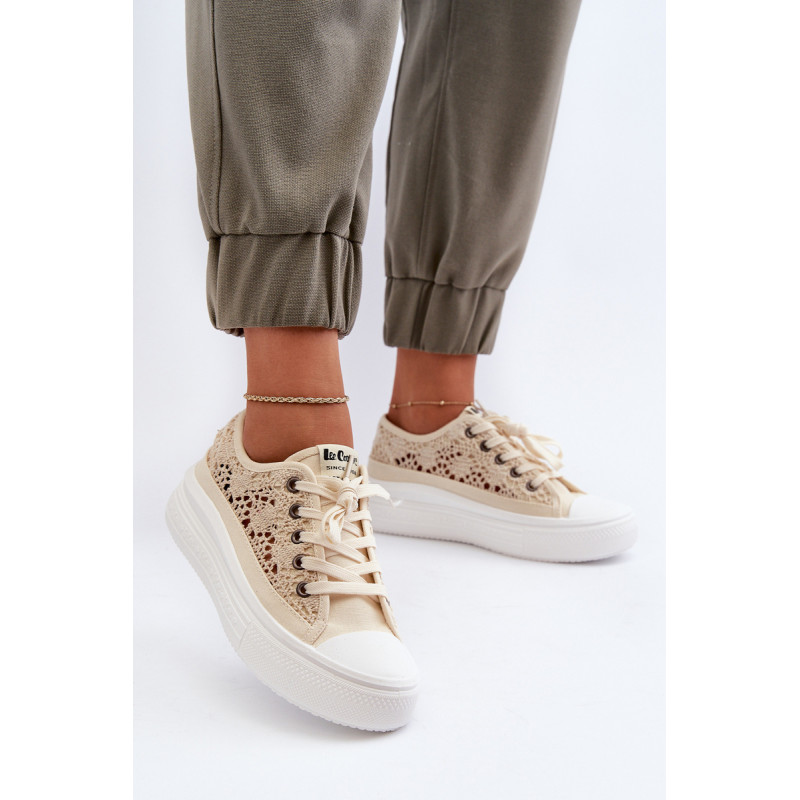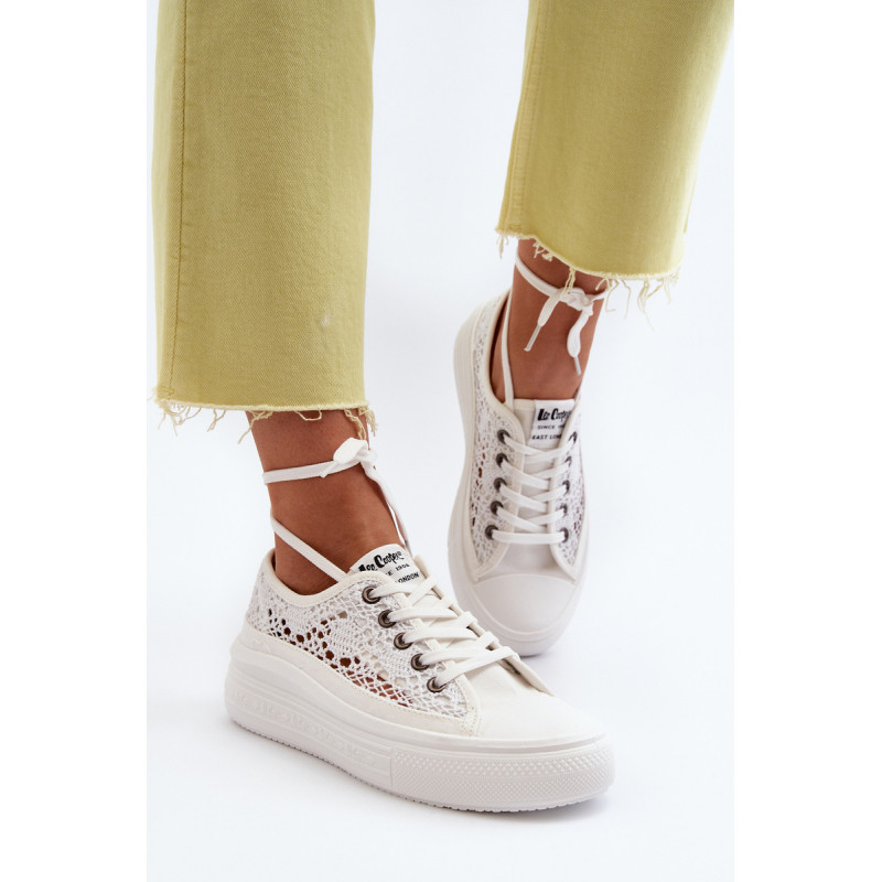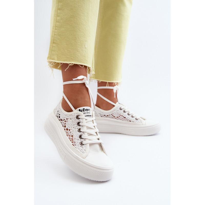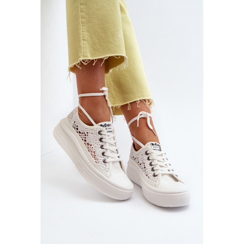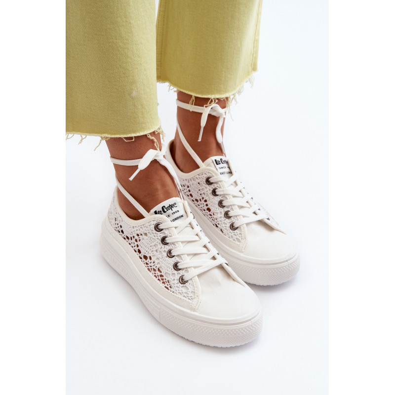 Moteriški „Lee Cooper“ sportbačiai su nėrinių viršumi. Pagaminta iš tekstilės medžiagos. Nustatykite ant storo pado. Klasikinis nėrinių modelis. Būtinai peržiūrėkite kitą mūsų pasiūlyme esančią Lee Cooper avalynę! Rinkdamiesi dydį, žiūrėkite dydžių lentelę.