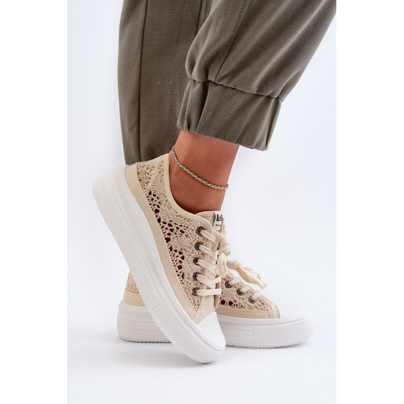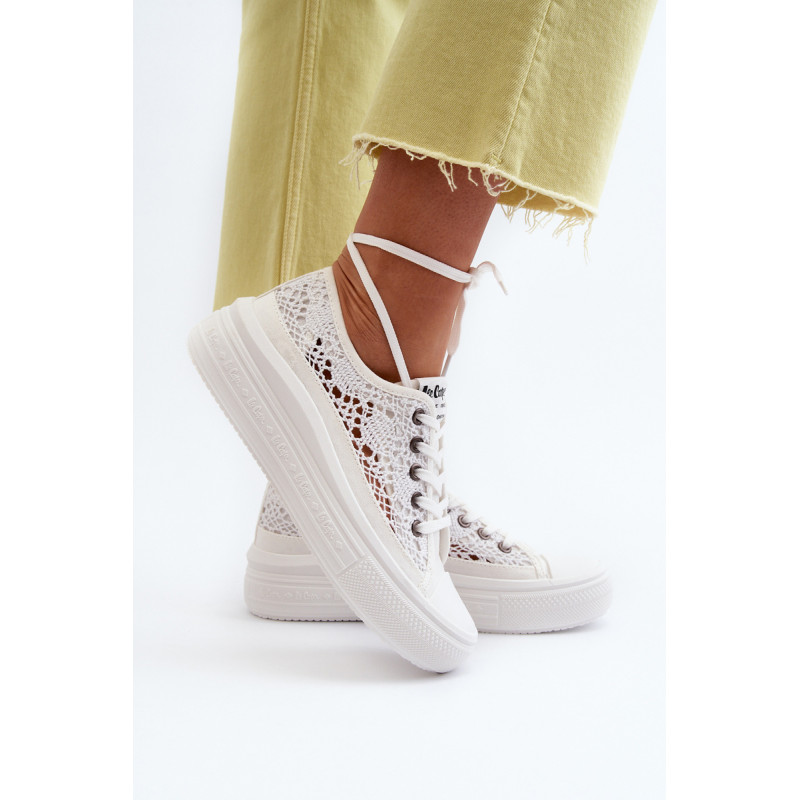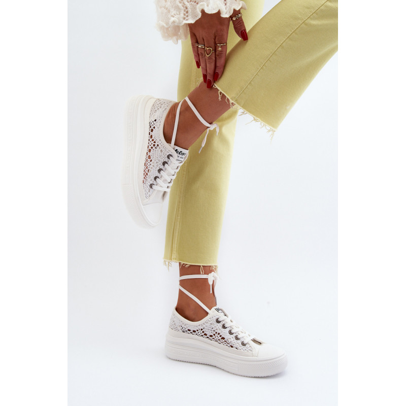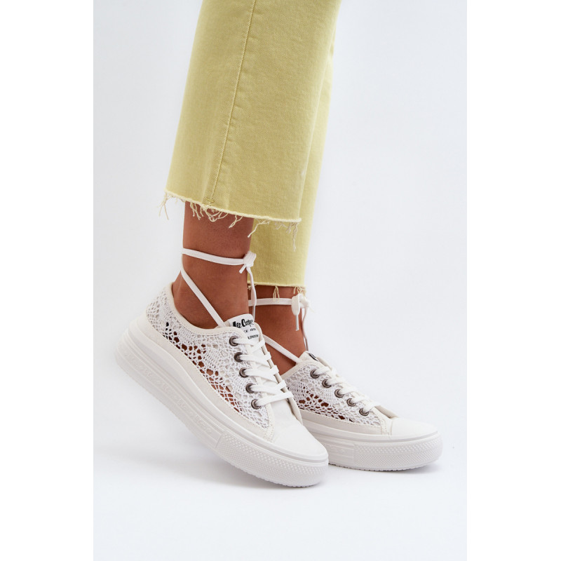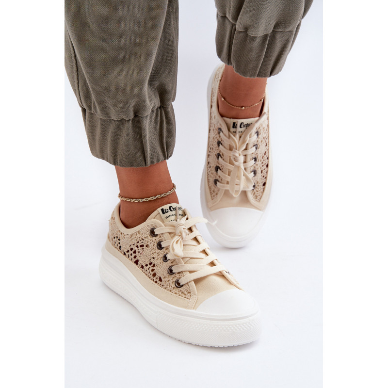 Moteriški „Lee Cooper“ sportbačiai su nėrinių viršumi. Pagaminta iš tekstilės medžiagos. Nustatykite ant storo pado. Klasikinis nėrinių modelis. Būtinai peržiūrėkite kitą mūsų pasiūlyme esančią Lee Cooper avalynę! Rinkdamiesi dydį, žiūrėkite dydžių lentelę.