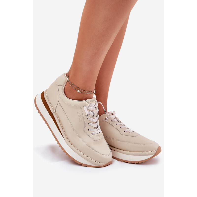 Moteriški Big Star sportiniai bateliai, pagaminti iš aukštos kokybės natūralios odos, yra puikus pasirinkimas tiems, kurie ieško komforto ir stiliaus derinio. Ant platformos, jie užtikrina stabilumą ir komfortą visą dieną. Minkšta putų padas, papildomai padengtas medžiaga, garantuoja komfortą ir tinkamą amortizaciją, todėl batai idealiai tinka kasdieniam naudojimui. Šie sportiniai bateliai puikiai dera su įvairiais stiliais, jungdami funkcionalumą su elegantišku įvaizdžiu. Renkantis dydį, vadovaukitės dydžių lentele.