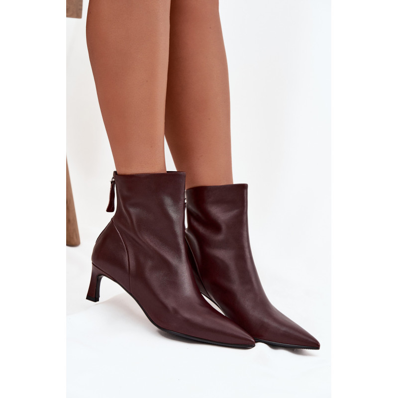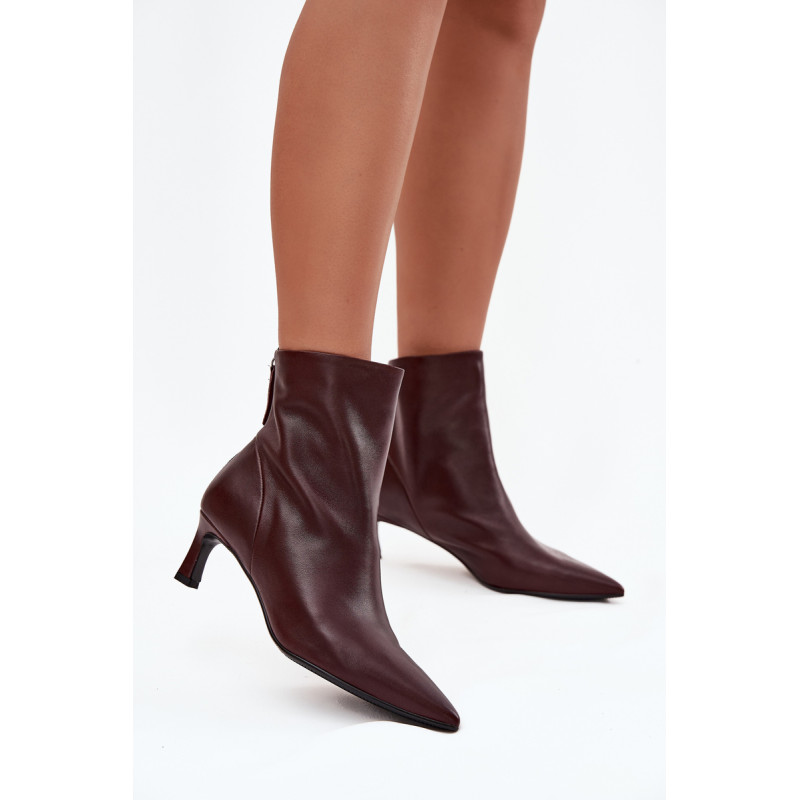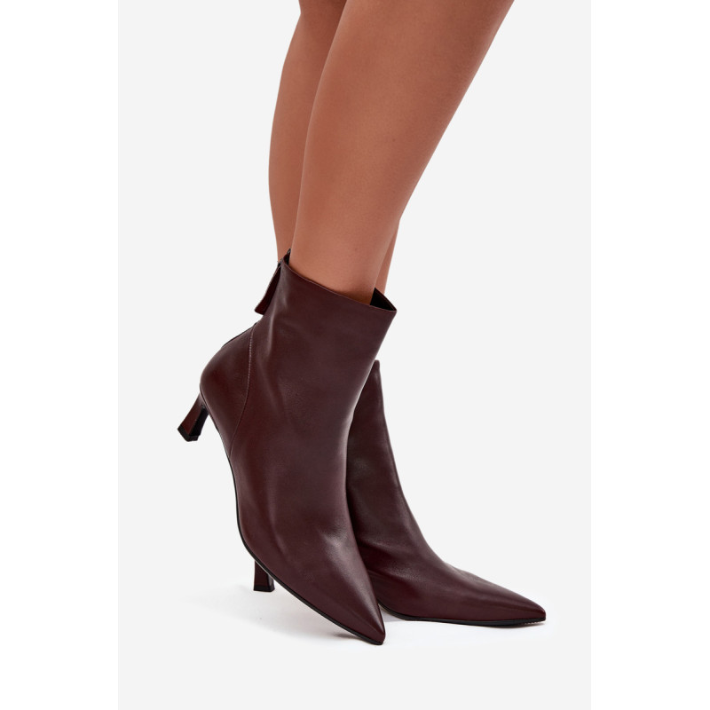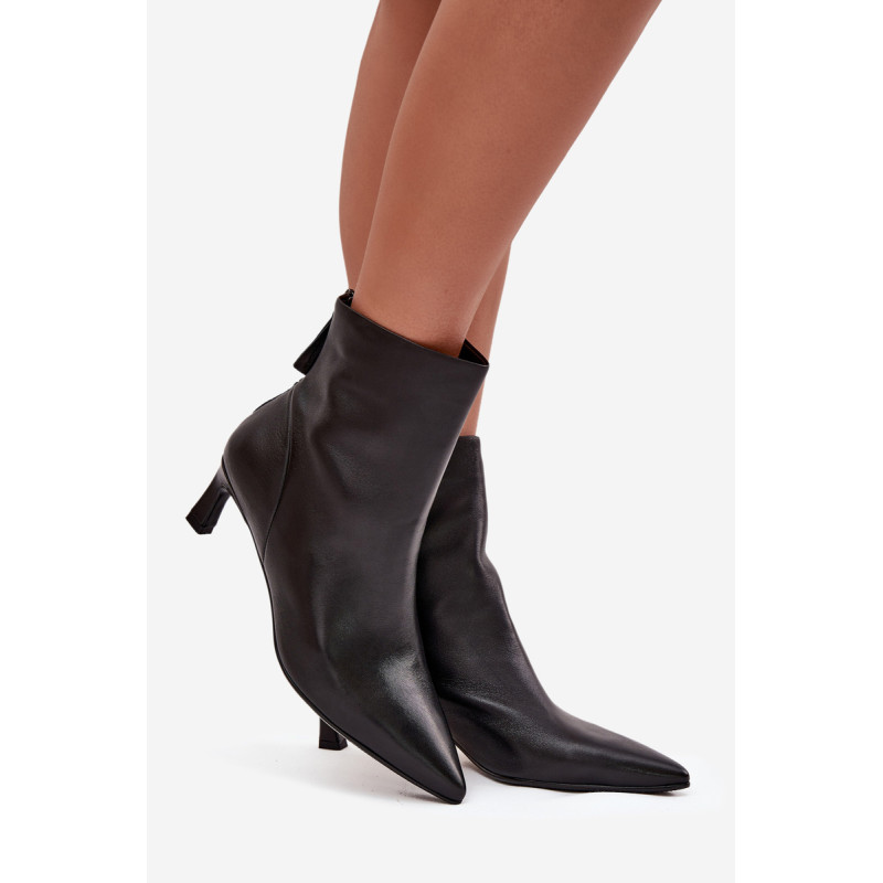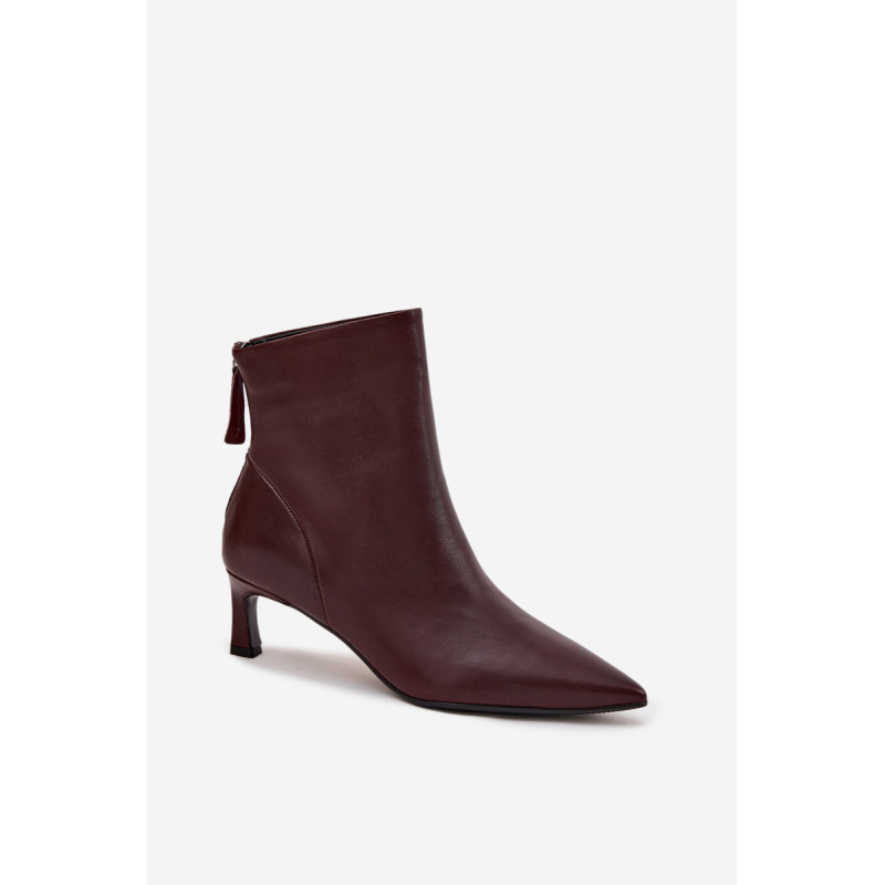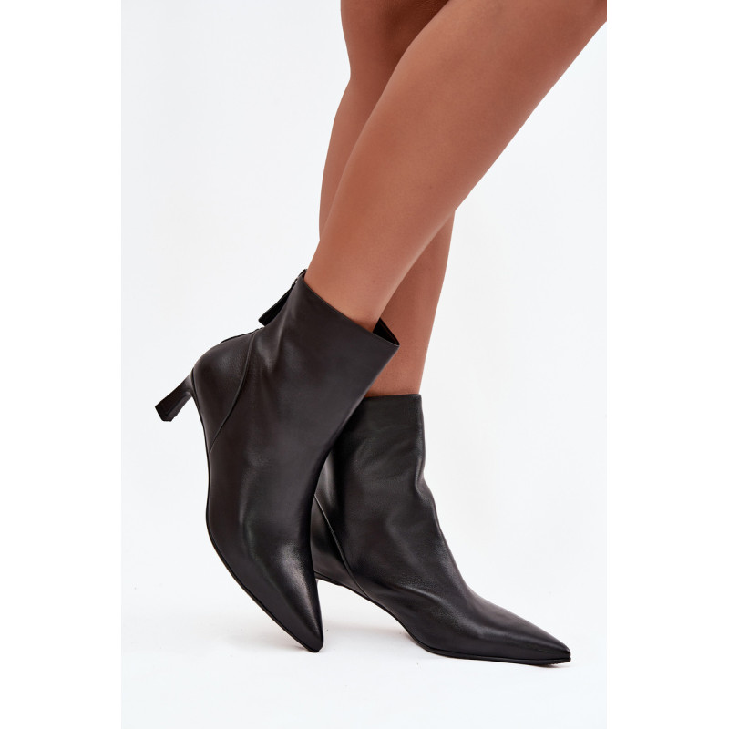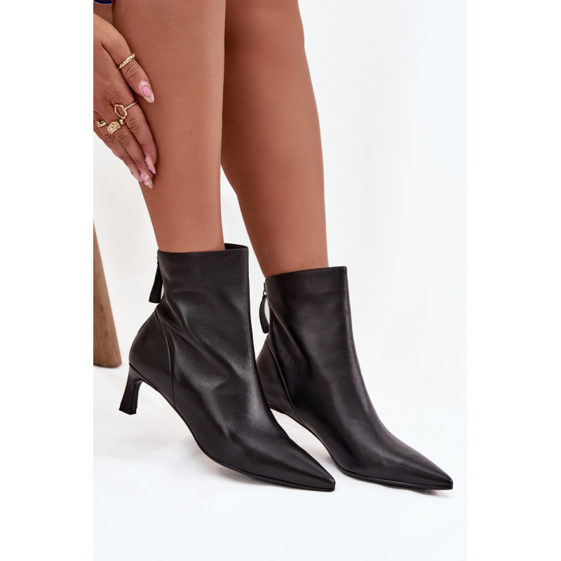 Eleganti moteriški aulinukai, pagaminti iš aukštos kokybės natūralios odos, skirti moterims, vertinančioms klasiką šiuolaikiniame įvaizdyje. Modelis yra ant siauro kulno, kuris subtiliai išplėtė siluetą ir suteikia lengvumo kiekvienam žingsniui. Aštrios nosys pabrėžia elegantišką avalynės charakterį, o užtrauktukas gale palengvina greitą užsidėjimą ir nuėmimą. Šie stilingi aulinukai puikiai tiks tiek elegantiškoms vakarinėms aprangoms, tiek iškilmingesniems deriniams ypatingoms progoms. Renkantis dydį, vadovaukitės dydžių lentele.