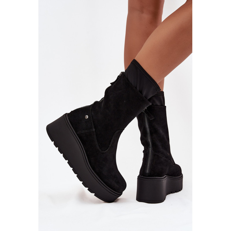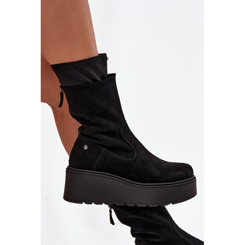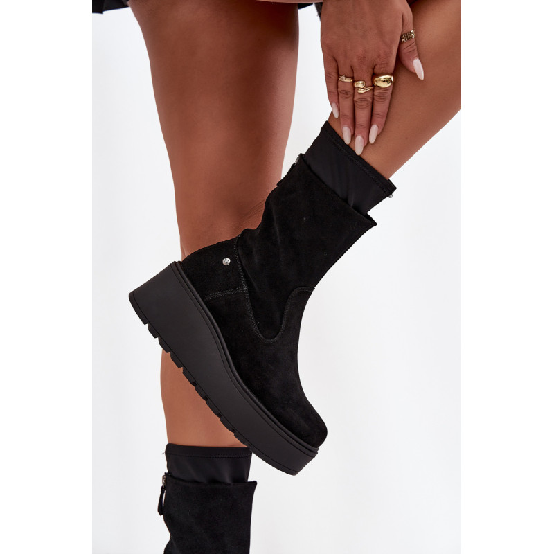 Moteriški auliniai batai Maciejka prekės ženklu, pagaminti iš natūralios zomšos odos. Pastatyti ant tvirto platformos. Užsisegimo modelis. Užkulnyje užtrauktukas. Apvalios nosys. Minkšta įdėklas užtikrins patogų dėvėjimą. Šiltinami tik pėdos aukštyje. Šį madingą modelį galite derinti prie daugelio rudens stilių! Pasirinkdami dydį, prašome vadovautis dydžių lentele. Renkantis dydį, vadovaukitės dydžių lentele.