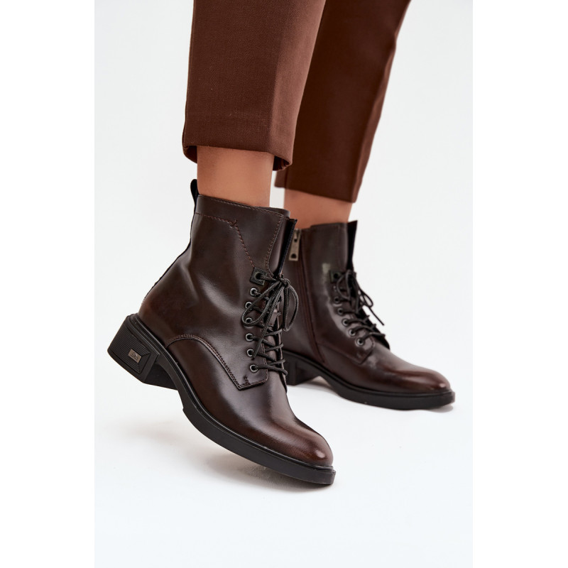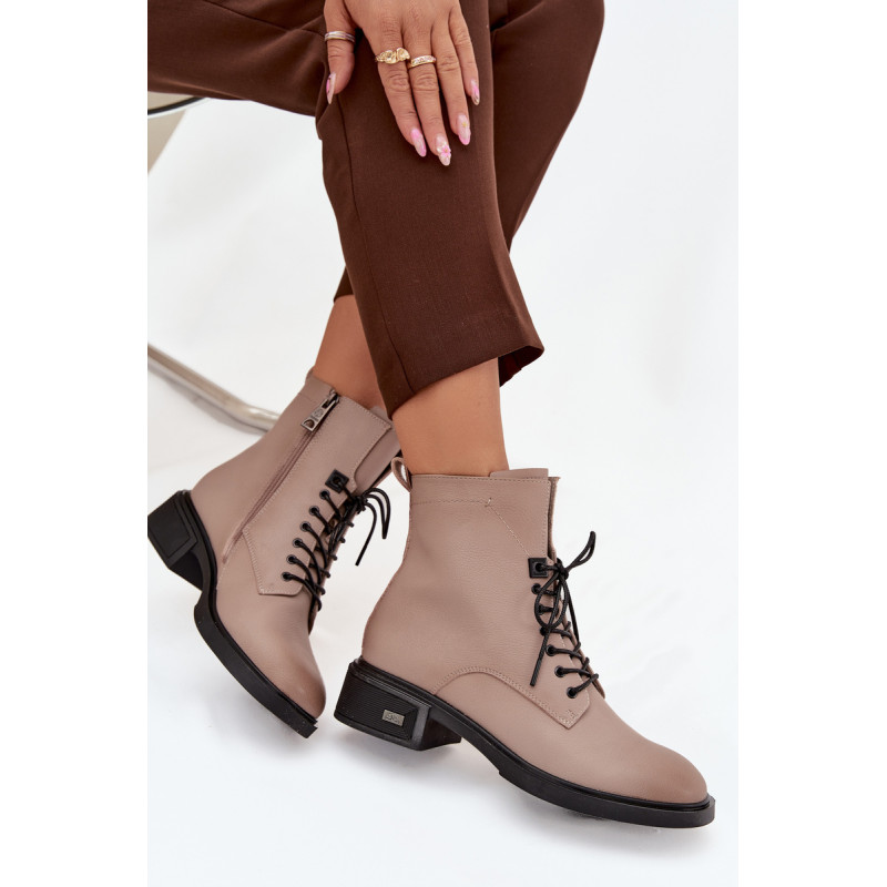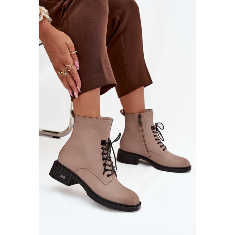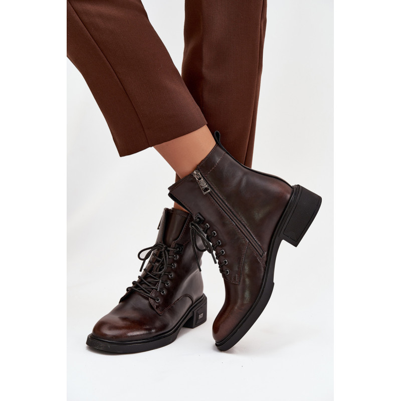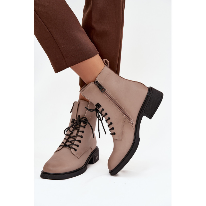 Moteriški Vinceza prekės ženklo auliniai batai, pagaminti iš natūralios odos, derina klasiką ir eleganciją kasdieniam dėvėjimui. Modelis su žemu kulnu garantuoja patogumą, o raišteliai ir užtrauktukas palengvina įsitraukimą ir pritaikymą prie pėdos. Apvalios nosys. Šis modelis puikiai tinka kasdienėms stiliaus išvaizdoms. Pasirinkdami dydį, vadovaukitės dydžių lentele. Renkantis dydį, vadovaukitės dydžių lentele.