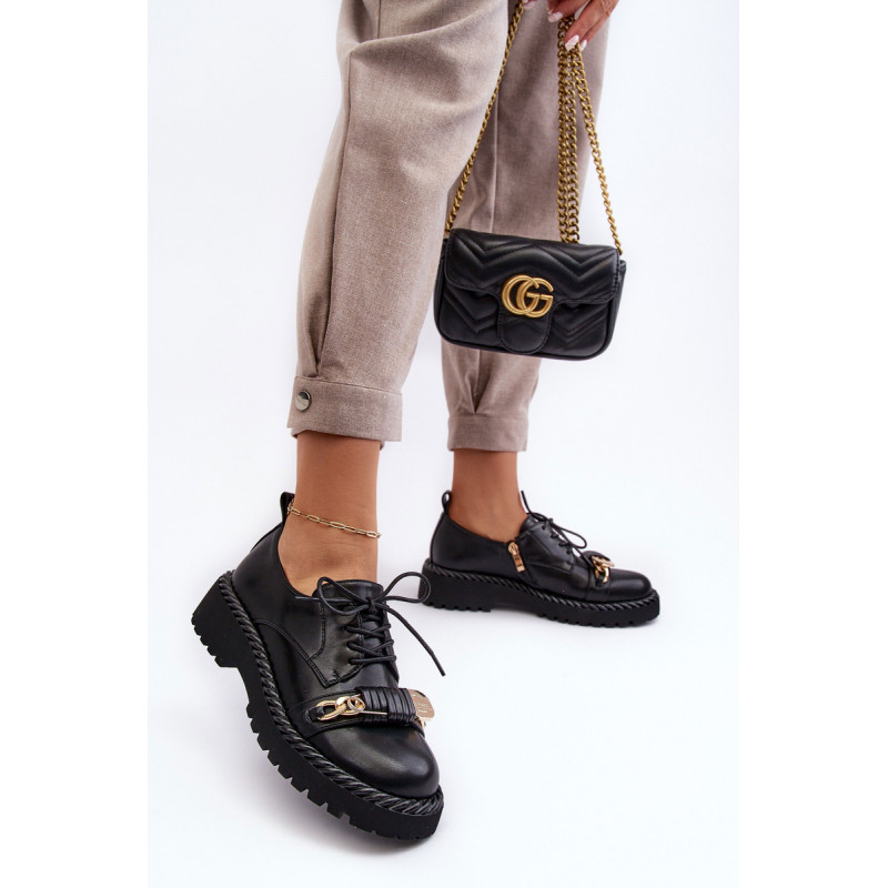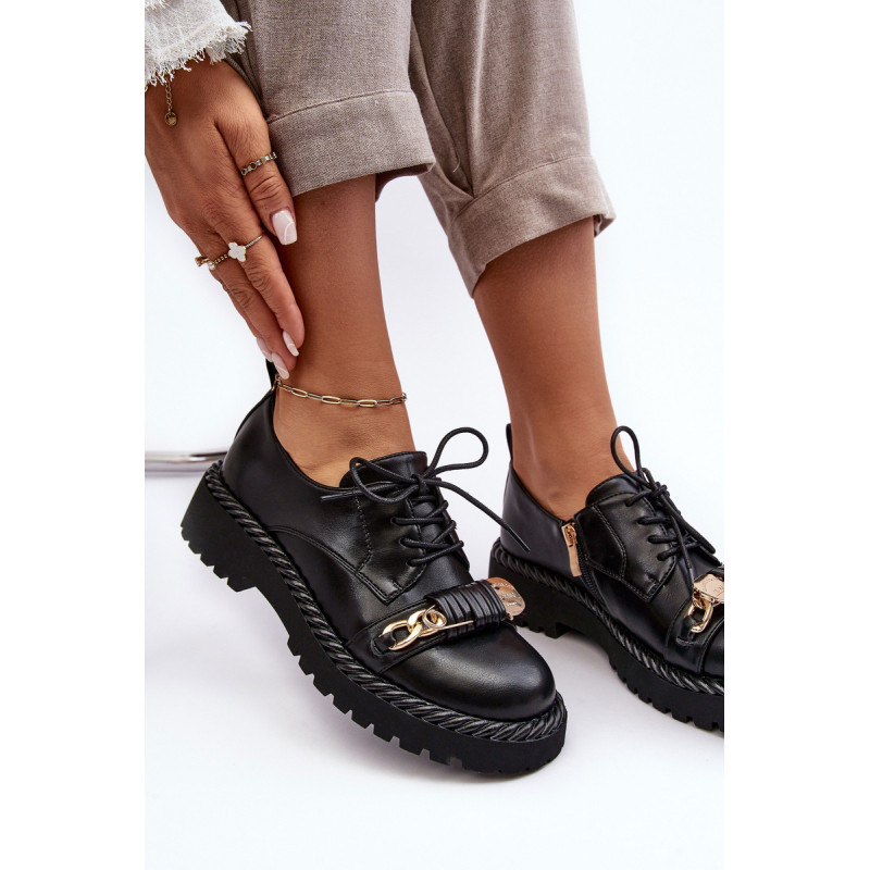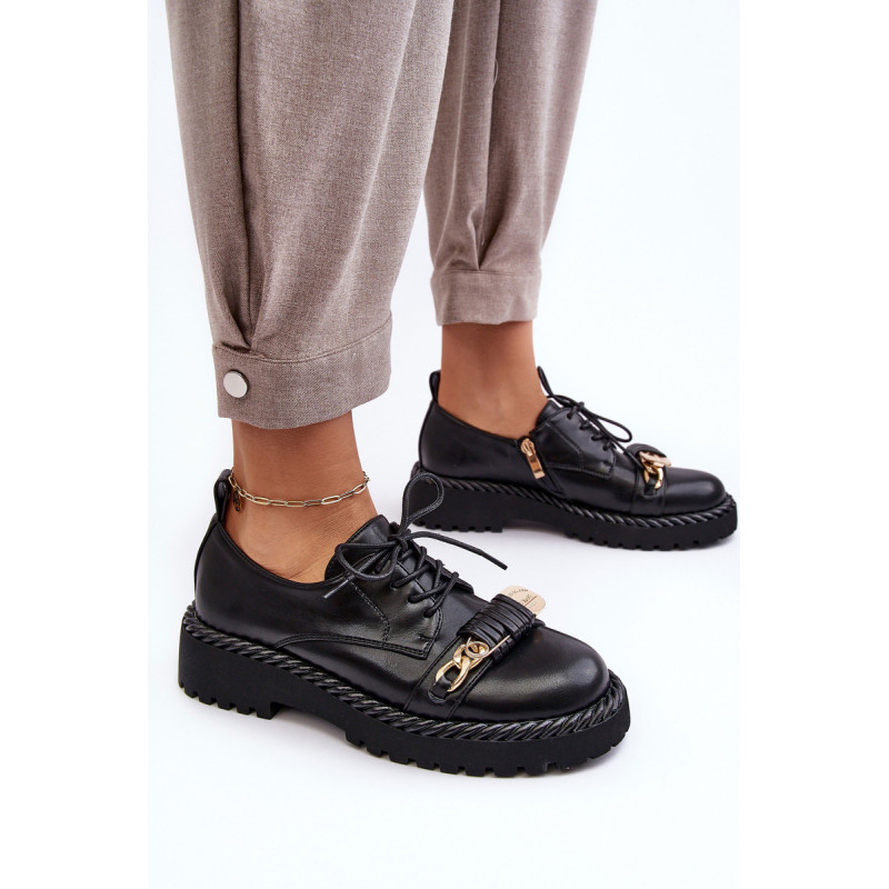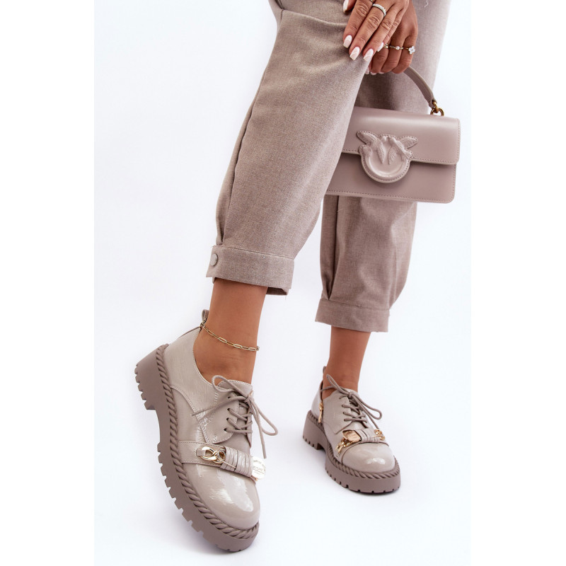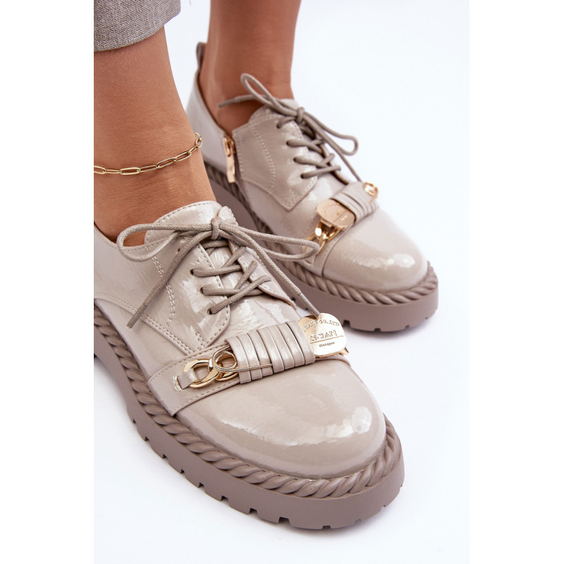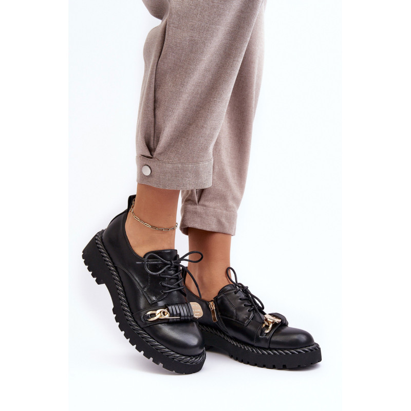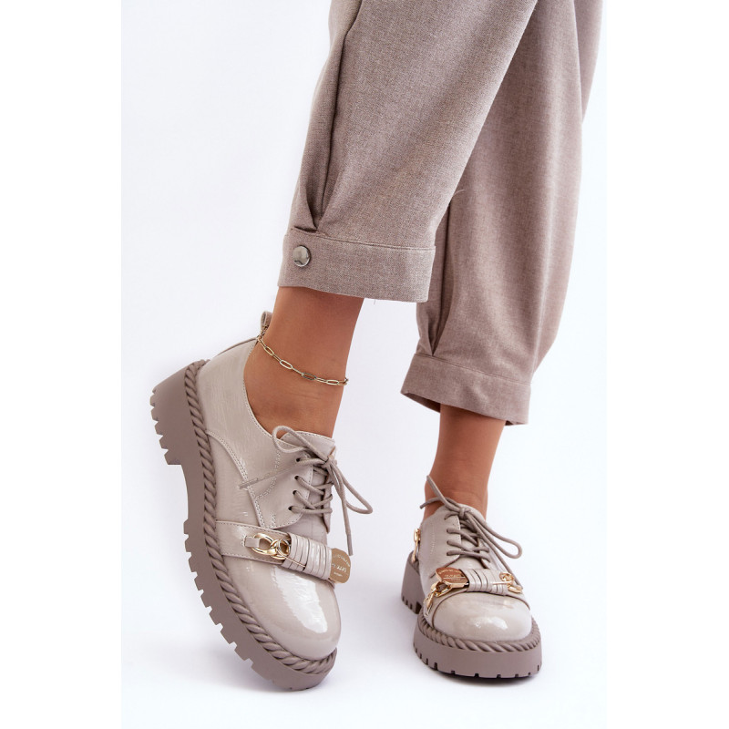 Moteriški batai buvo pagaminti iš aukštos kokybės ekologiškos odos. Komplektacija ant plokščio kulno ir platformos, kuri papildomai papuošta virvės imitacija. Šis modelis suvarstomas papildomu užtrauktuku šone. Vidpadis pasirūpins Jūsų patogumu naudojant ir buvo pagamintas iš natūralios odos. Be to, šio bato pirštas yra standesnis. Jie puikiai tiks daugybei progų. Būtinai peržiūrėkite visą mūsų batų kolekciją! Renkantis dydį, vadovaukitės dydžių lentele.