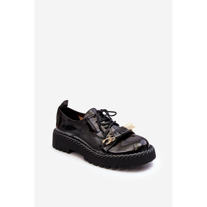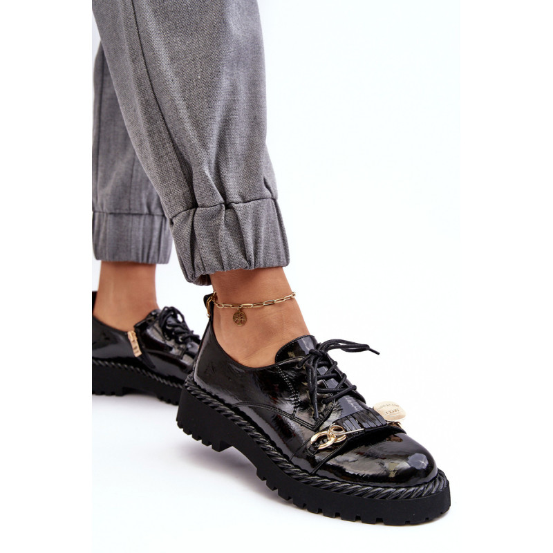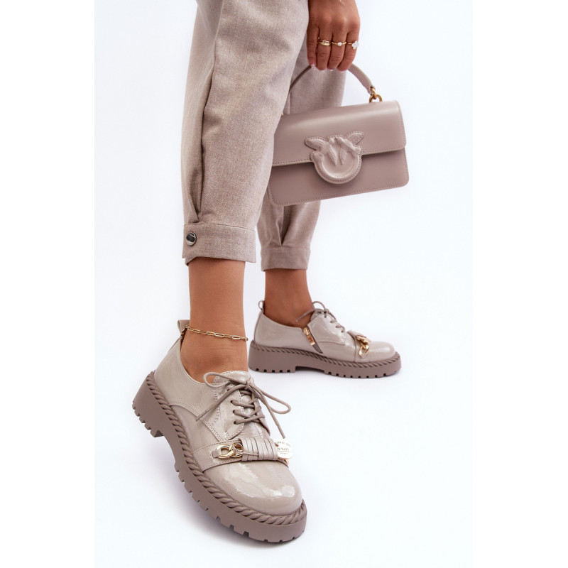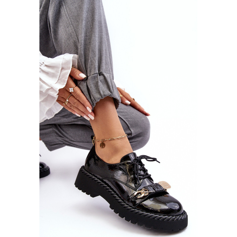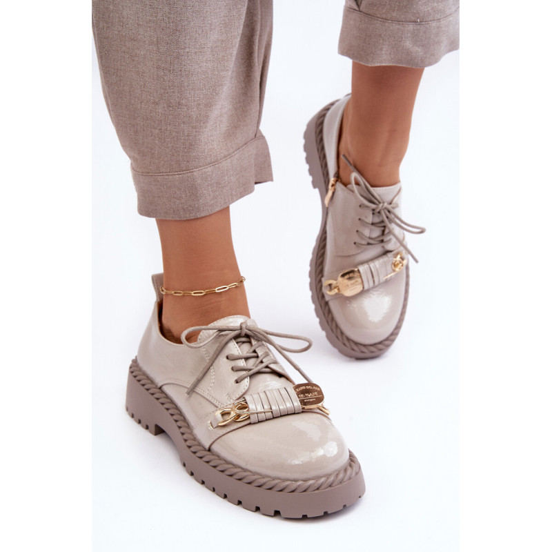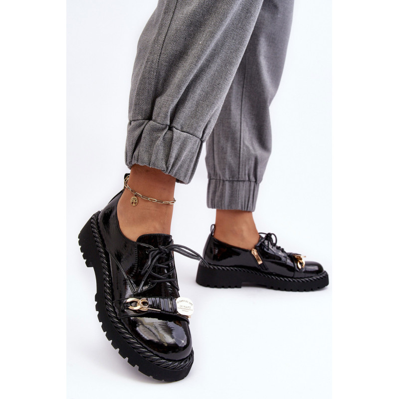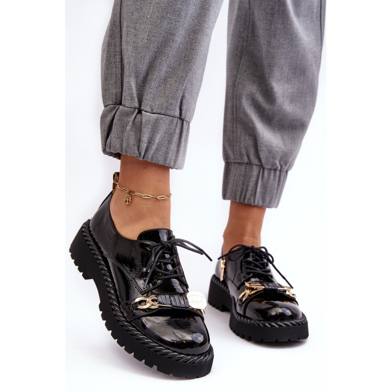 Moteriški batai buvo pagaminti iš aukštos kokybės ekologiškos odos. Komplektacija ant plokščio kulno ir platformos, kuri papildomai papuošta virvės imitacija. Šis modelis suvarstomas papildomu užtrauktuku šone. Vidpadis pasirūpins Jūsų patogumu naudojant ir buvo pagamintas iš natūralios odos. Be to, šio bato pirštas yra standesnis. Jie puikiai tiks daugybei progų. Būtinai peržiūrėkite visą mūsų batų kolekciją! Renkantis dydį, vadovaukitės dydžių lentele.