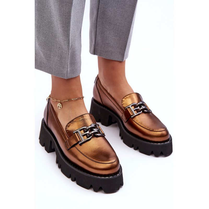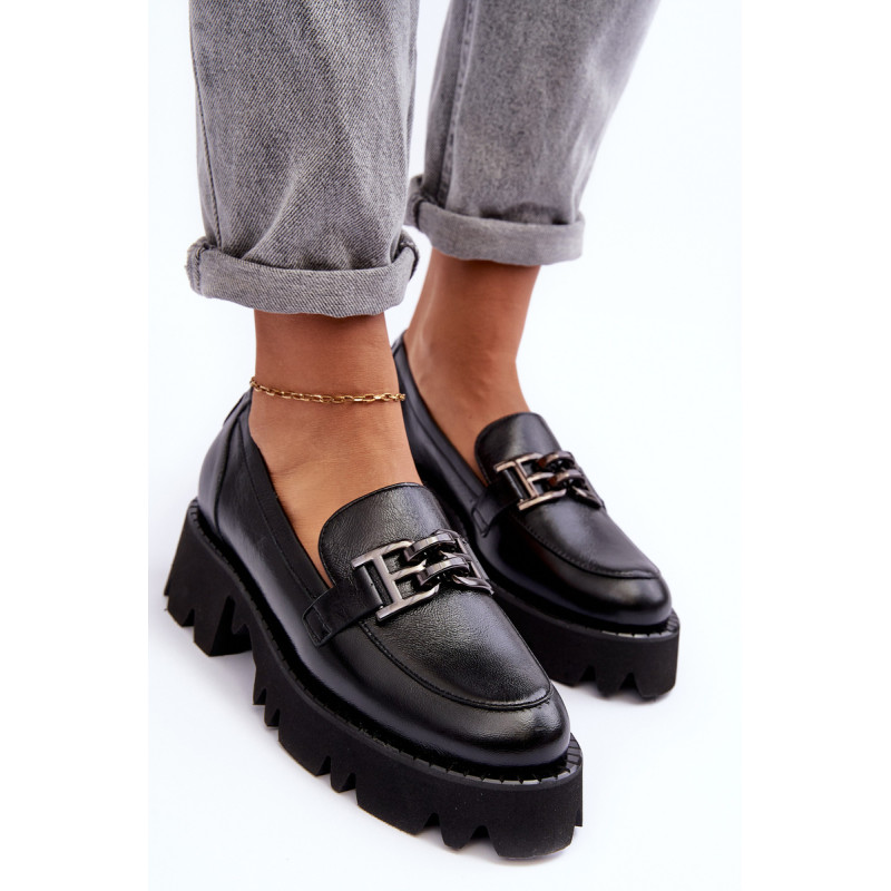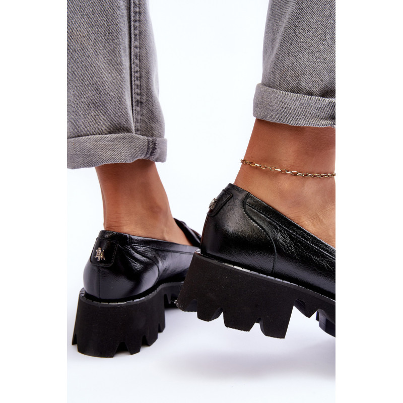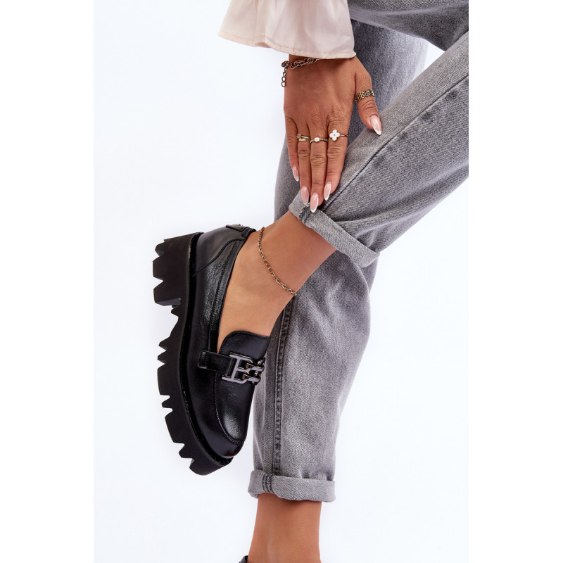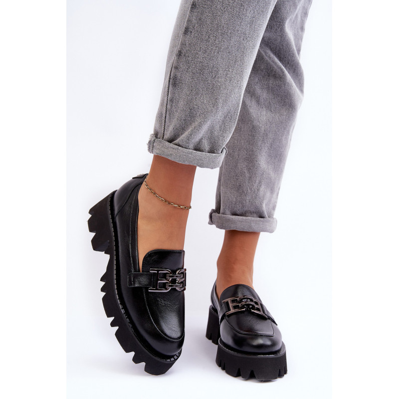 Elegantiški moteriški batukai ant masyvios platformos ir plokščio, stabilaus kulno. Pagaminta iš natūralios odos. Klasikinis, užsegamas modelis. Sustiprintas pirštas, suapvalinta nosis. Priekyje yra plastiko apdaila. Minkštas odinis vidpadis leis patogiai naudotis avalyne. Šie batai puikiai atrodys prie daugelio drabužių! Būtinai peržiūrėkite visą mūsų kepurėlių kolekciją! Rinkdamiesi dydį, žiūrėkite dydžių lentelę.