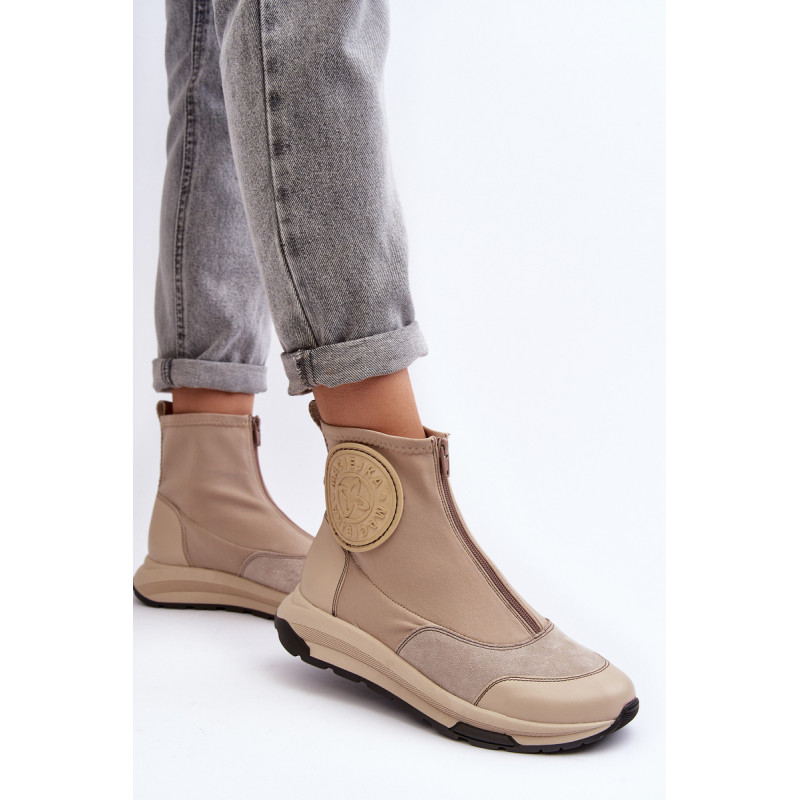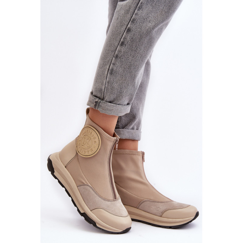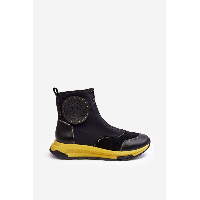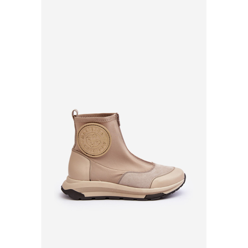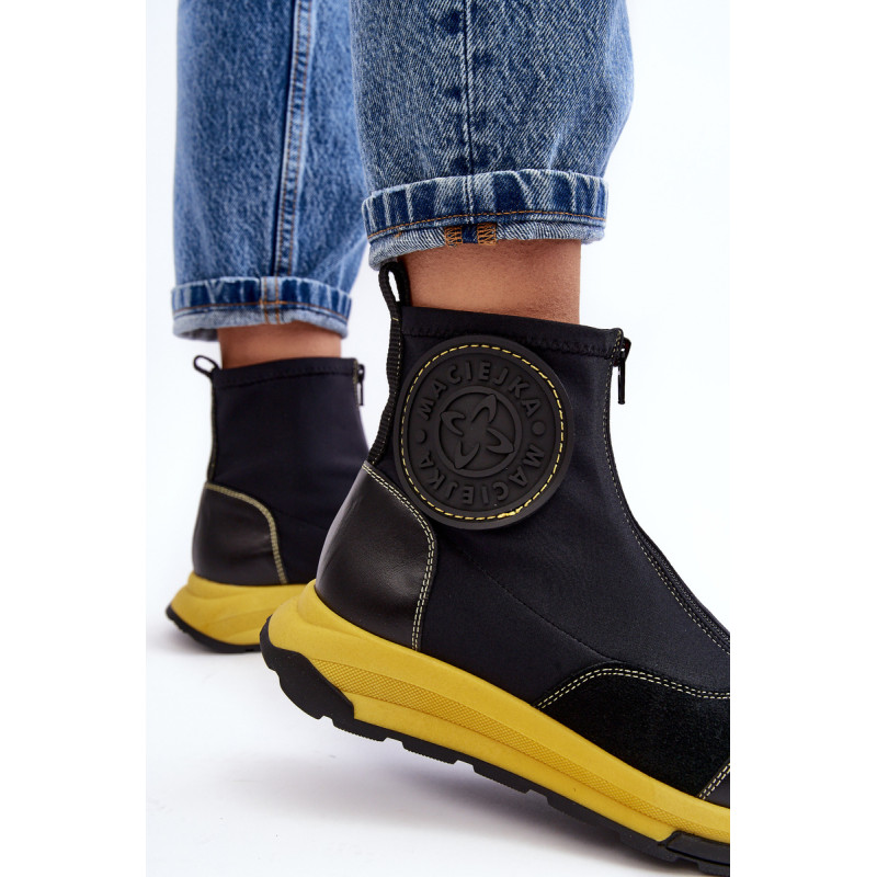 Maciejka sportinio stiliaus moteriški batai. Pagaminta iš aukščiausios kokybės natūralios odos ir audinio derinio. Viršutinėje pusėje yra didelis prekės ženklo logotipas. Šis modelis priekyje užsegamas užtrauktuku. Pirštai suapvalinti. Sutvirtintas skaitiklis. Rinkdamiesi dydį žiūrėkite dydžių lentelę.