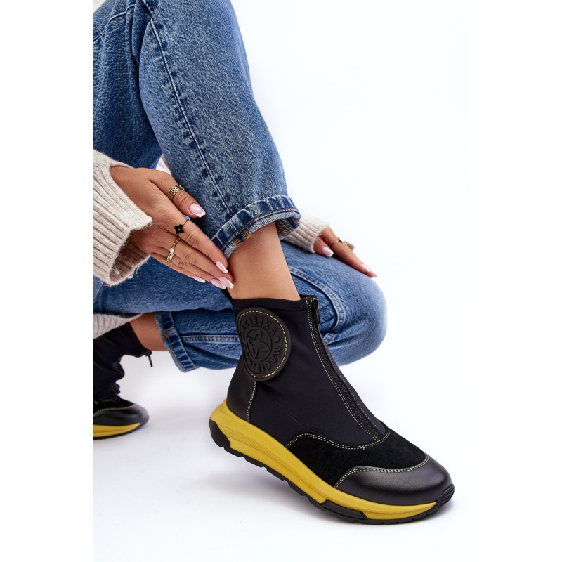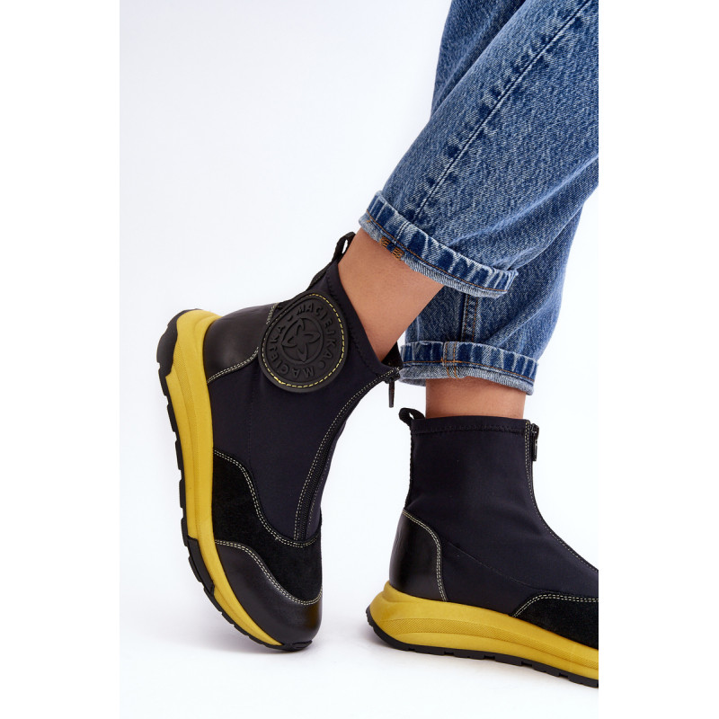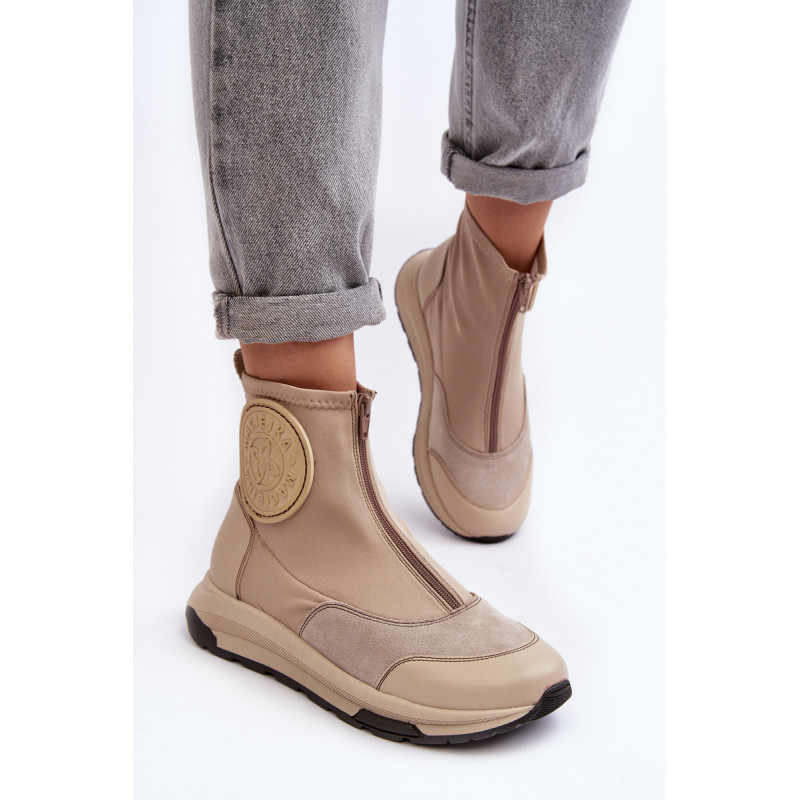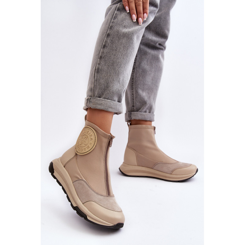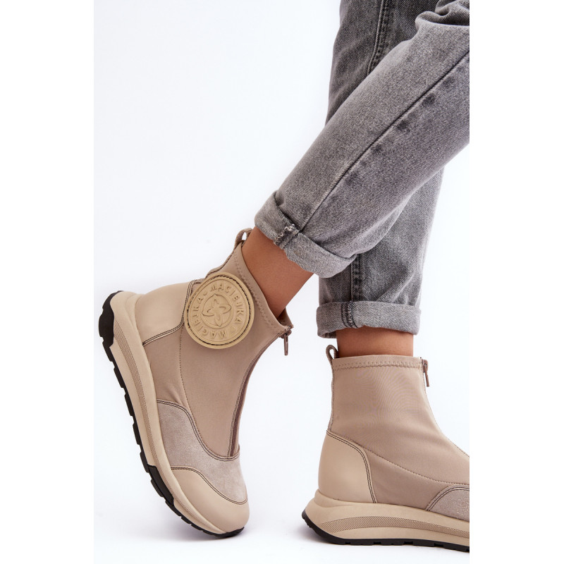 Maciejka sportinio stiliaus moteriški batai. Pagaminta iš aukščiausios kokybės natūralios odos ir audinio derinio. Viršutinėje pusėje yra didelis prekės ženklo logotipas. Šis modelis priekyje užsegamas užtrauktuku. Pirštai suapvalinti. Sutvirtintas skaitiklis. Rinkdamiesi dydį žiūrėkite dydžių lentelę.