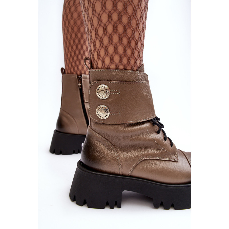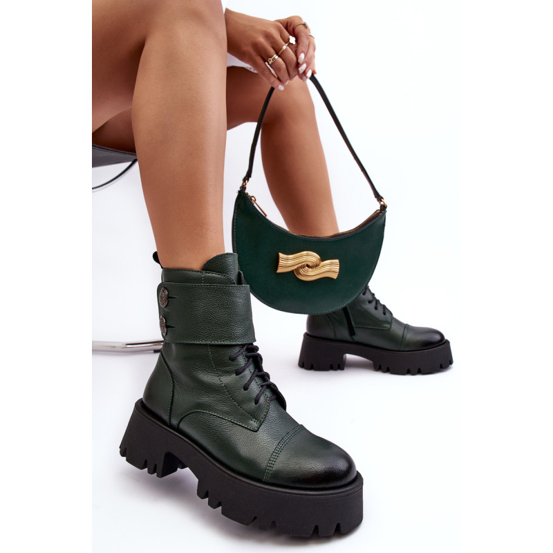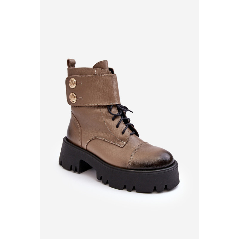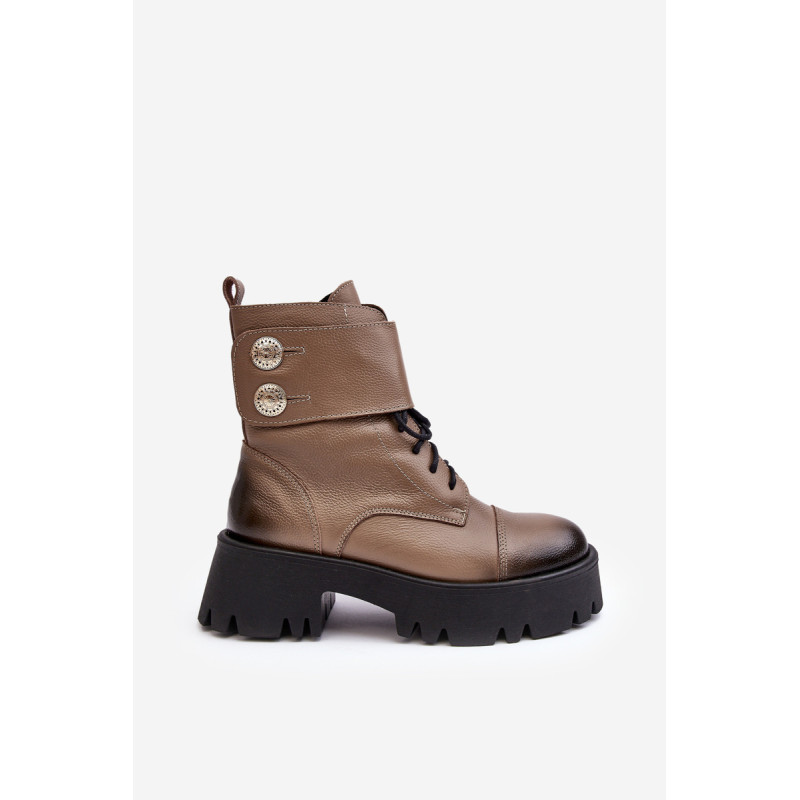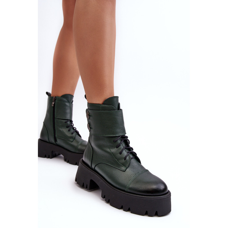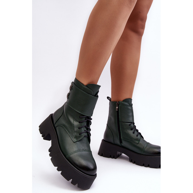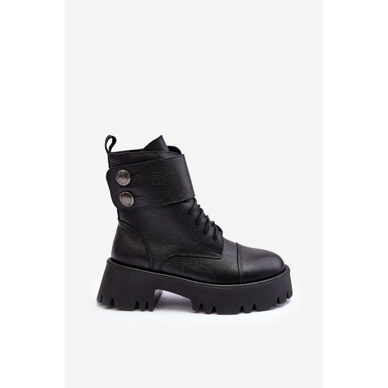 Moteriški batai iš natūralios odos. Įrengtas ant masyvaus, plokščio kulno ir platformos. Užsegamas užtrauktuku šone. Viršutinę dalį puošia platus diržas. Vidus apšiltintas batų pamušalu. Padas neslidus. Šis modelis tiks daugeliui rudens-žiemos stilių! Renkantis dydį, vadovaukitės dydžių lentele.