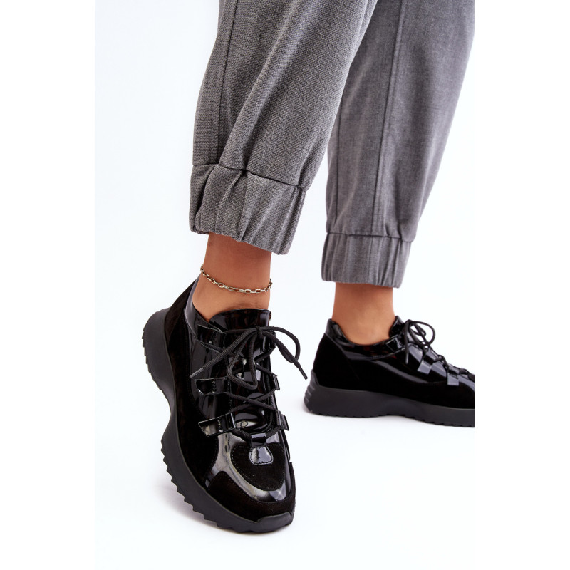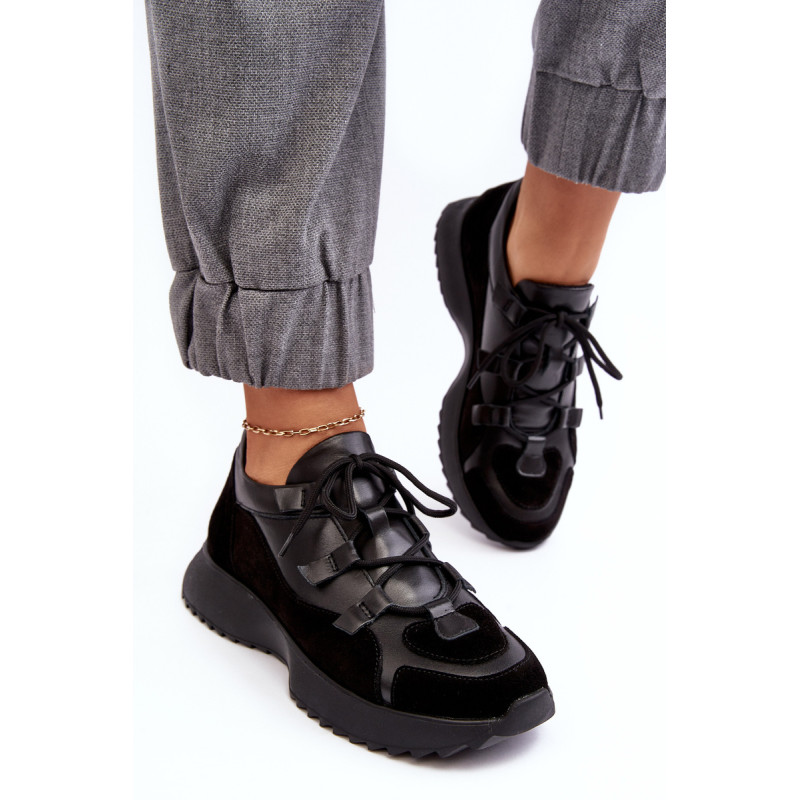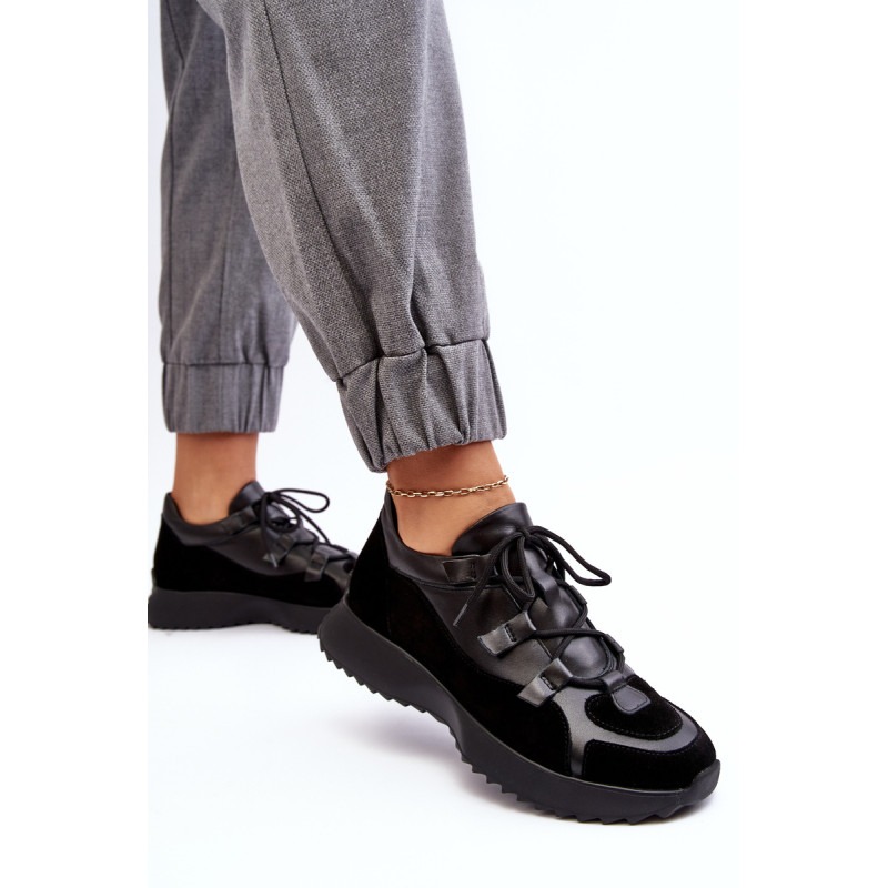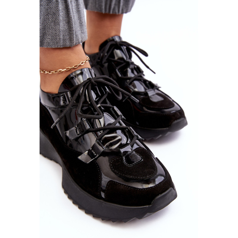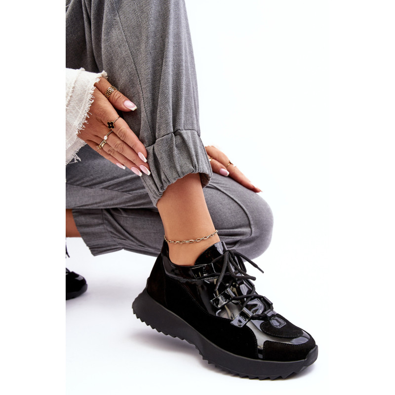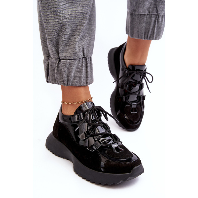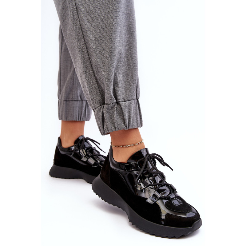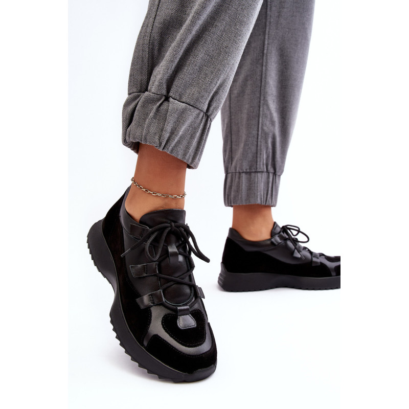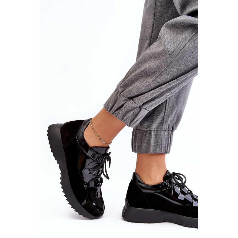 Patogūs, moteriški sportiniai batai buvo pritvirtinti ant pleišto kulno. Sportiniai bateliai pagaminti iš natūralios odos su ažūrine puošmena viršutinėje dalyje. Be to, raišteliai turi blizgų kraštą. Vidpadis Comfort pagamintas iš natūralios odos. Šis modelis jums tikrai patiks! Rinkdamiesi dydį žiūrėkite dydžių lentelę.