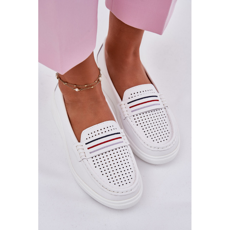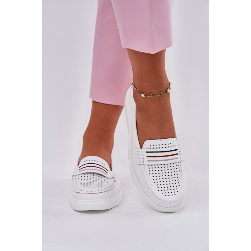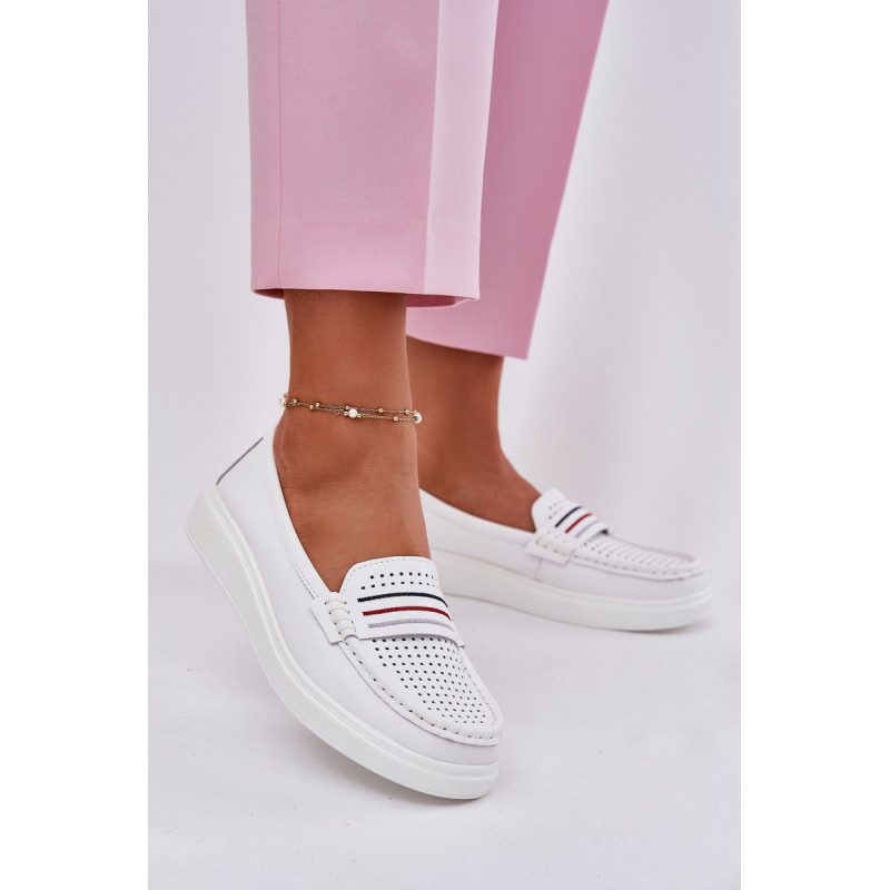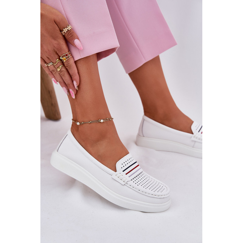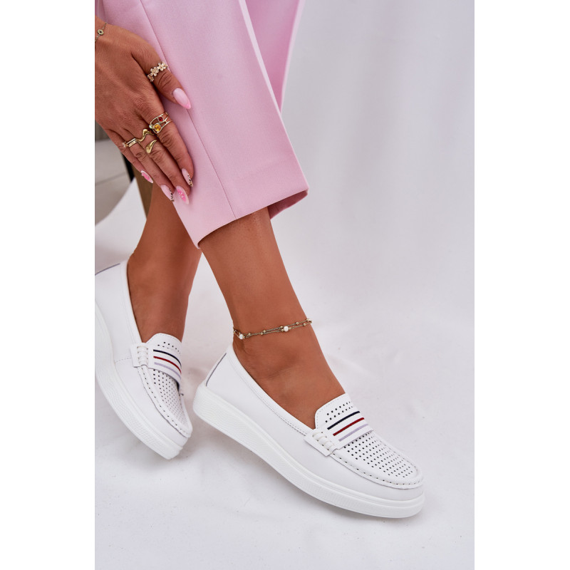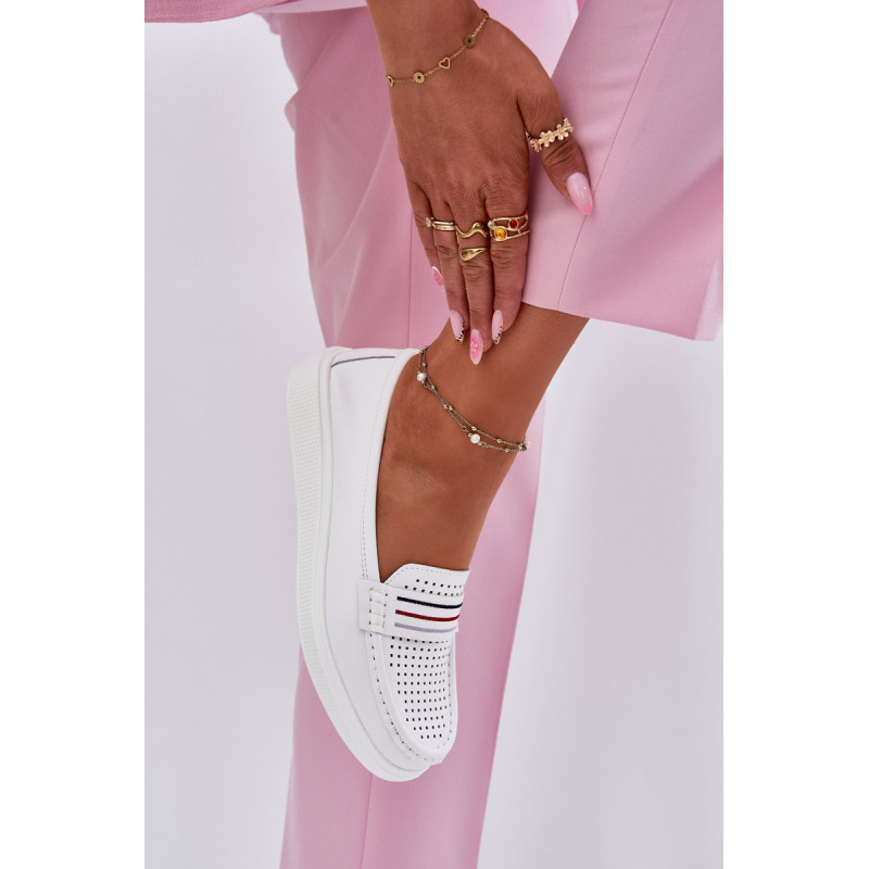 Moteriški mokasinai pagaminti iš natūralios odos. Įrengti ant švelnios platformos. Apvalūs pirštai užtikrina komfortą, o minkšta odinė padas rūpinasi tinkamu amortizavimu. Lengva konstrukcija daro modelį ypač patogų, idealiai tinkančius kasdieniam stiliui. Šie mokasinai sujungia funkcionalumą su subtiliu, moderniu stiliumi. Renkantis dydį, vadovaukitės dydžių lentele.
