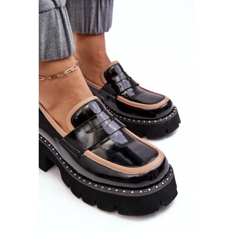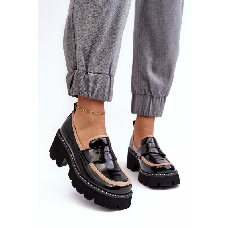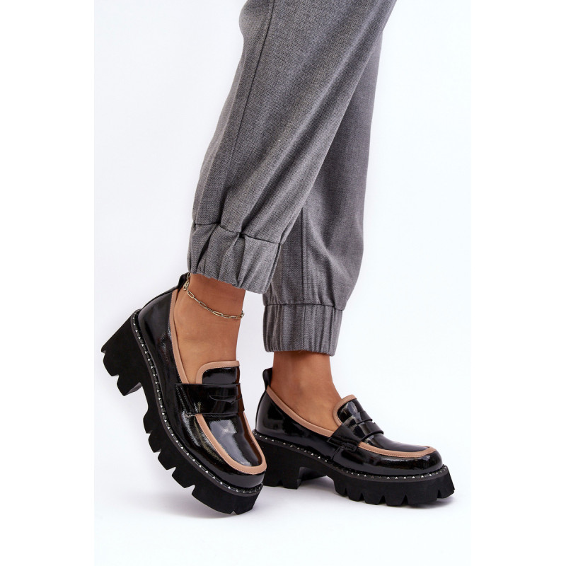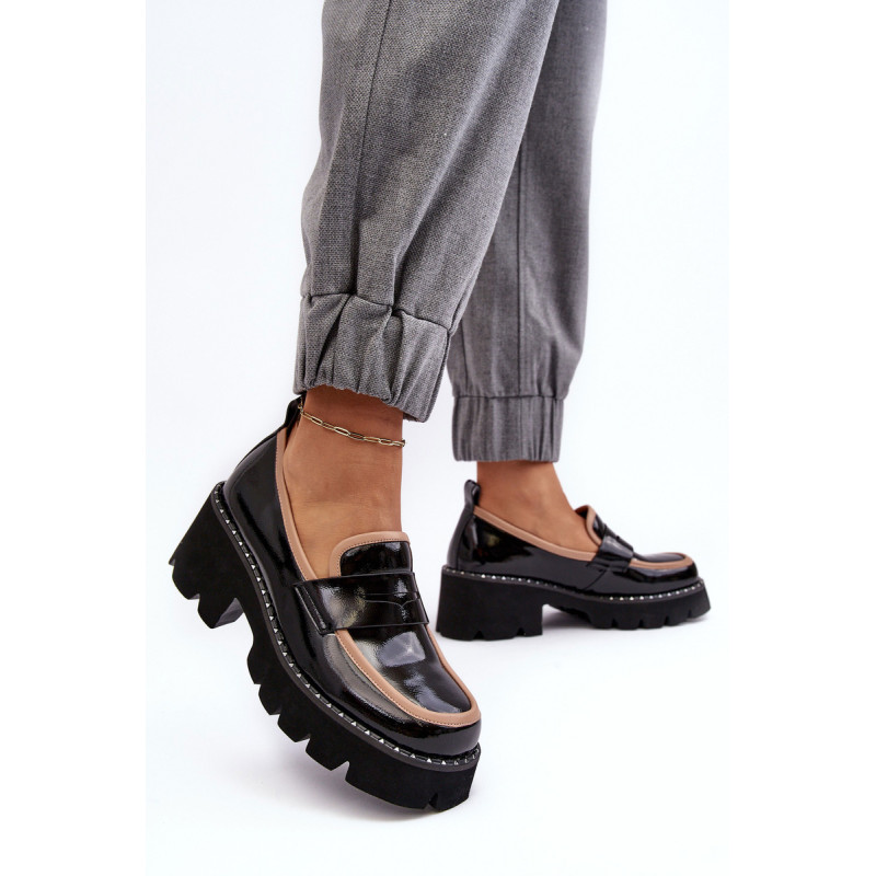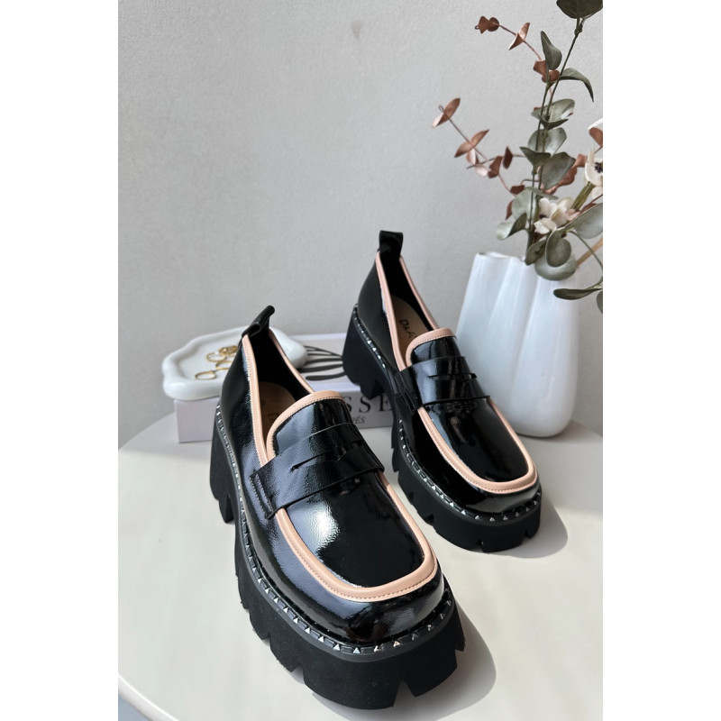 Moteriški mokasinai buvo pagaminti iš ekologiškos odos. Priekyje jie turi dekoratyvinį dirželį su išpjova. Šis modelis pastatytas ant plokščio kulno ir platformos, kuri papildomai dekoruota kalnų krištolais. Mokasinuose yra natūralios odos vidpadis. Šis modelis puikiai tinka pavasario-rudens sezonui! Rinkdamiesi dydį, vadovaukitės dydžių lentele.