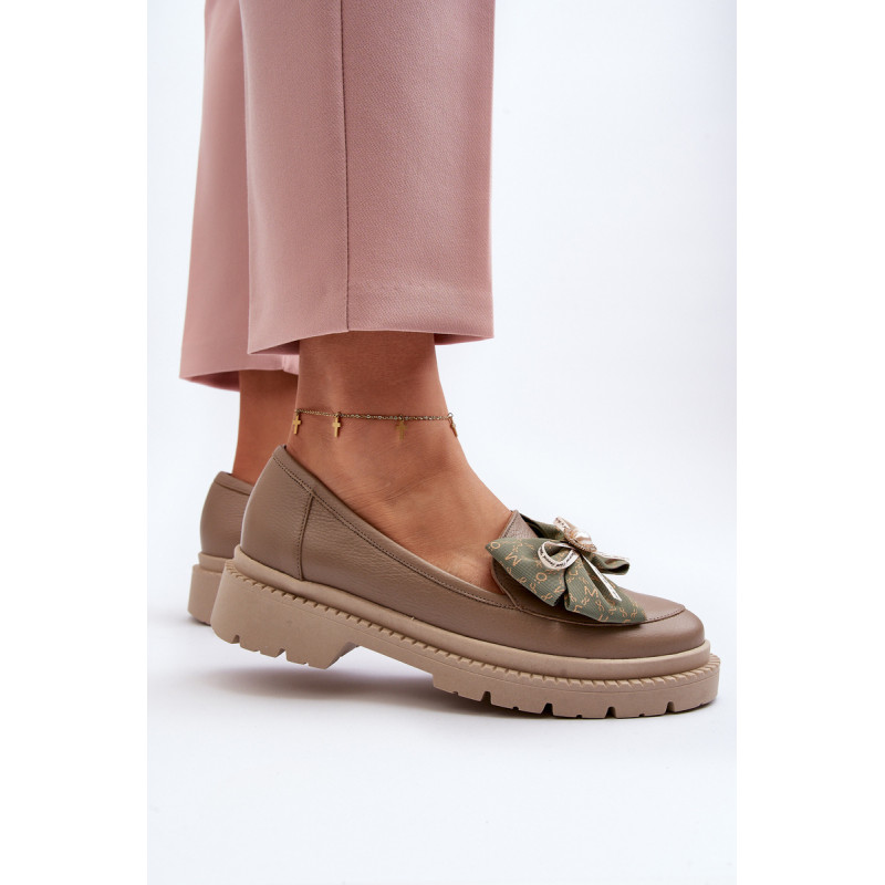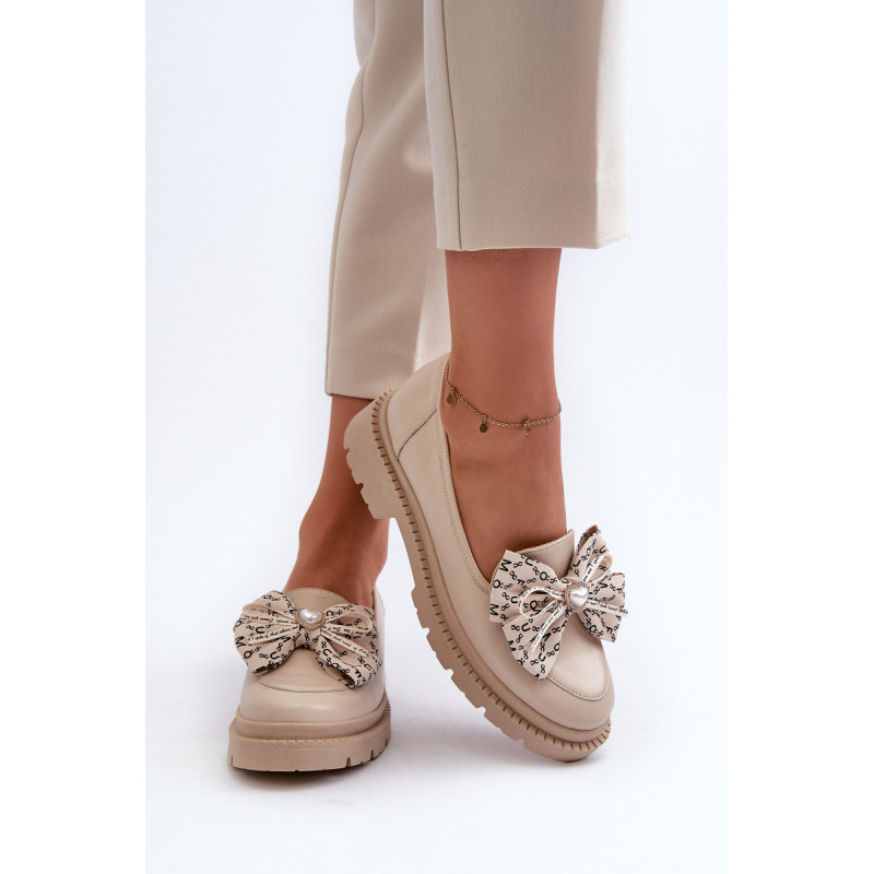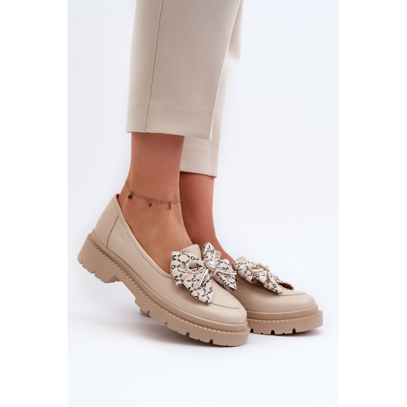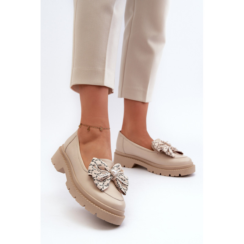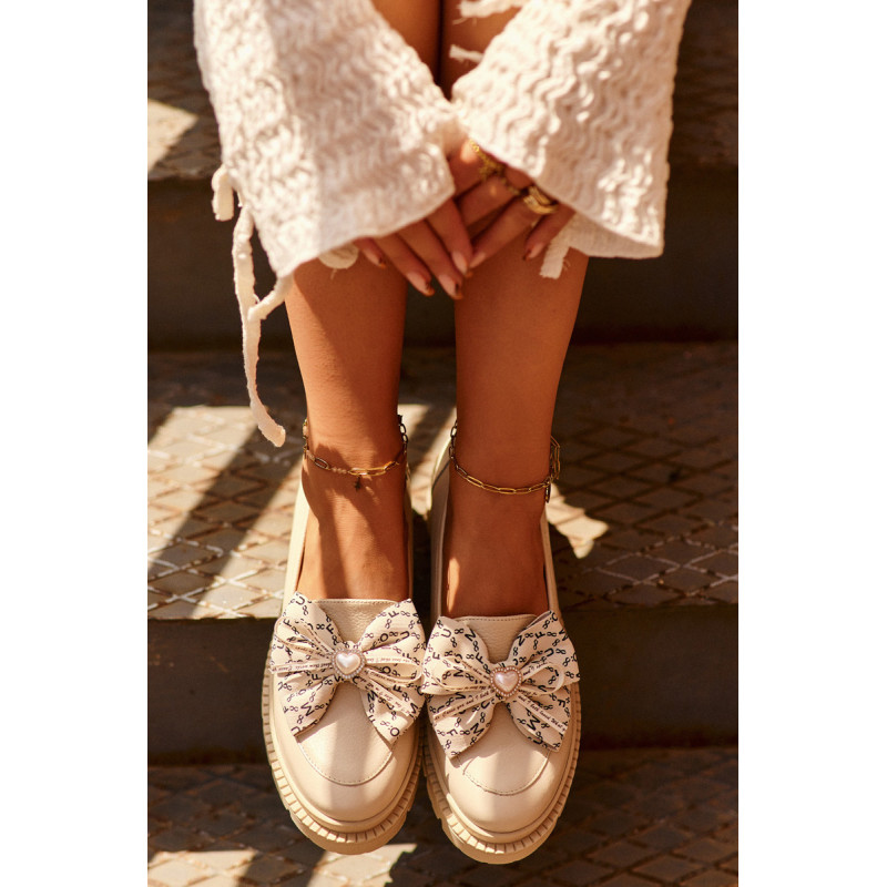 Moteriški mokasinai iš natūralios odos. Puoštas dideliu lanku priekyje. Nustatykite ant plokščio kulno. Suapvalinti kojų pirštai. Minkštas, odinis vidpadis užtikrins komfortą naudojimo metu. Šis itin madingas stilius puikiai papildys daugelį pavasariškų apdarų! Rinkdamiesi dydį žiūrėkite dydžių lentelę.