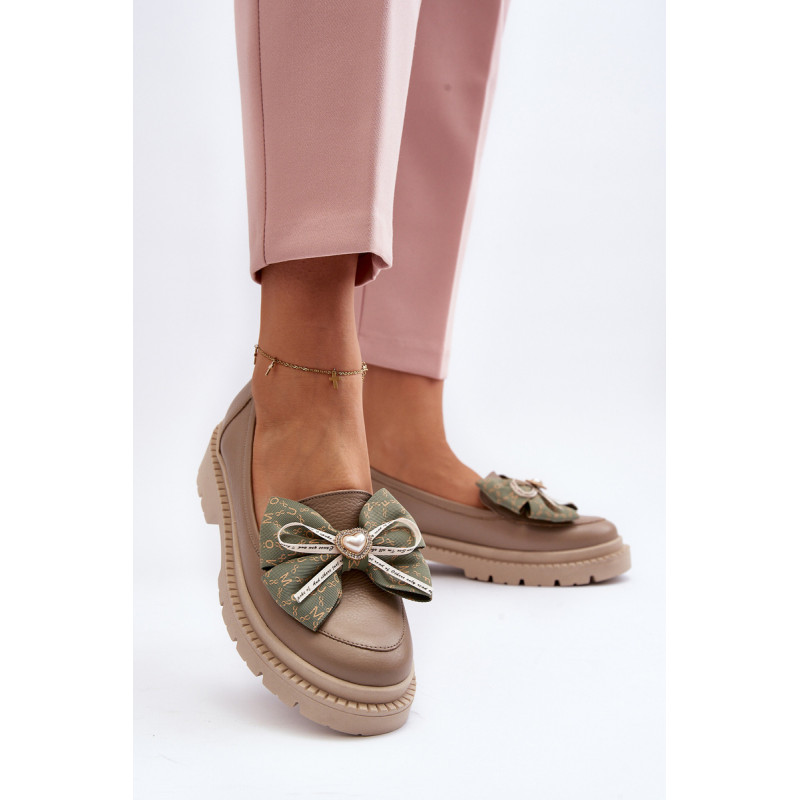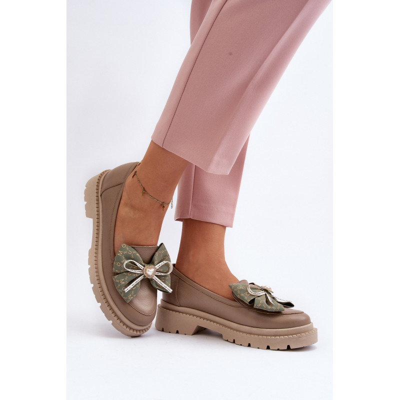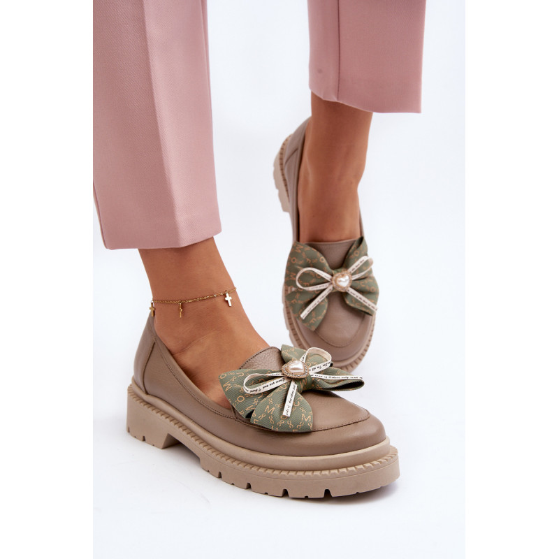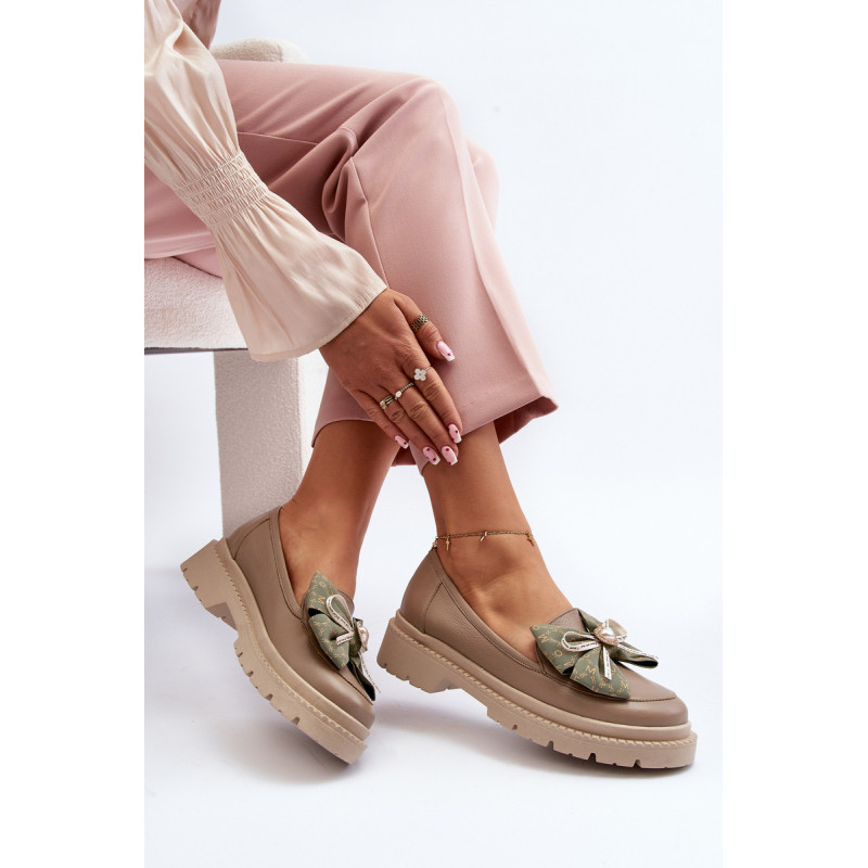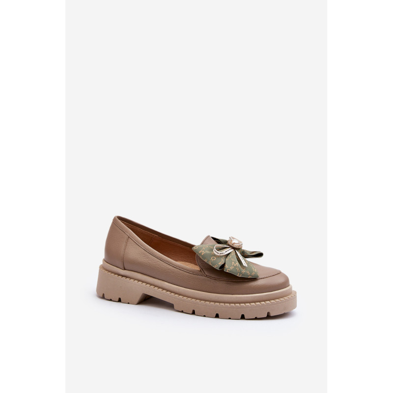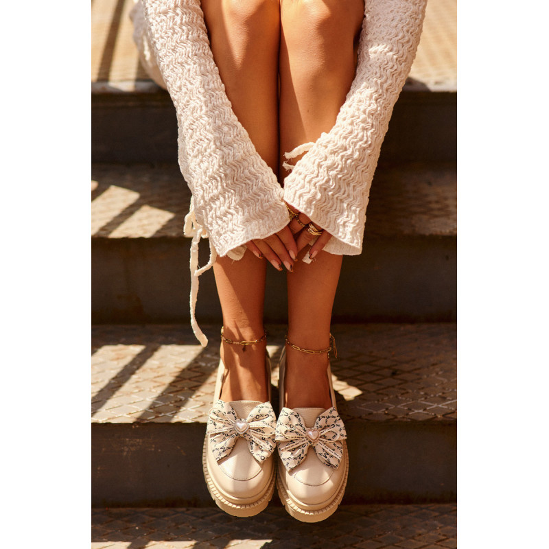 Moteriški mokasinai iš natūralios odos. Puoštas dideliu lanku priekyje. Nustatykite ant plokščio kulno. Suapvalinti kojų pirštai. Minkštas, odinis vidpadis užtikrins komfortą naudojimo metu. Šis itin madingas stilius puikiai papildys daugelį pavasariškų apdarų! Rinkdamiesi dydį žiūrėkite dydžių lentelę.