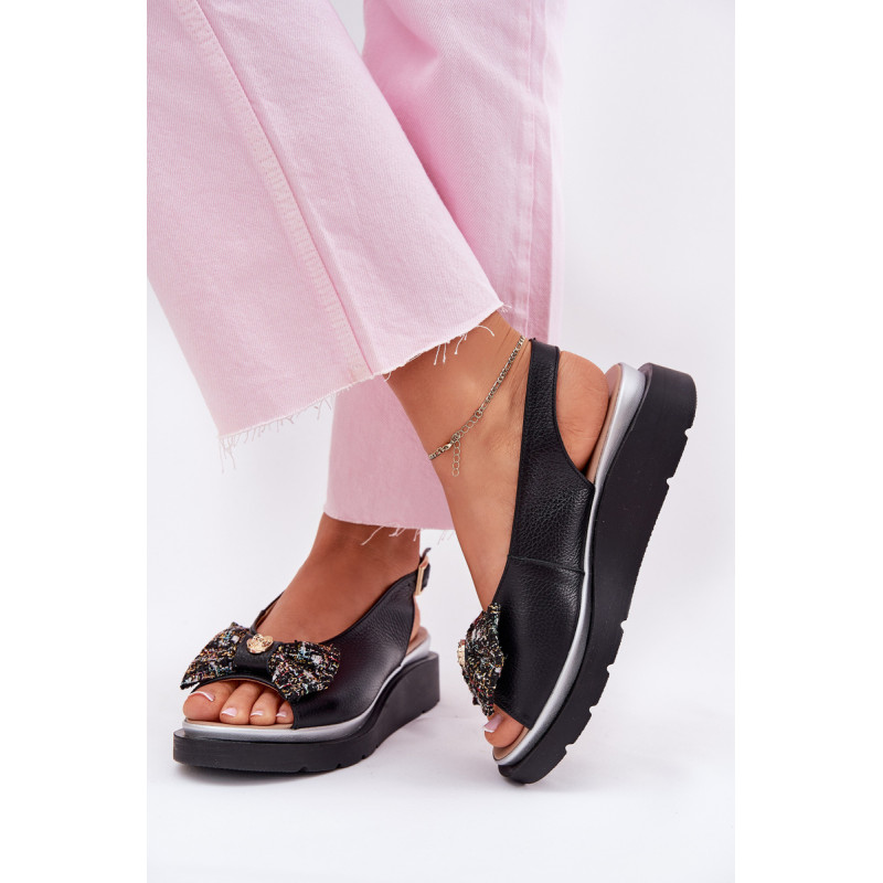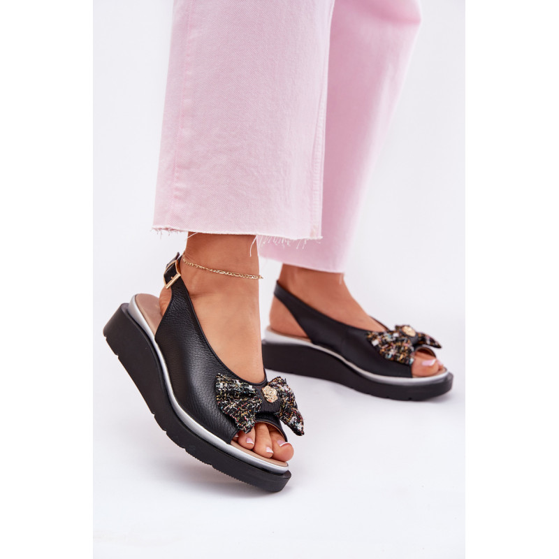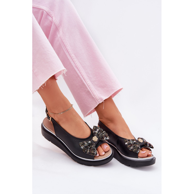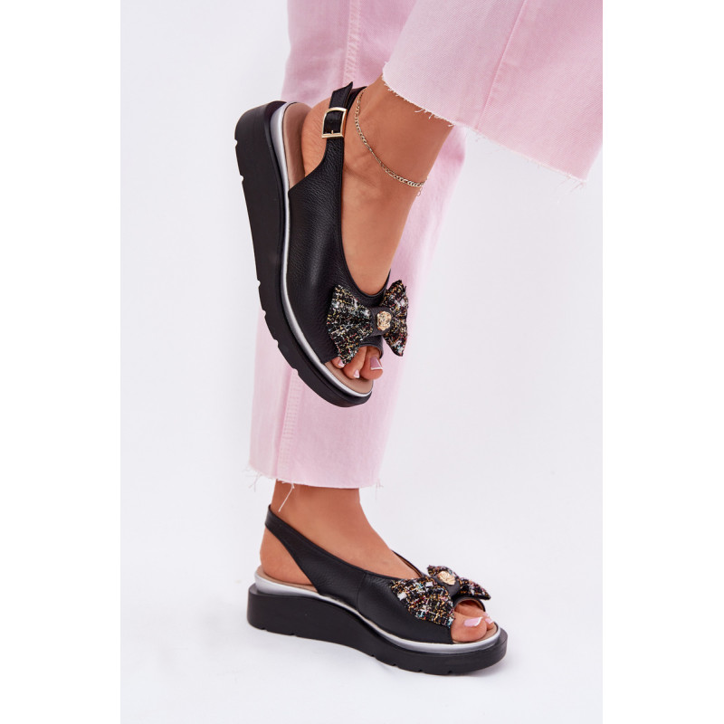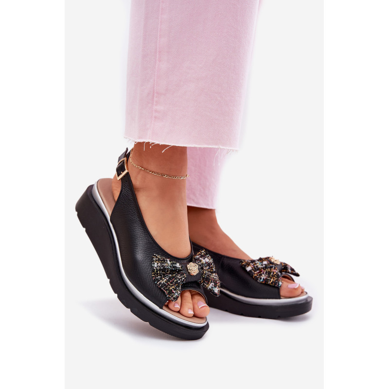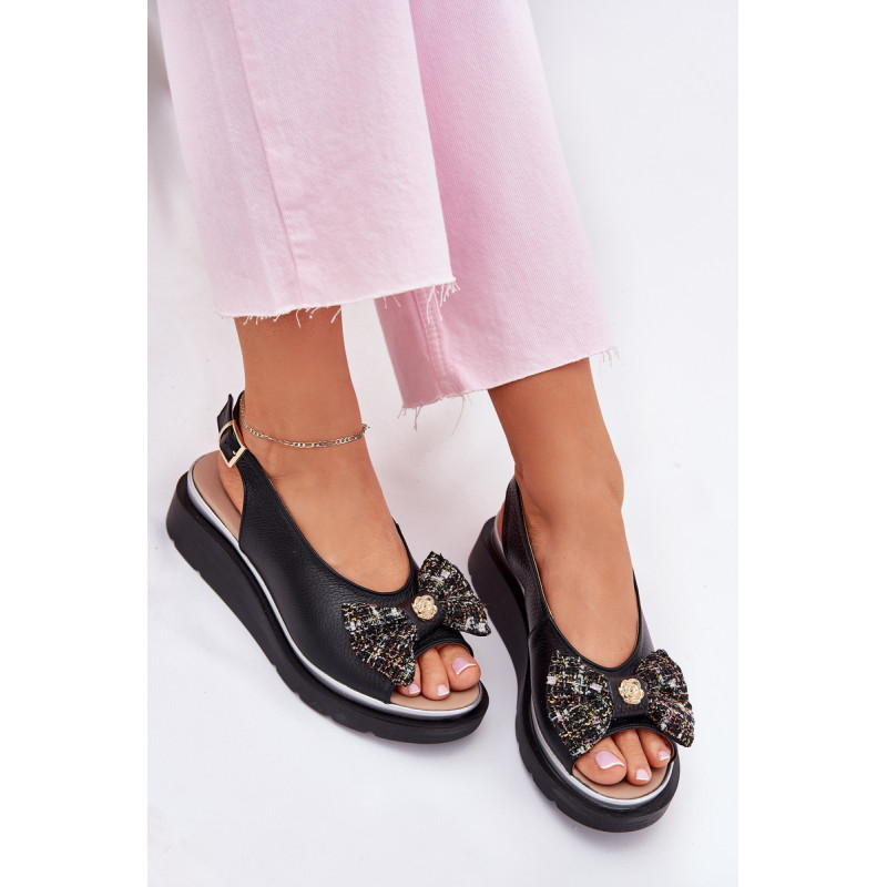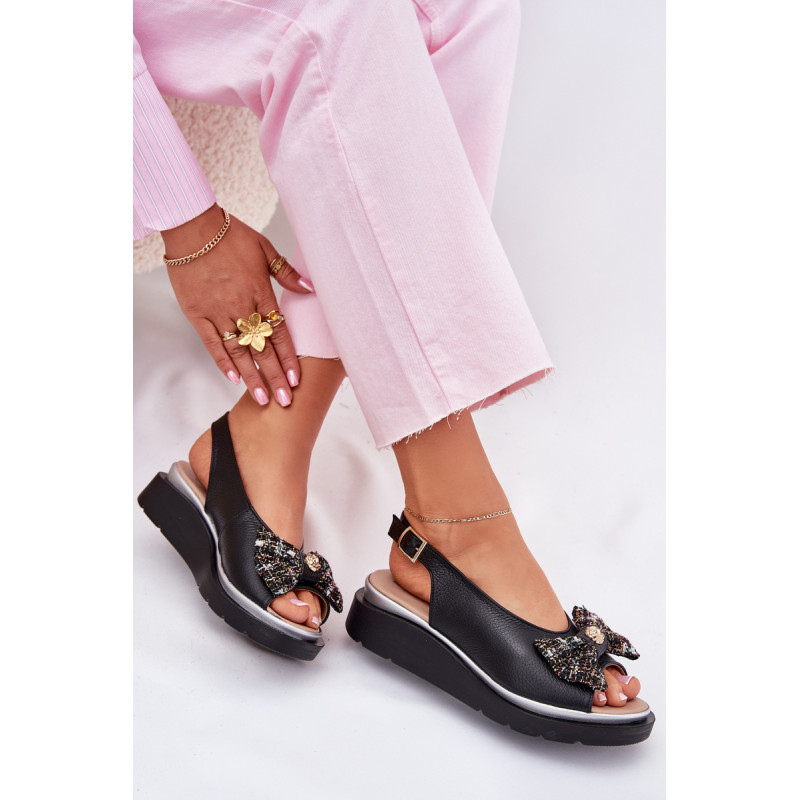 Moteriški sandalai iš natūralios odos, pastatyti ant platformos, yra elegantiška ir patogi pasirinkimo galimybė vasaros dienoms. Uždaryti su sagtimi ir reguliuojamu dirželiu, jie užtikrina tobulą prigludimą prie pėdos. Priekinėje dalyje yra mielas kaspinas su auksiniu akcentu, suteikiantis jiems subtilaus žavesio. Puikiai tinka suknelėms, sijonams ar kelnių, derindami komfortą su madingu įvaizdžiu. Idealiai tinka kasdieniams pasivaikščiojimams ir ypatingoms progoms. Renkantis dydį, vadovaukitės dydžių lentele.