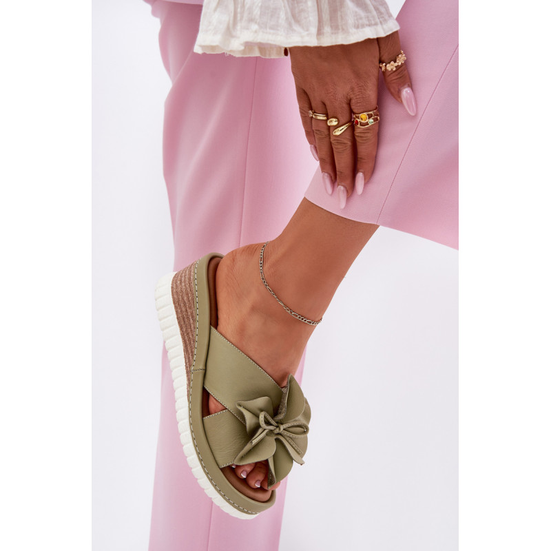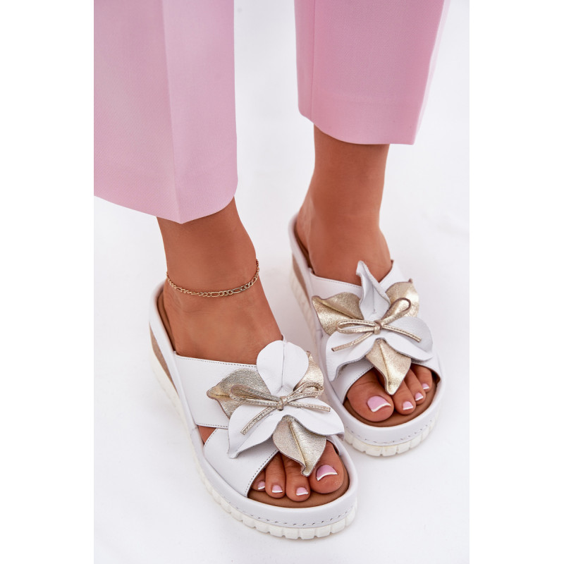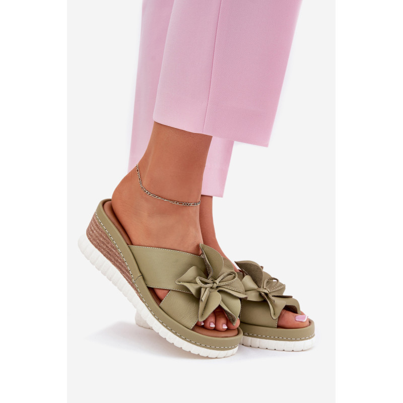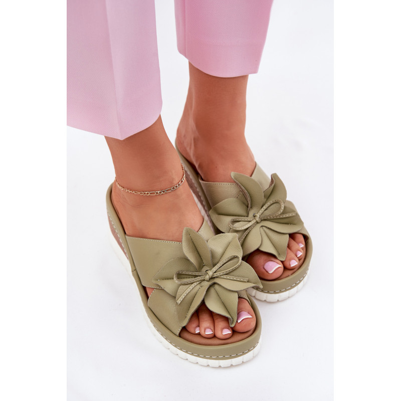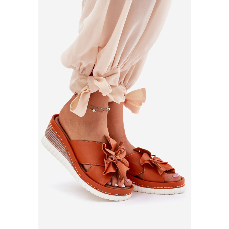 Moteriški sandalai, pagaminti iš aukštos kokybės natūralios odos. Ant platformos. Avalynės priekyje yra subtilus dekoratyvinis gėlė, suteikianti unikalų charakterį. Labai minkšta vidpadis užtikrina komfortą visą dieną, todėl šie sandalai yra puikus pasirinkimas vasaros stiliams, derinant funkcionalumą su madingu įvaizdžiu. Renkantis dydį, vadovaukitės dydžių lentele.