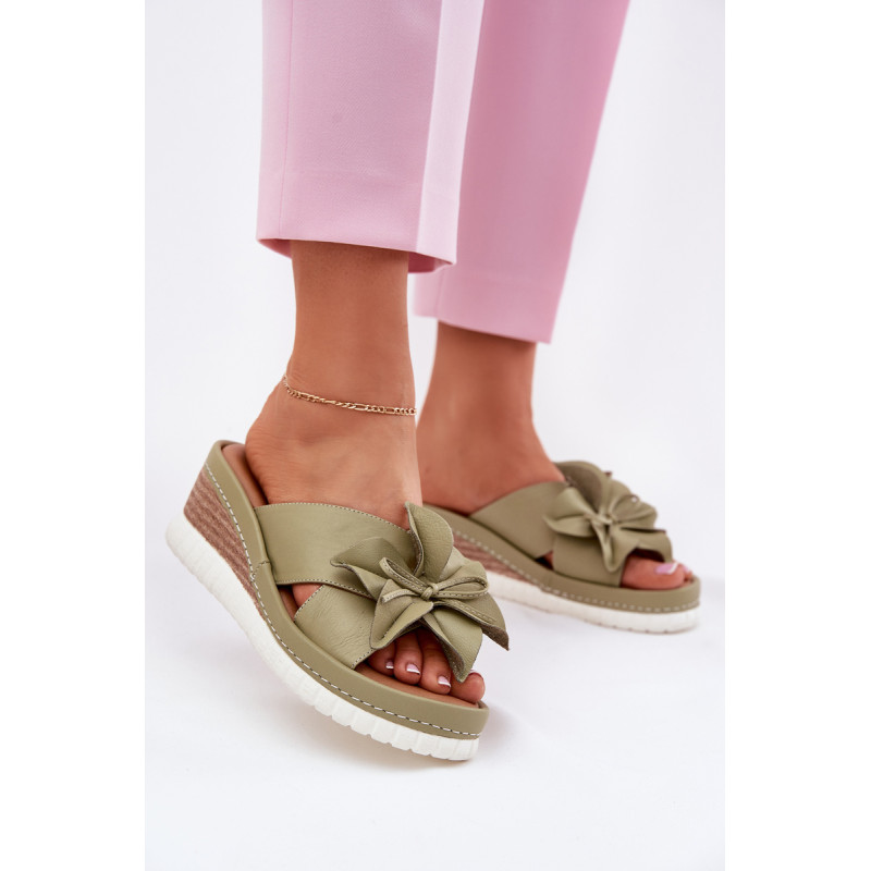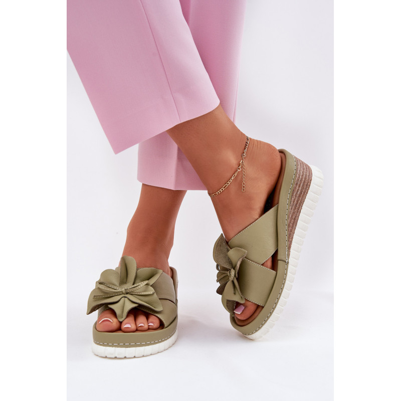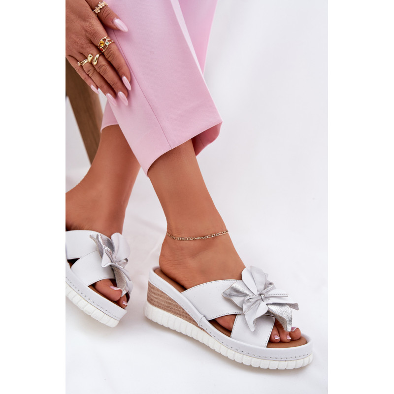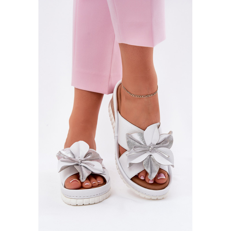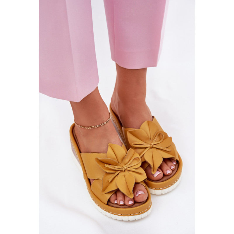 Moteriški sandalai, pagaminti iš aukštos kokybės natūralios odos. Ant platformos. Avalynės priekyje yra subtilus dekoratyvinis gėlė, suteikianti unikalų charakterį. Labai minkšta vidpadis užtikrina komfortą visą dieną, todėl šie sandalai yra puikus pasirinkimas vasaros stiliams, derinant funkcionalumą su madingu įvaizdžiu. Renkantis dydį, vadovaukitės dydžių lentele.