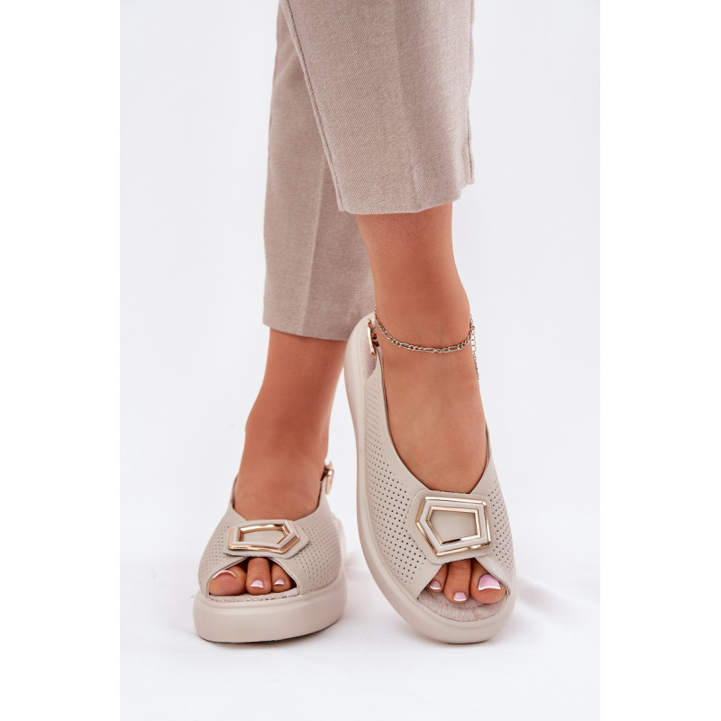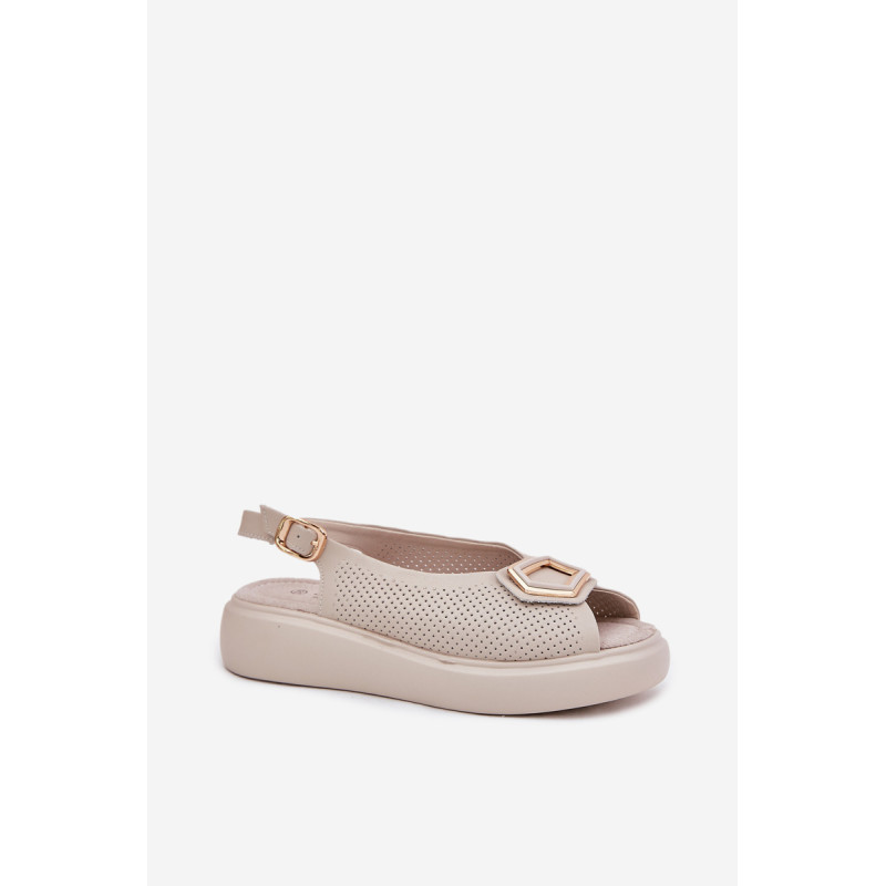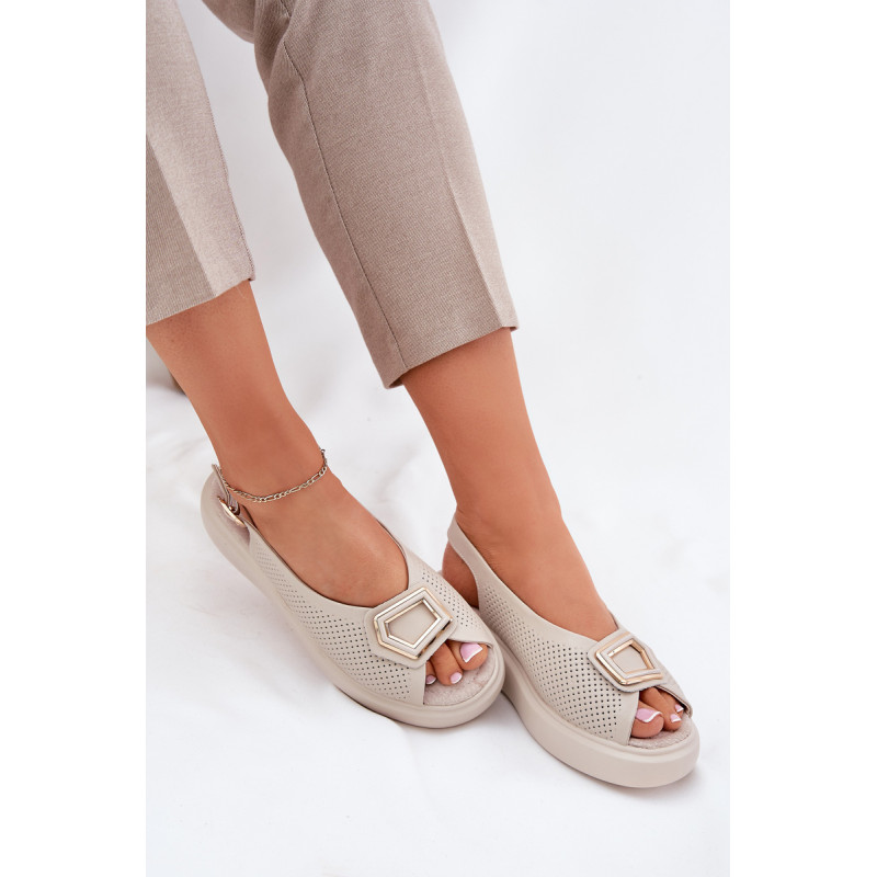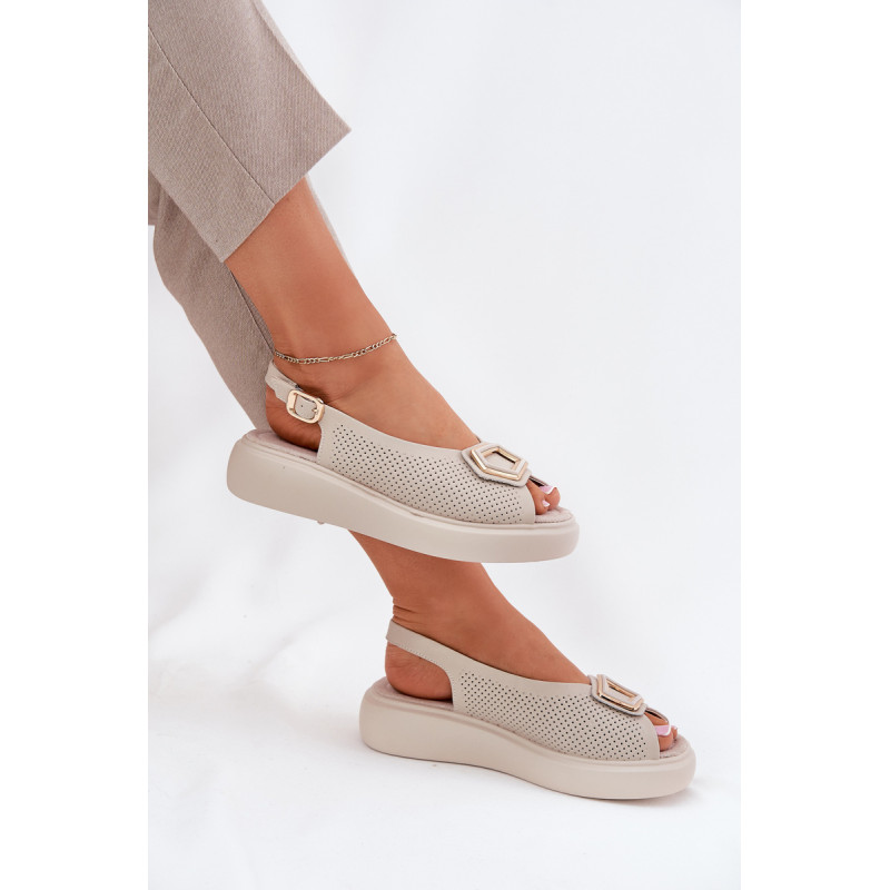 Eleganti moteriški sandalai, pagaminti iš natūralios odos, yra puikus pasirinkimas vasaros dienoms. Priekyje esantis papuošalas suteikia jiems unikalų charakterį. Uždaryti su sagtimi ir reguliuojamu dirželiu, jie leidžia idealiai pritaikyti prie pėdos, užtikrindami komfortą ir stabilumą visą dieną. Comfort Shoes vidpadis rūpinasi patogumu, o platforma garantuoja papildomą lengvumą ir komfortą vaikščiojant. Šie sandalai bus puikus papildo elegantiškiems stiliams įvairioms progoms. Renkantis dydį, vadovaukitės dydžių lentele.