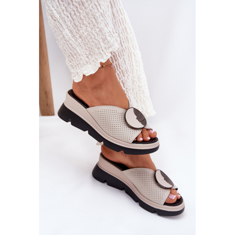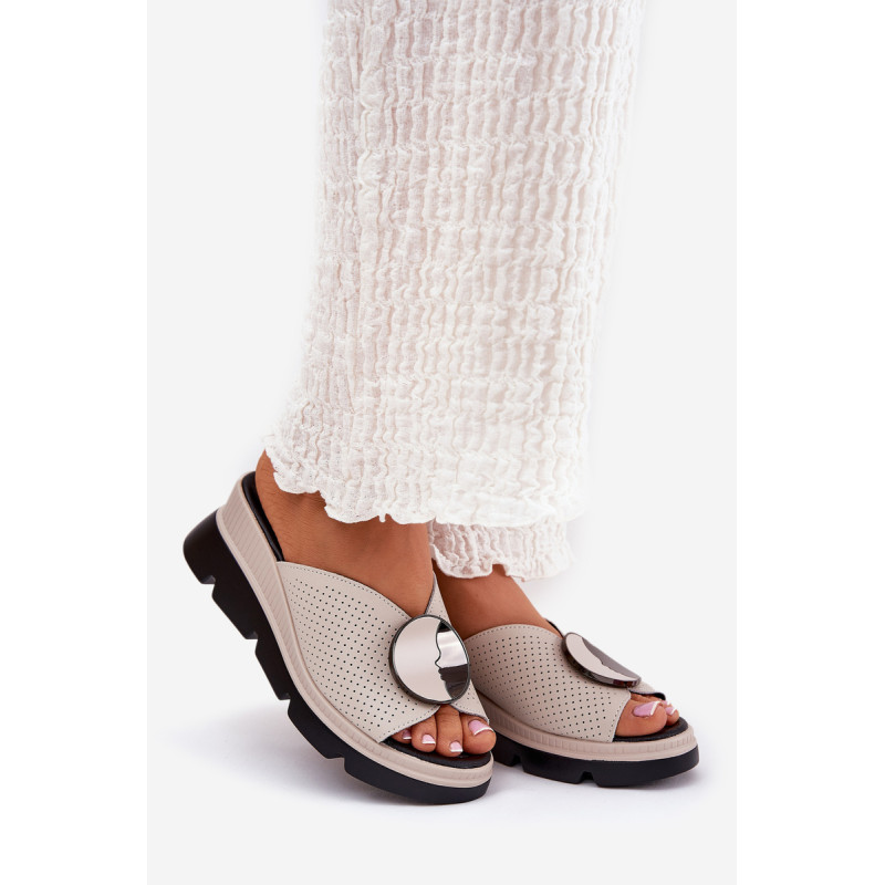 Moteriški šlepetės iš prekės ženklo S.Barski. Pagaminti iš natūralios odos. Įrengti ant platformos su pakulne. Išsiskiria dekoratyviniu detaliu priekyje. Comfor padas užtikrina komfortą ir puikų amortizavimą visą dieną. Madingas ir elegantiškas modelis, kurį tikrai galėsite priderinti prie daugelio stilizacijų! Renkantis dydį, vadovaukitės dydžių lentele.