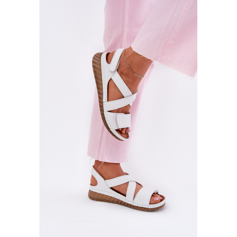 Moteriški sandalai iš natūralios odos iš prekės ženklo Maciejka. Įrengti ant švelnaus platformos. Šis modelis turi dvigubą Velcro dirželį, leidžiantį lengvai pritaikyti prie pėdos ir užtikrinti komfortą visą dieną. Du persipynę dirželiai priekyje. Puikiai tinka vasaros suknelėms, sijonams ir kelnėms. Idealiai tinka kasdieniams išvykimams. Renkantis dydį, vadovaukitės dydžių lentele.