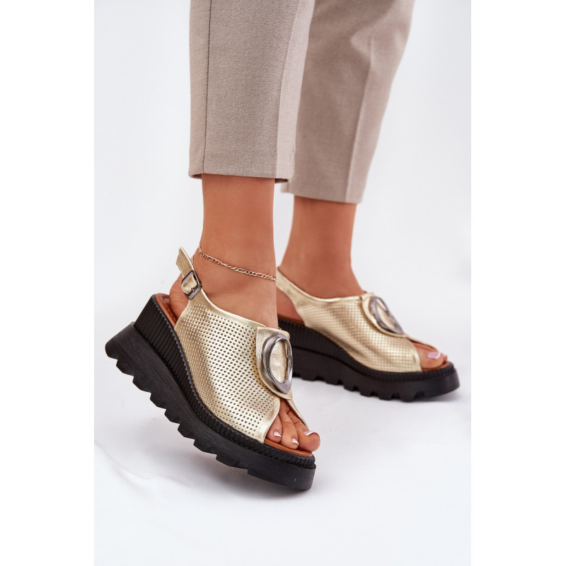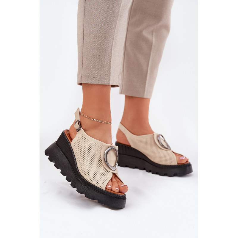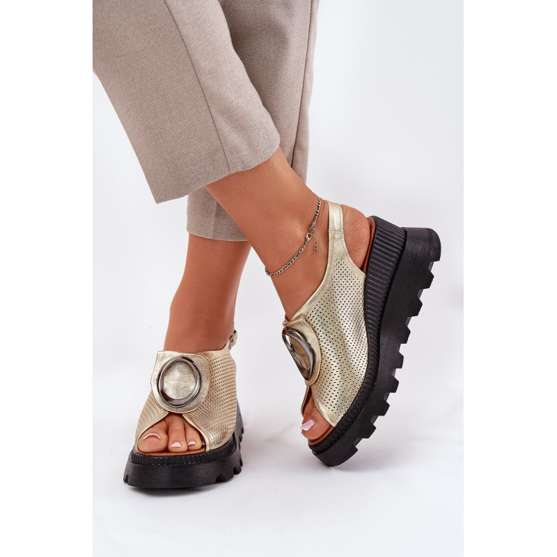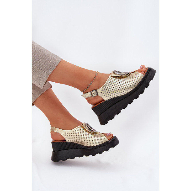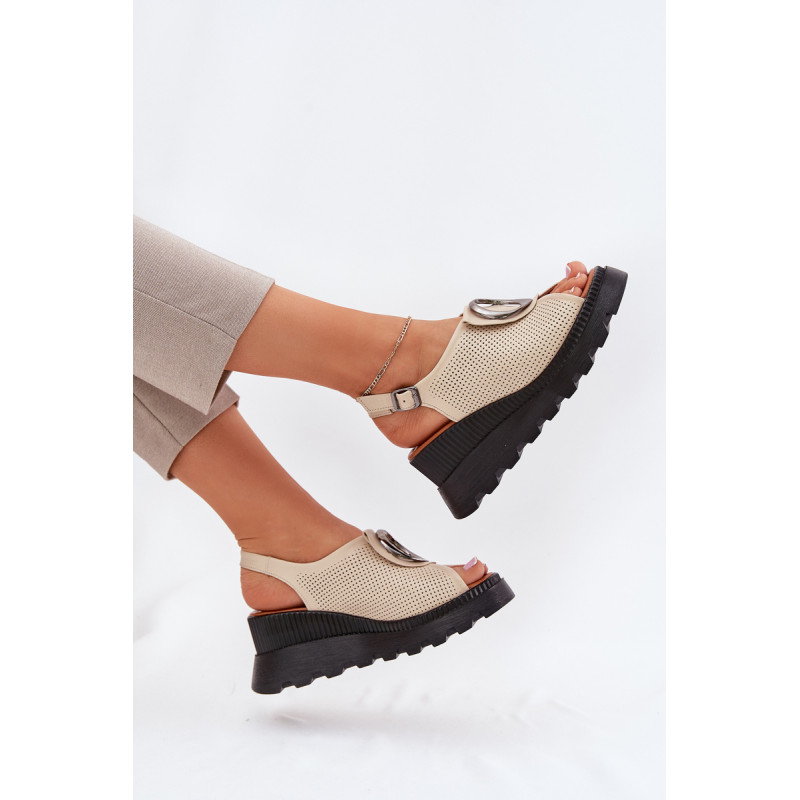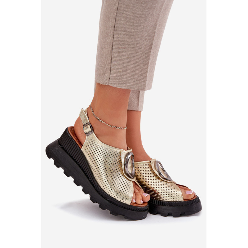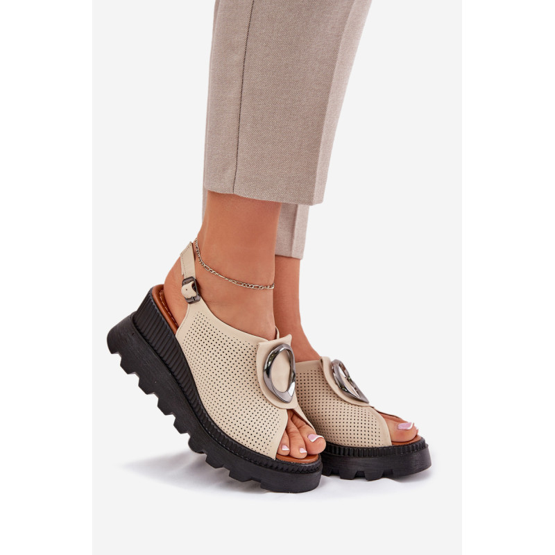 Eleganti moteriški sandalai, pagaminti iš natūralios odos, yra puikus pasirinkimas šiltoms dienoms. Įrengti ant platformos, jie užtikrina komfortą ir stabilumą visą dieną. Modelis išsiskiria priekinio dekoro, kuris suteikia jiems unikalų charakterį. Odinė vidpadis garantuoja komfortą, o protektoriaus padas užtikrina tinkamą sukibimą, todėl šie sandalai jungia eleganciją ir funkcionalumą. Idealiai tinka vasaros stiliui, tiek kasdieniam dėvėjimui, tiek ypatingoms progoms. Renkantis dydį, vadovaukitės dydžių lentele.