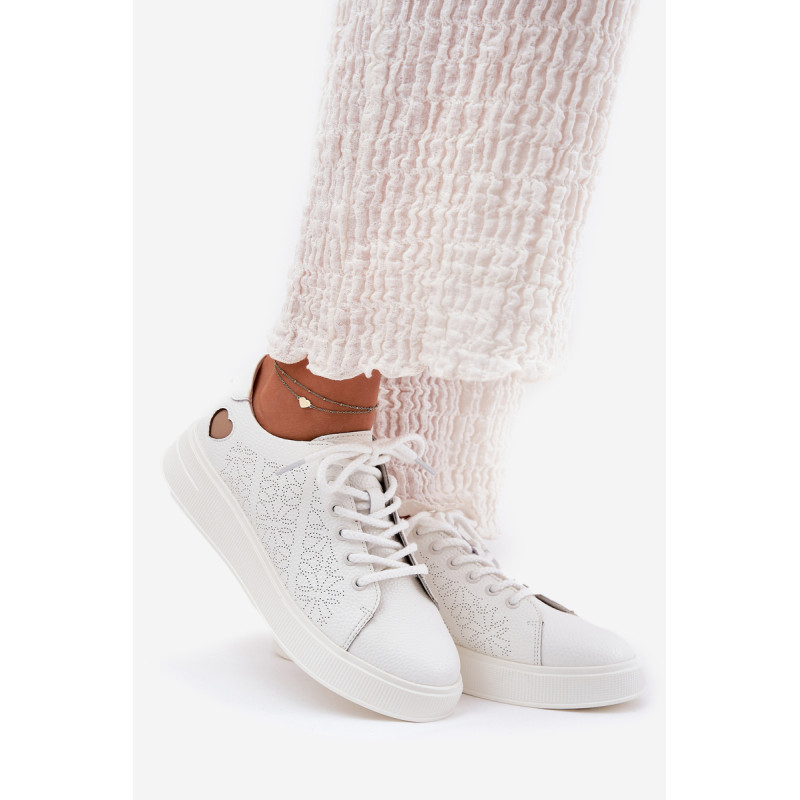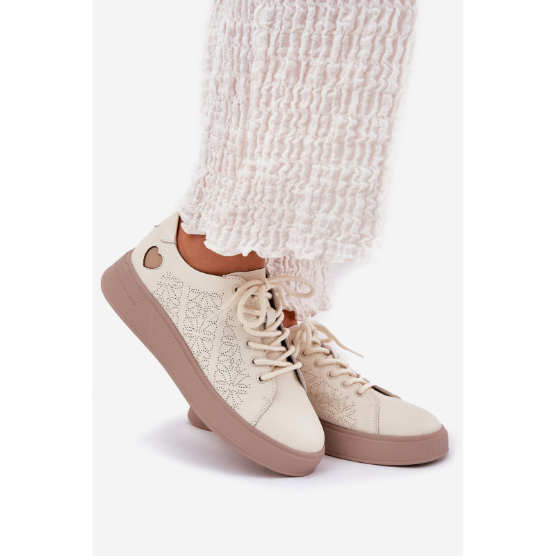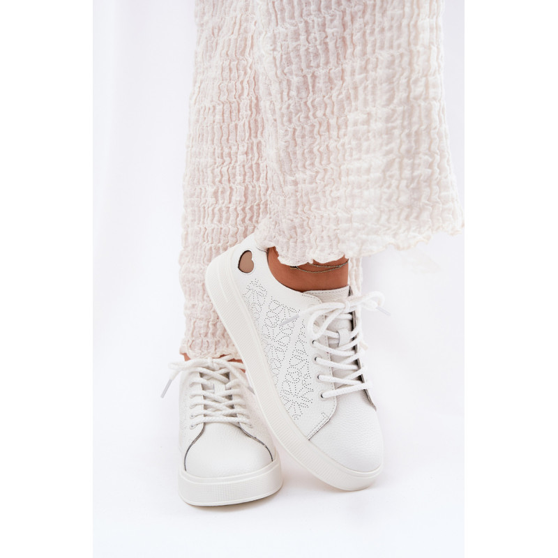 Moteriški sportbačiai iš Vinceza prekės ženklo. Pagaminti iš natūralios odos. Ant platformos. Apvalūs pirštai. Viršutinė dalis puošia subtiliu perforuotu raštu ir širdute. Minkšta odinė padas užtikrina komfortą ir tinkamą amortizaciją. Lengvi ir patogūs, puikiai tinka pavasario-vasaros stiliams! Renkantis dydį, vadovaukitės dydžių lentele.