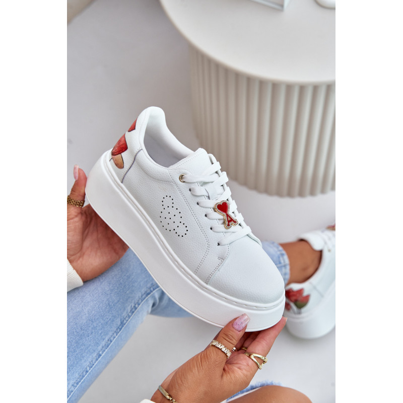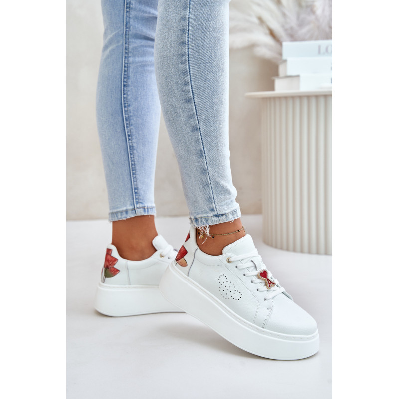 Stilingi moteriški sportbačiai iš natūralios odos yra puikus elegancijos ir patogumo derinys. Ant platformos jie suteikia modernią išvaizdą ir subtilų aukštį. Modelis suvarstomas dekoratyviniu segtuku, o batų nugarą puošia unikalios tulpės, suteikiančios jiems originalumo ir moteriško charakterio. Šie sportbačiai yra puikus pasirinkimas moterims, kurios kiekvieną dieną nori išsiskirti unikaliu stiliumi. Rinkdamiesi dydį, žiūrėkite dydžių lentelę.