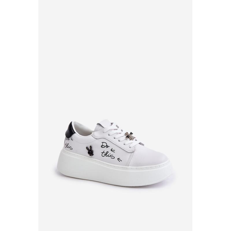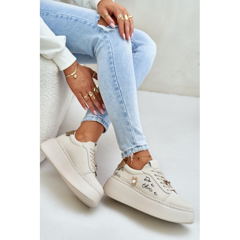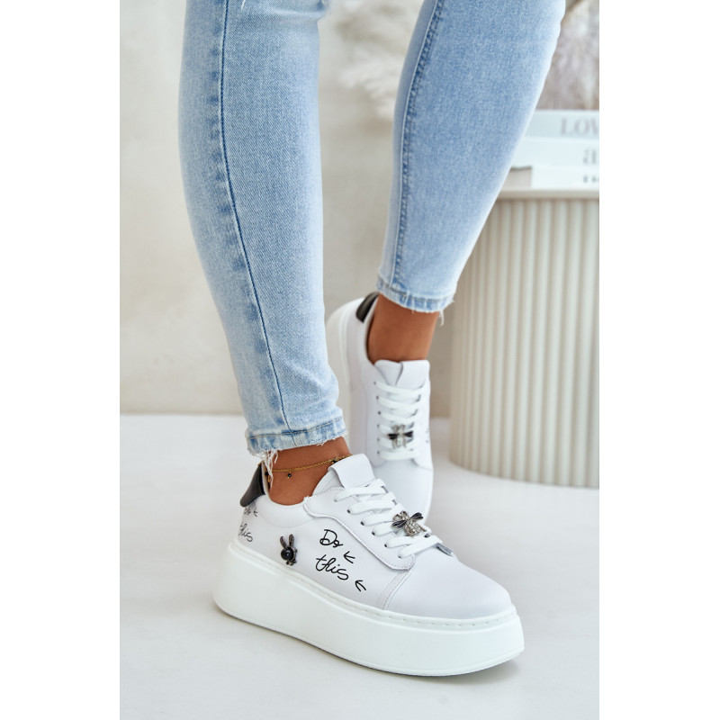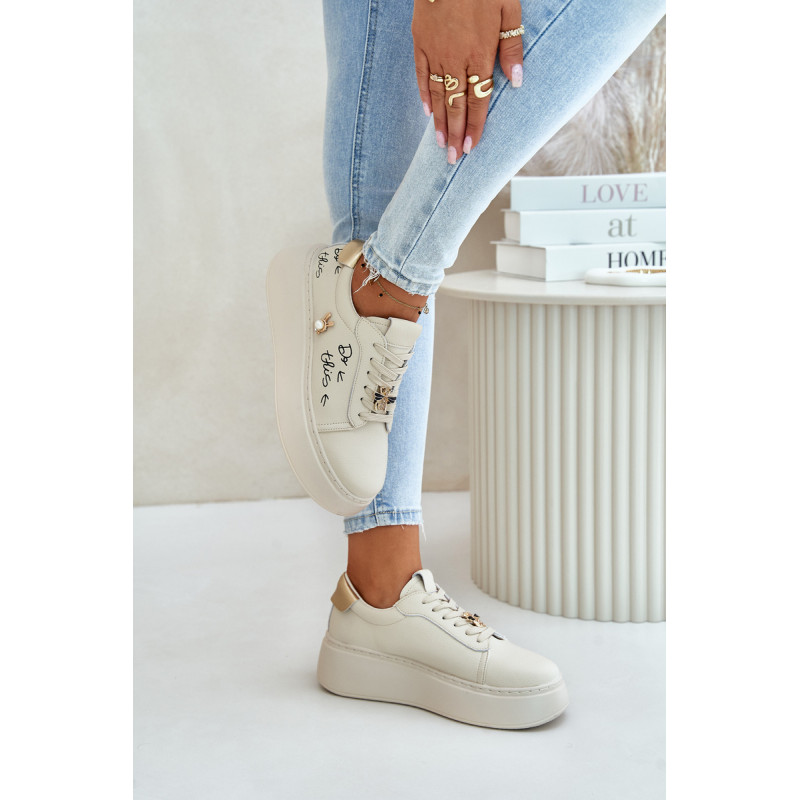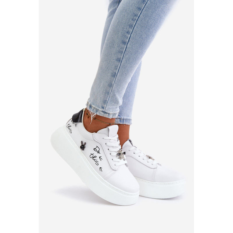 Moteriški sportbačiai iš natūralios odos yra stilinga ir patogi kasdienė avalynė. Šis ant platformos pritvirtintas modelis turi dekoratyvinį smeigtuką, kuris suteikia unikalumo. Ant viršaus yra užrašas, pabrėžiantis jų urbanistinį, madingą stilių. Puikiai tinka moterims, kurios vertina komfortą ir įspūdingą dizainą. Rinkdamiesi dydį, žiūrėkite dydžių lentelę.