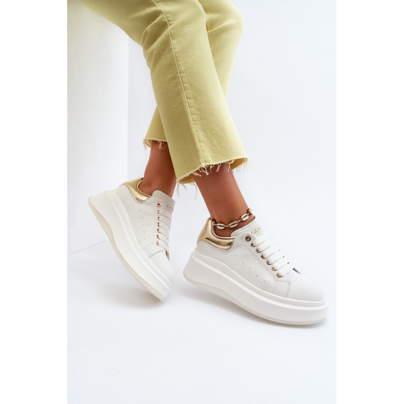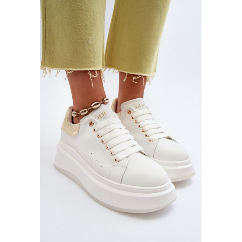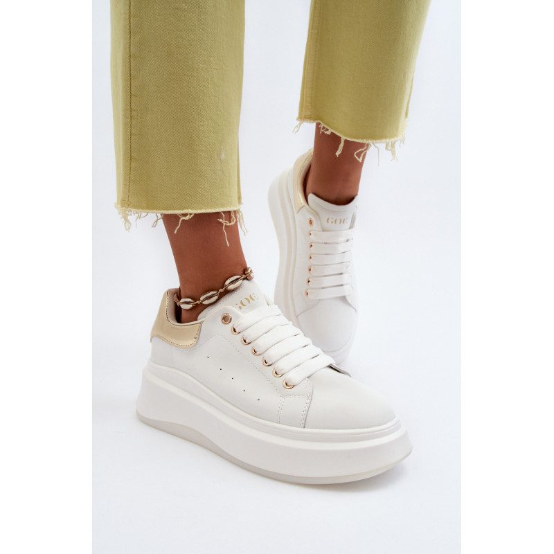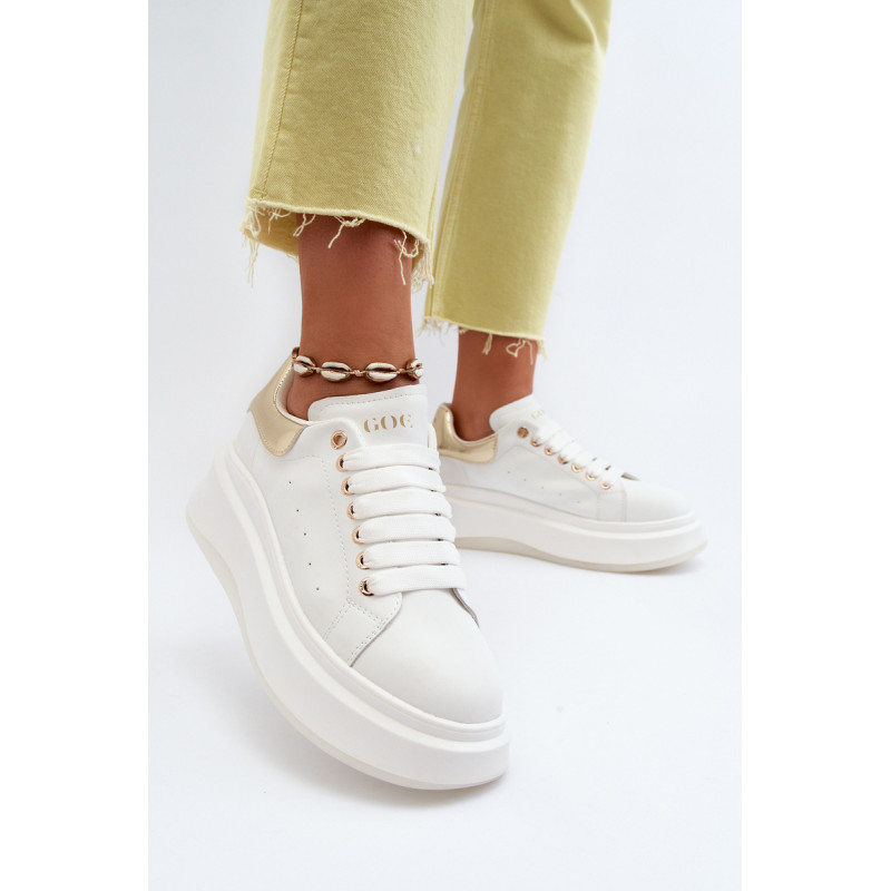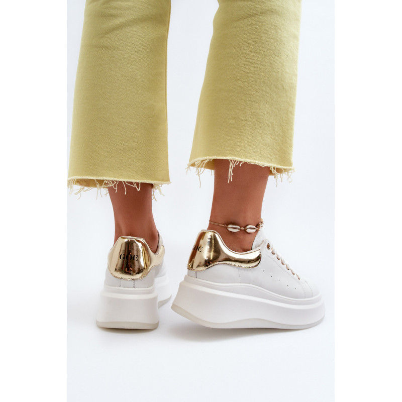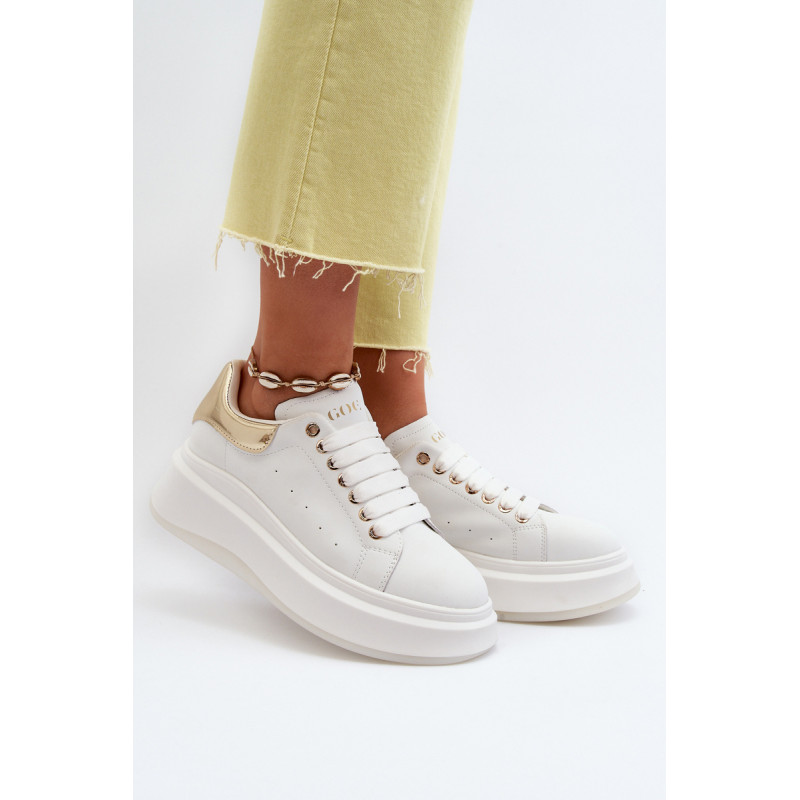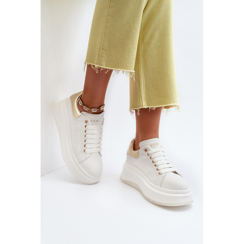 Unikalūs GOE sportiniai bateliai, pagaminti iš aukštos kokybės natūralios odos. Viršutinės dalies gale yra dekoratyvus, veidrodinis įdėklas su GOE logotipu. Minkštas, ekologiškos odos vidpadis garantuoja komfortą visą dieną. Įterptas į platformą. Klasikinis suvarstymas leis tinkamai priderinti avalynę prie kojų pločio. Šį nuostabų modelį tikrai turėtumėte turėti savo garderobe! Renkantis dydį, naudokite dydžių lentelę.